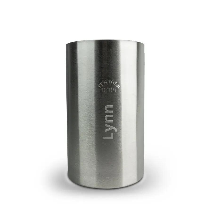 Se stai cercando un regalo personale lussuoso, scegli questo refrigeratore per vino inciso con il nome o il testo a tua scelta.