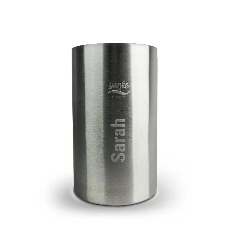 Maggiori informazioni sul refrigeratore per vino:Materiale: acciaio inossidabileColore: argentoDimensioni: 20 x 12 x 12 cm / 7,9" x 4,7" x 4,7"Personalizzazione: incisione testo