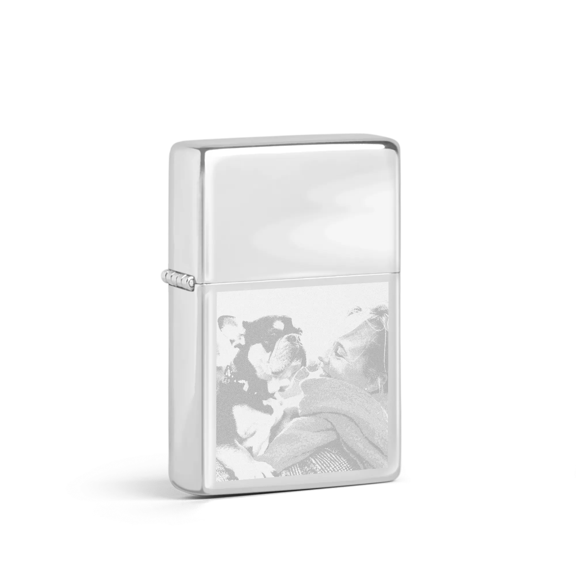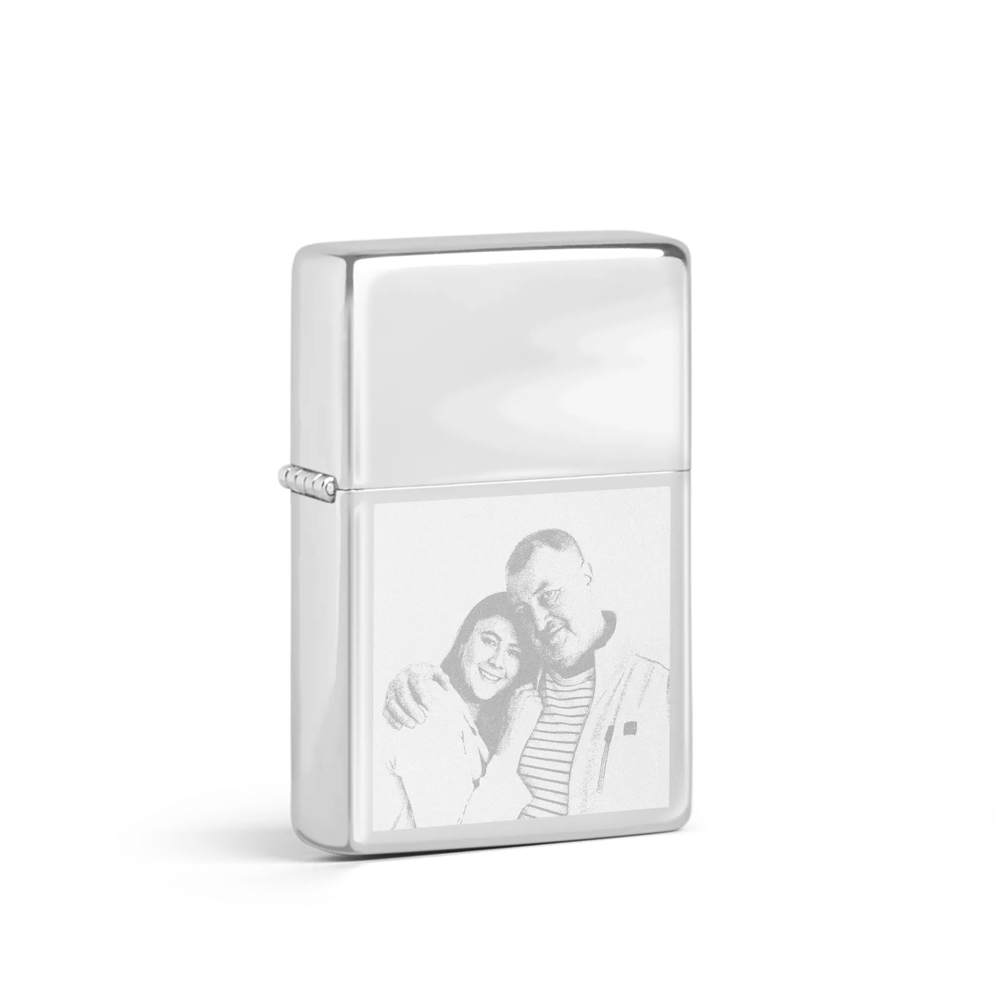 Accendino, personalizzato con la foto che ami di più!Ulteriori dettagli sull'accendino:Materiale: metalloColore: argentoNota: l'accendino viene venduto senza gas!Extra: l'immagine verrà incisa, non stampata. Per questo motivo potrebbe essere leggermente diversa dall'immagine sul tuo schermo. Quello che si vede all'interno dell'accendino non è ruggine, ma rame. Questo è il colore di base dell'accendino e solo l'esterno e parte dell'interno sono argentati. La benzina altrimenti corroderebbe l'argento. Il rame è resistente a questo fenomeno.L'accendino è spedito in una confezione nera di cartoncino