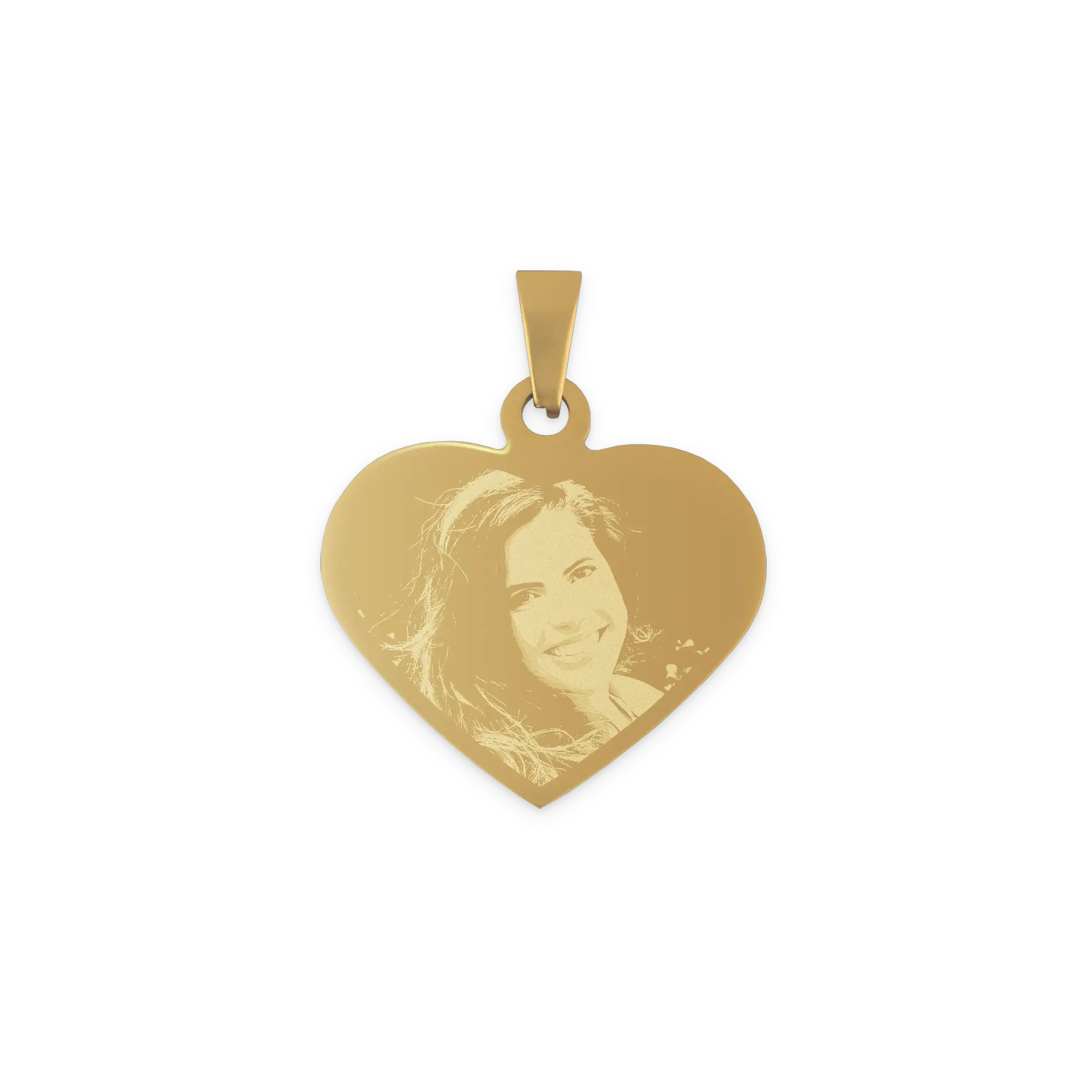 Ciondoli vari con una tua foto. Con catenina.Completa il tuo regalo con una bellissima cateninaIl ciondolo è in metallo e personalizzato con l' incisione scelta da te, ma questo non vuol dire che non è ulteriormente migliorabile! Puoi davvero completare il tuo regalo aggiungendo la catenina che preferisci tra le diverse che ti proponiamo. Le catenine e i ciondoli sono completamente compatibili e facili da agganciare.Informazioni aggiuntive:Materiale: Metallo placcato oro - 8% nichelMisure: 27 x 27 mmForma: CuoreTesto inciso sul retro: max. 15 caratteriExtra: l'immagine verrà incisa, non stampata. Questo è il motivo per cui sarà leggermente diversa dall'immagine sul tuo schermo.Informazioni aggiuntive: la collana non è inclusa.