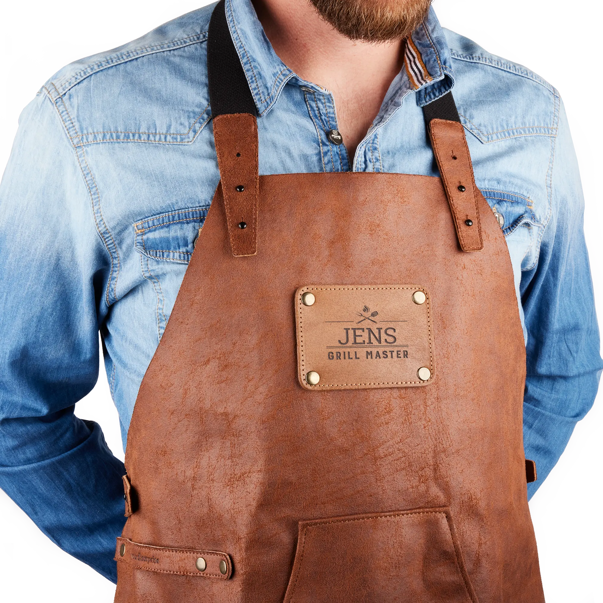 Sorprendi uno chef di casa con questo grembiule in ecopelle. Realizzato in modo sostenibile con scarti di pelle. Personalizzato con il proprio design!Maggiori informazioni sul grembiule in pelle inciso: Materiale: resti di pelle di alta qualità Spessore pelle: 1 mmColore: marronePersonalizzazione: incisionePersonalizzazione taglia: 7 x 7 cmMisura grembiule: 81 x 59,5 cmPeso grembiule: 430 gramExtra: la pelle è un prodotto naturale. Per questo motivo, il tuo regalo potrebbe differire leggermente dalle immagini del prodotto sul sito web.
