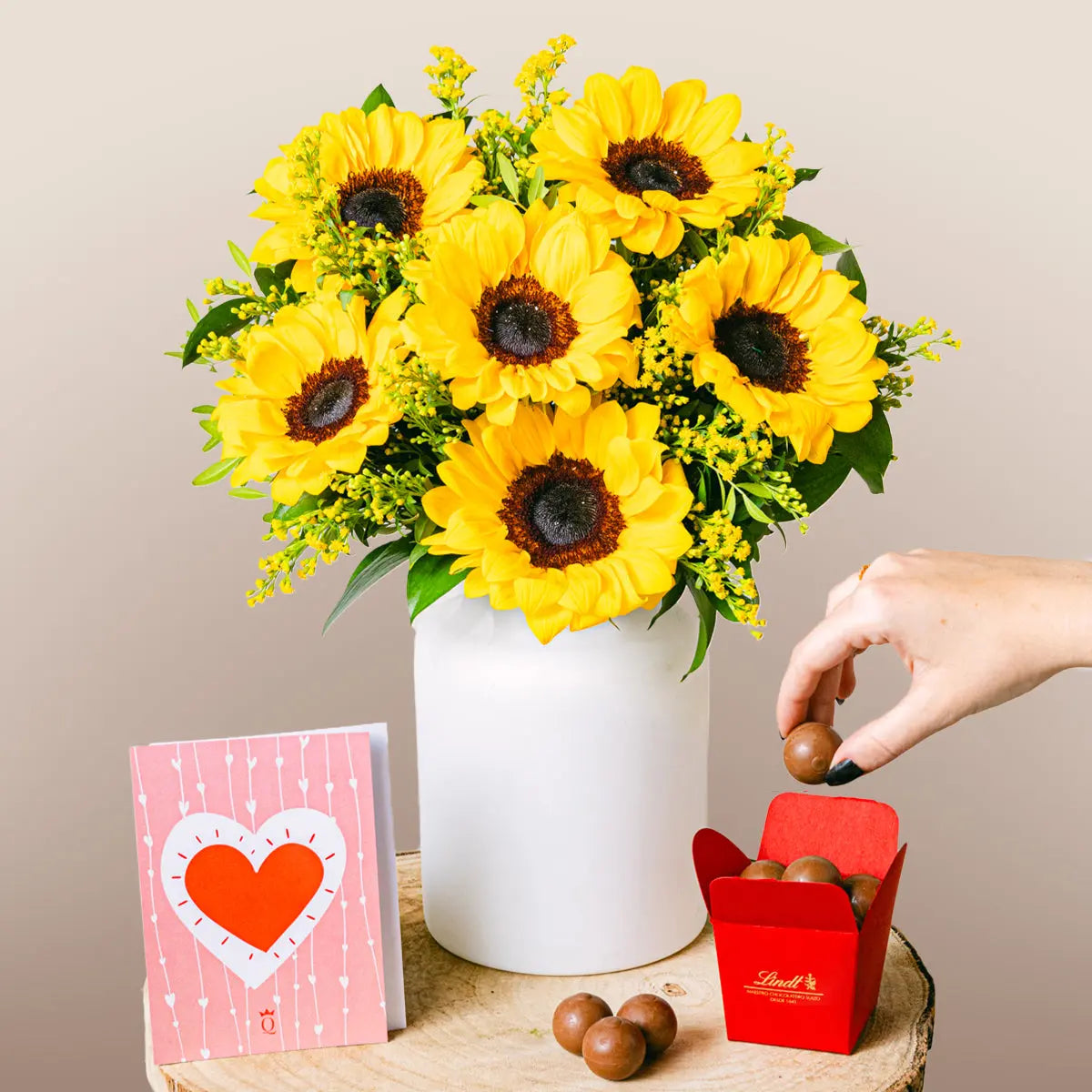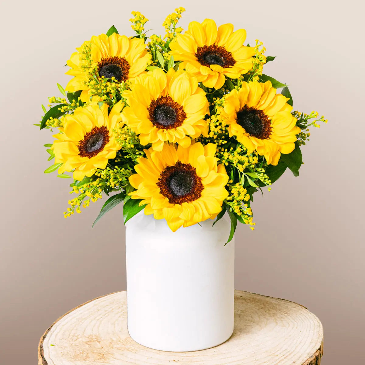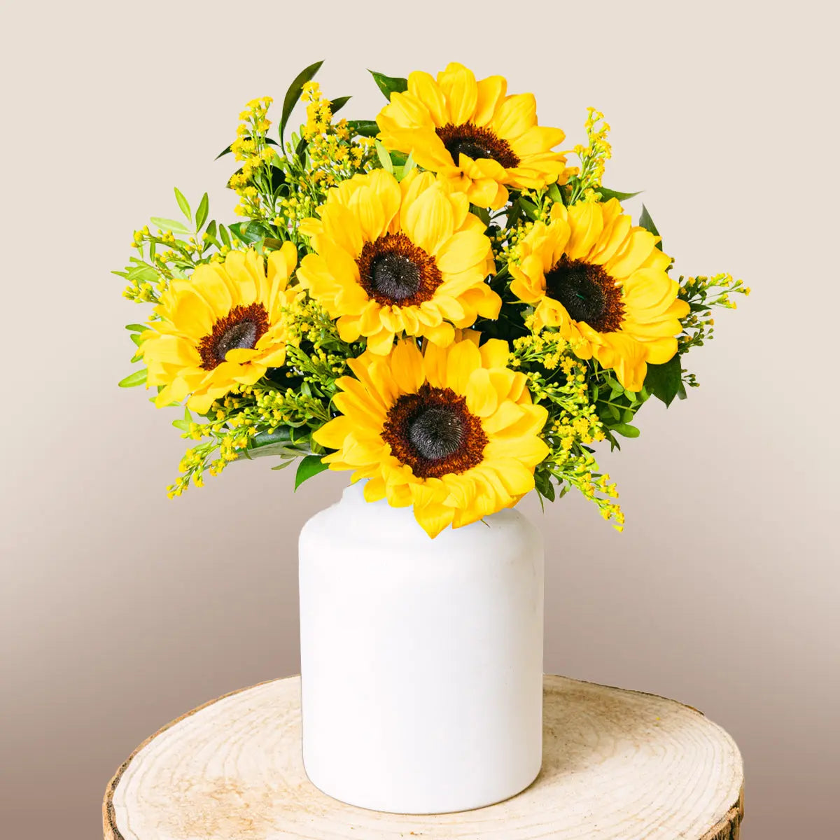 Ideale per celebrare un compleanno, un anniversario o semplicemente per rallegrare la giornata di qualcuno durante l'estate, il bouquet Melodia Dorata è la scelta perfetta. Effettua il tuo ordine oggi e goditi la velocità e la sicurezza del nostro servizio di consegna a domicilio! Lascia che la brillantezza dei girasoli e la delicatezza del solidago trasformino qualsiasi occasione in un momento indimenticabile.