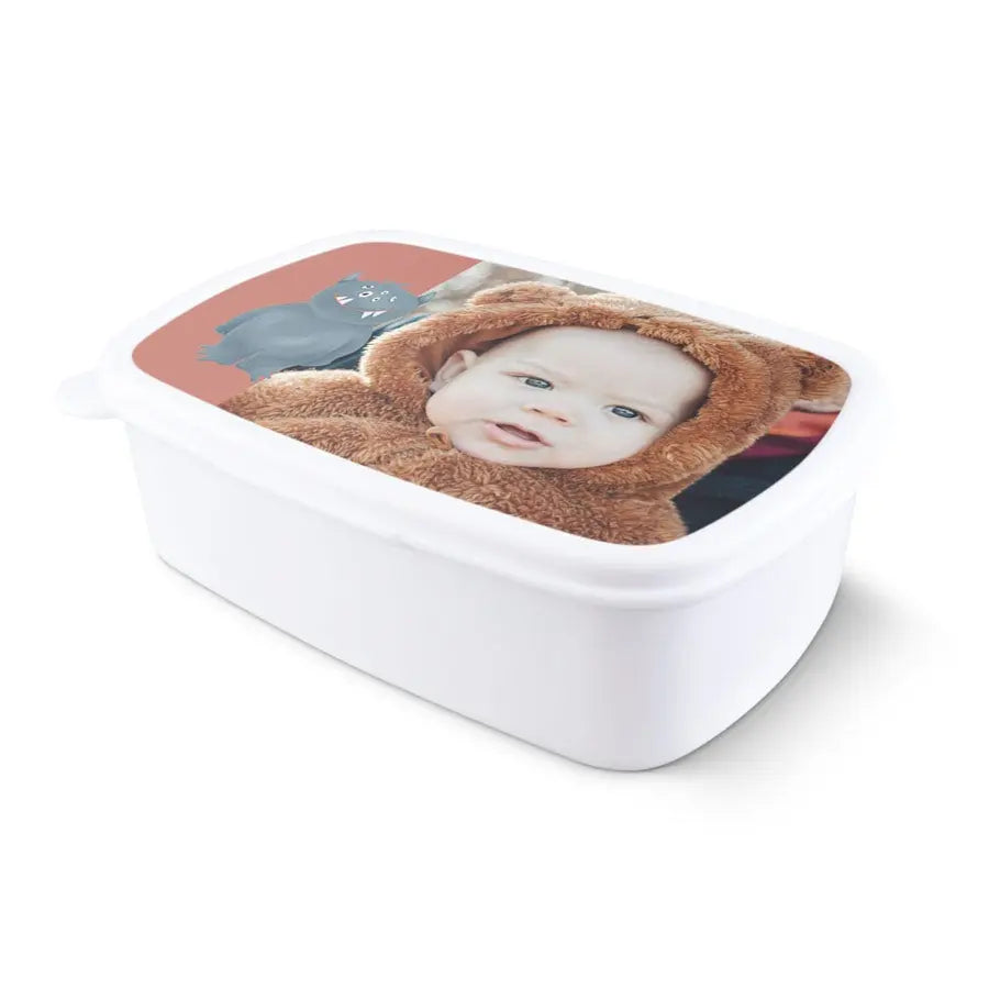 Una lunch box personalizzata con nome, foto o testo. Disponibile in diversi colori.Ulteriori informazioni sulla lunch box bianca: Colore: Bianco Materiale: Plastica con placca fotografica in alluminio Dimensioni: 18,20x12,40x5,80cm Stampa: Copertura totale sulla parte superiore
