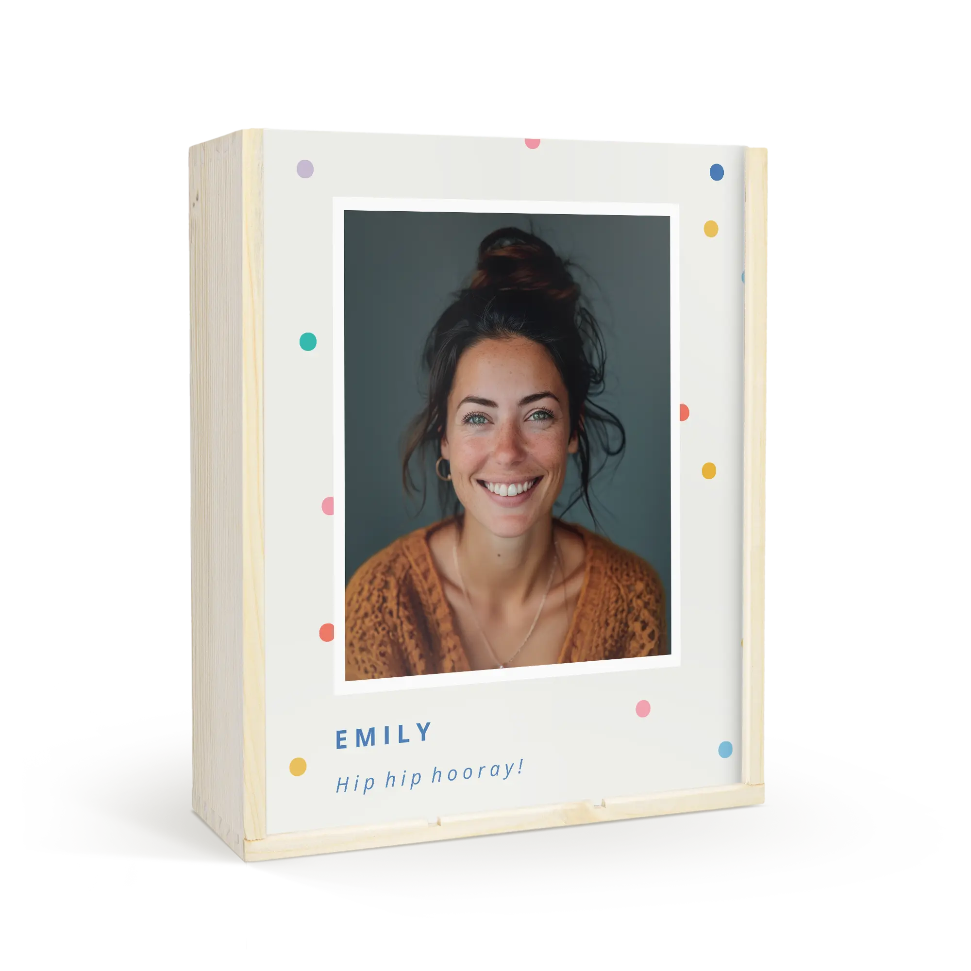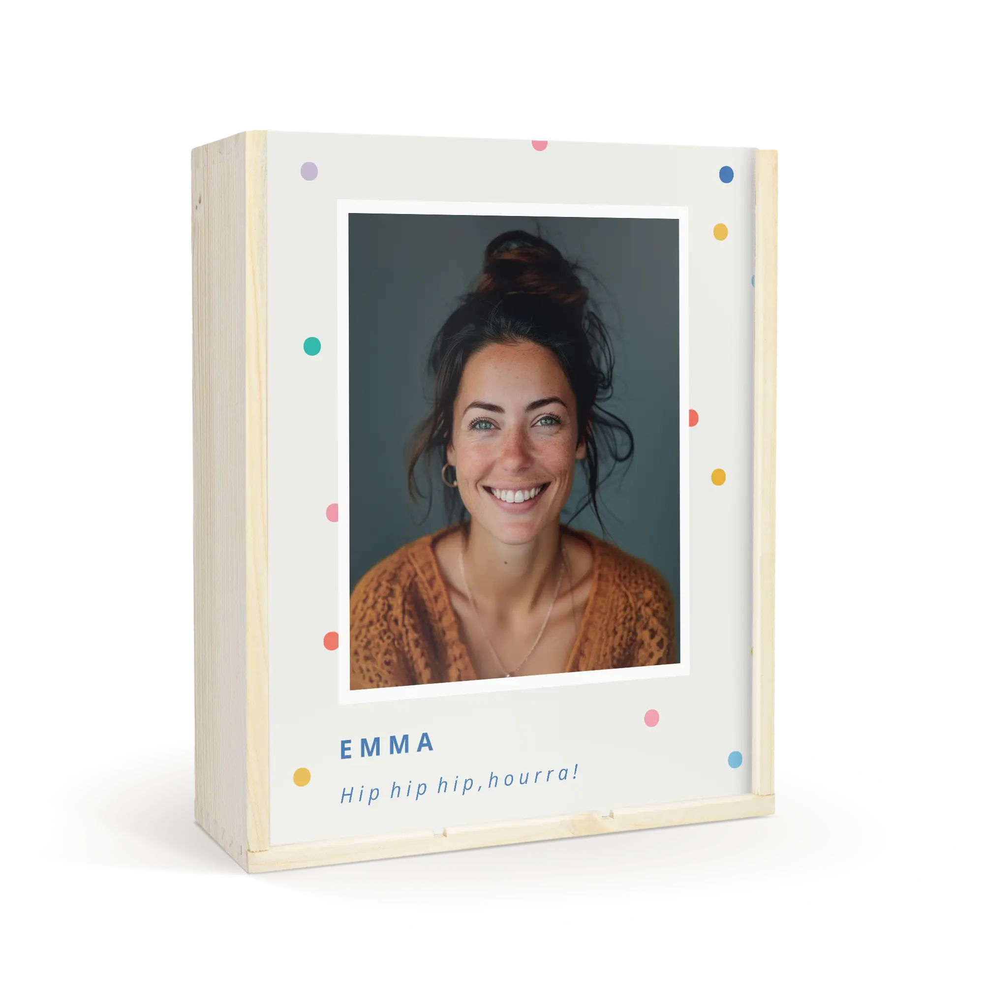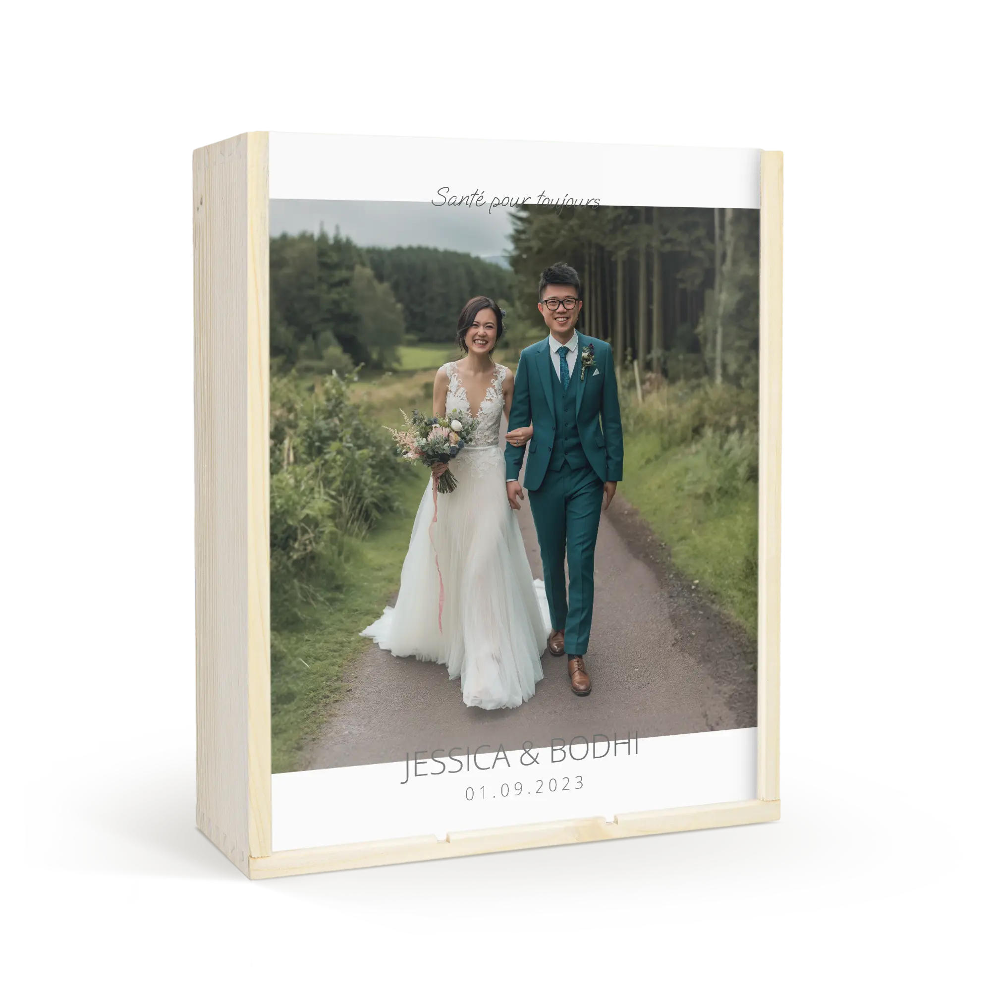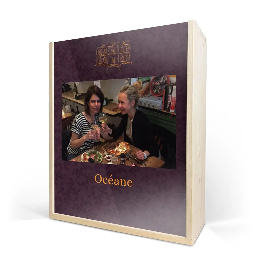 Delizioso vino Maison de la Surprise in una cassa di legno personalizzata con foto, testo e/o logo a tua scelta. Crea il tuo ora!