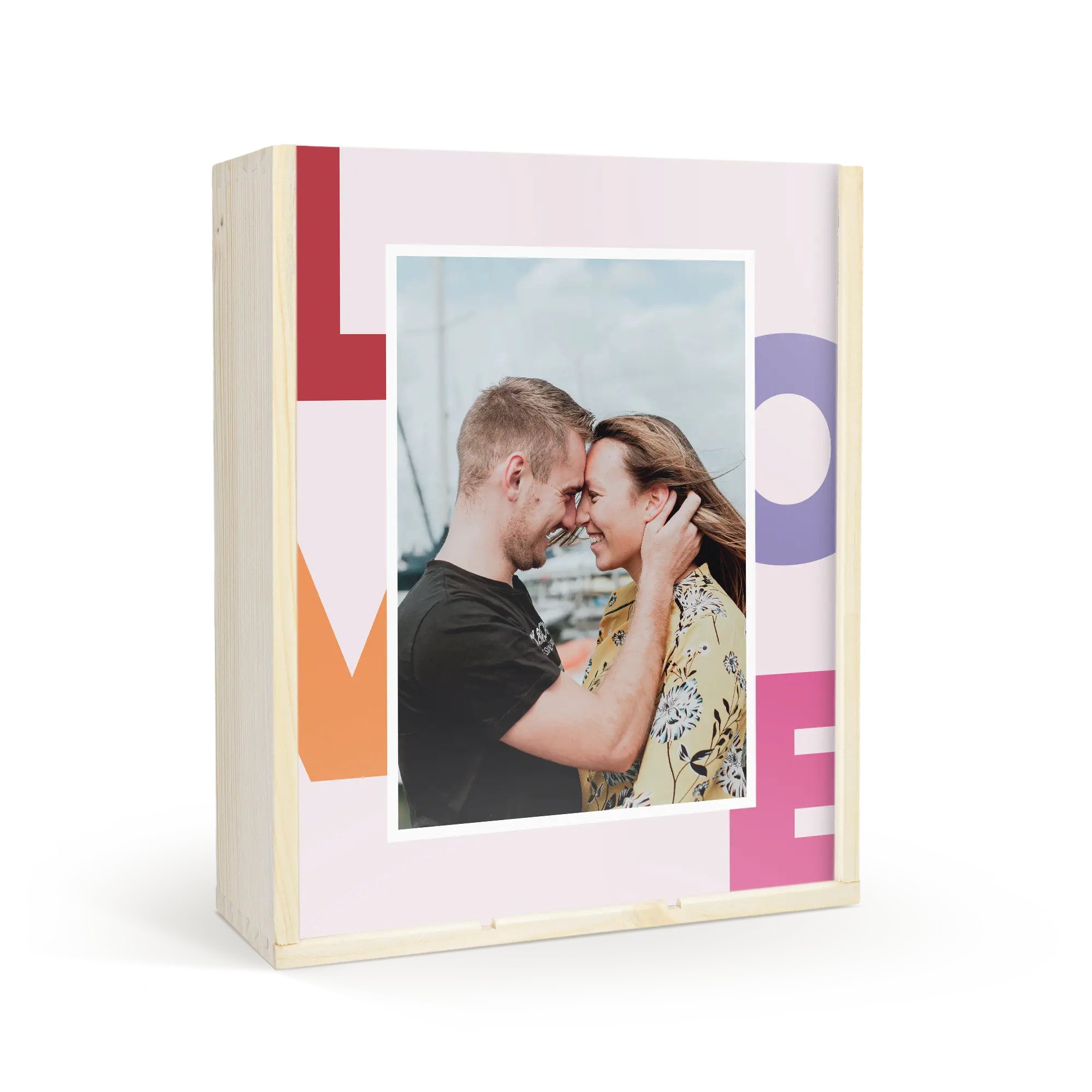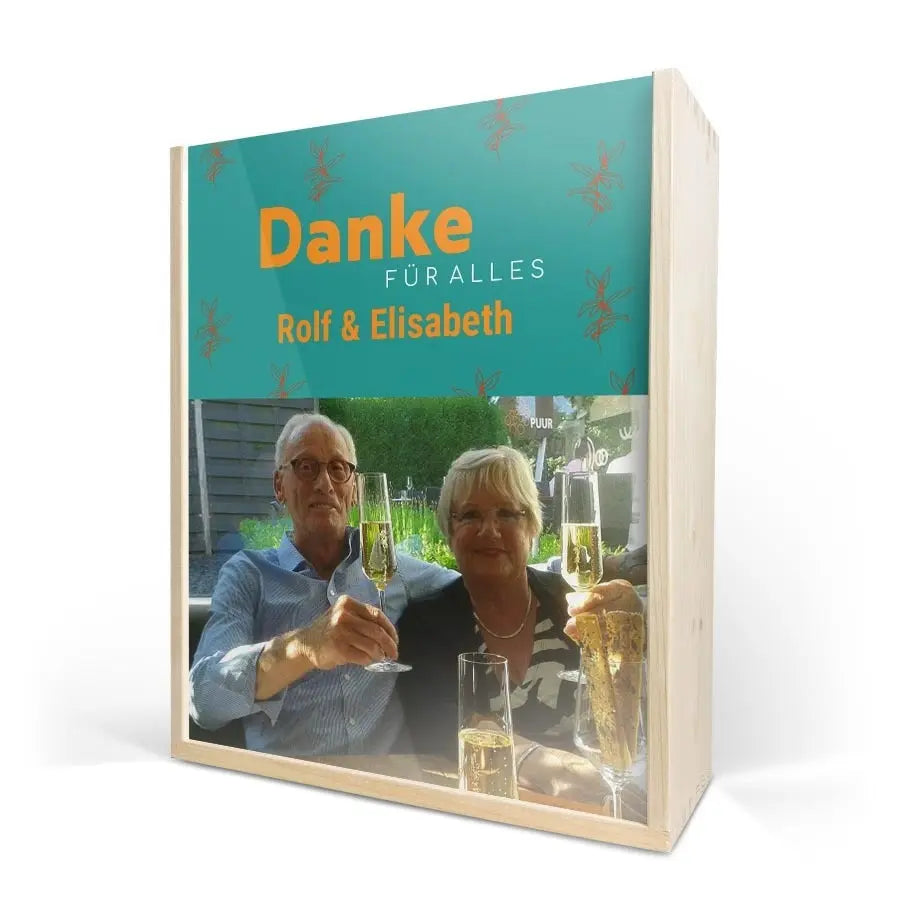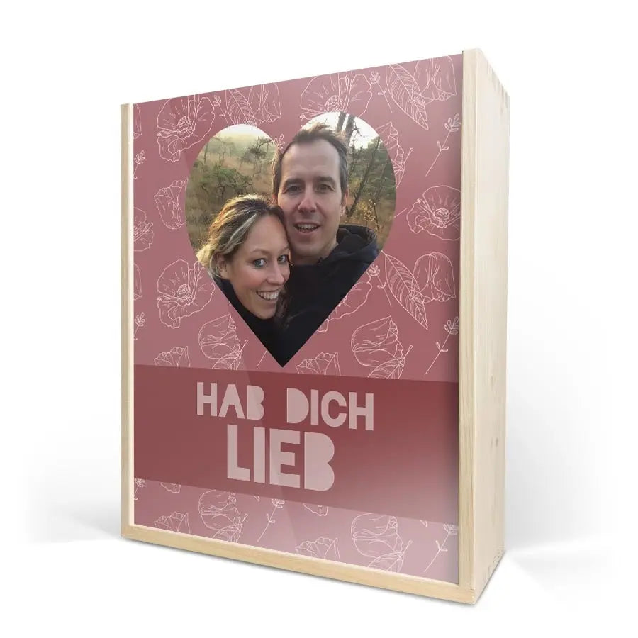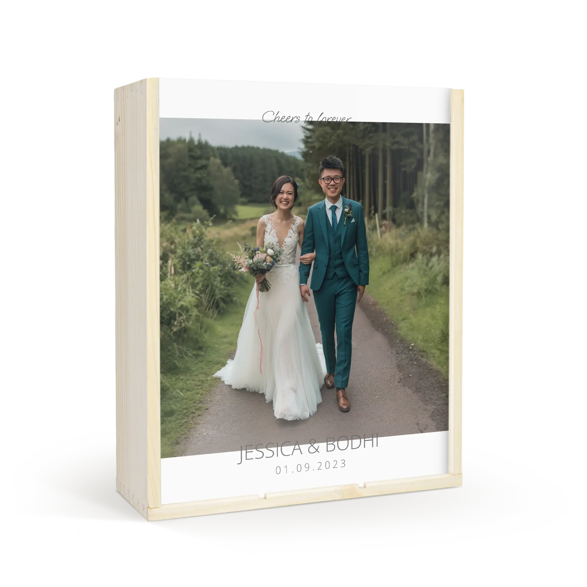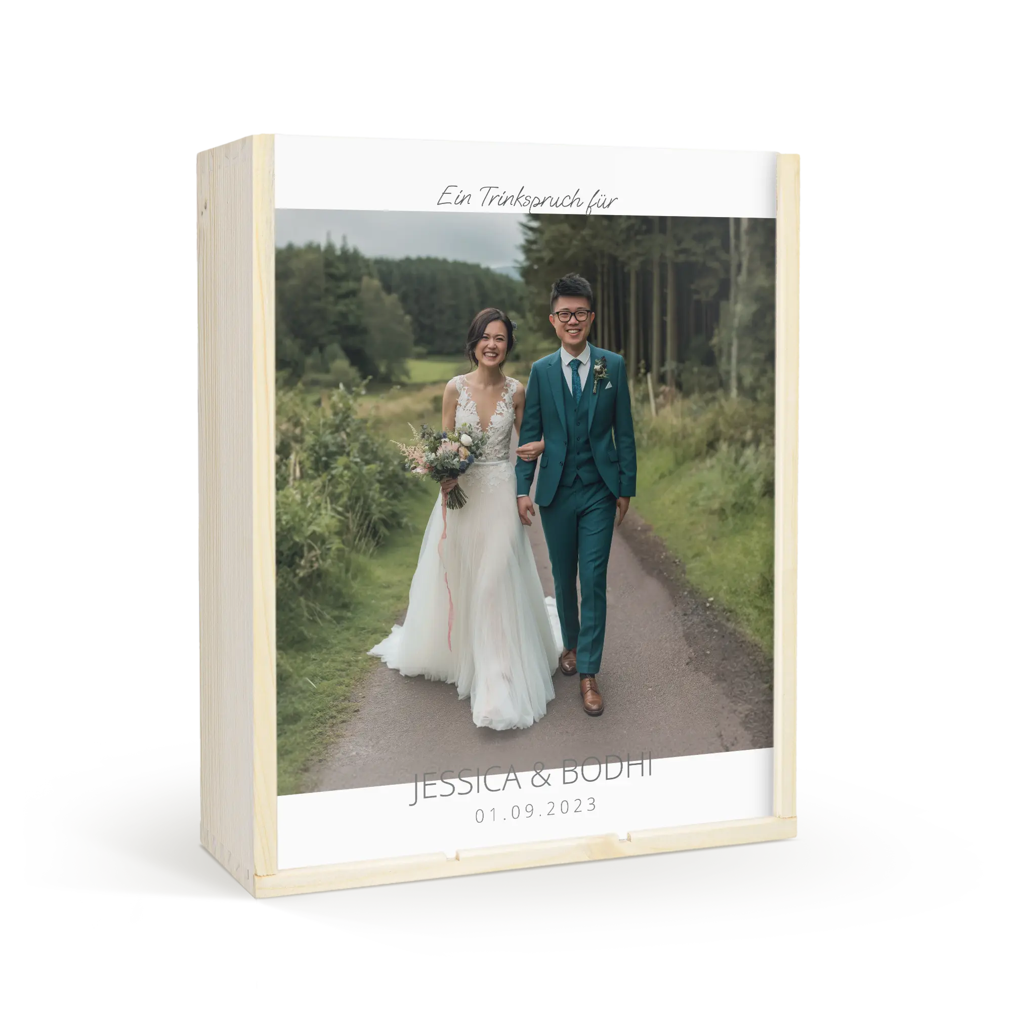 Delizioso vino Maison de la Surprise in una cassa di legno personalizzata con foto, testo e/o logo a tua scelta. Crea il tuo ora!
