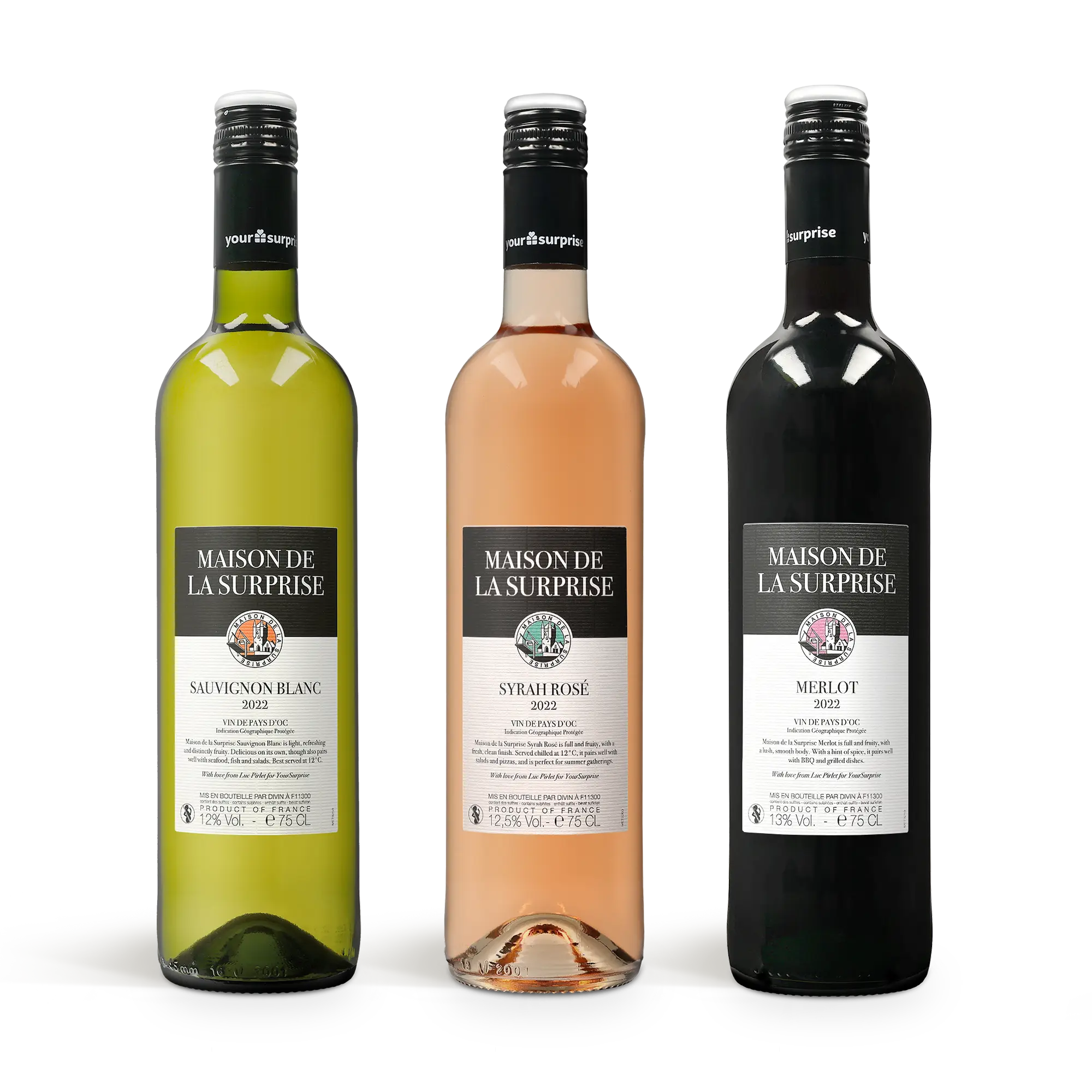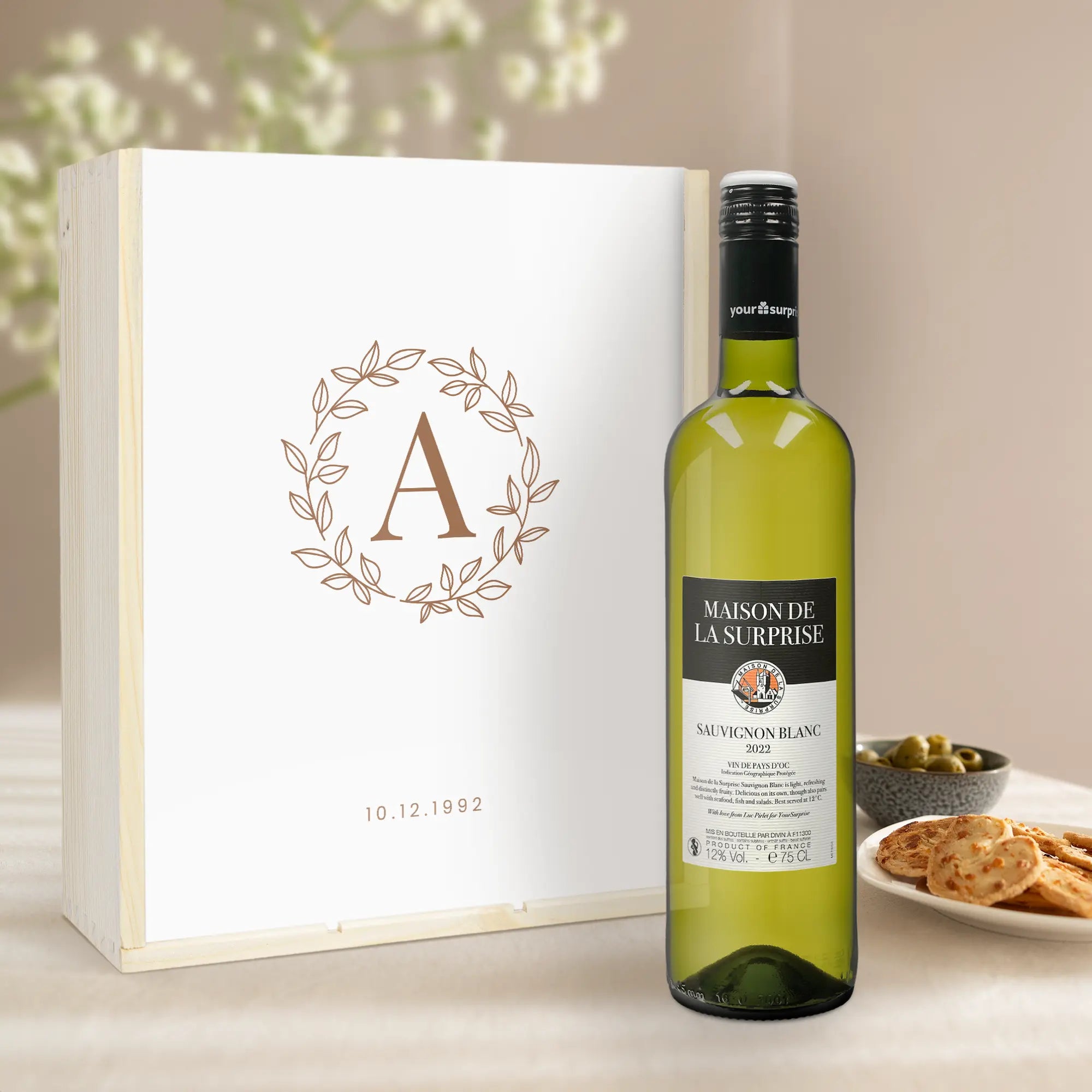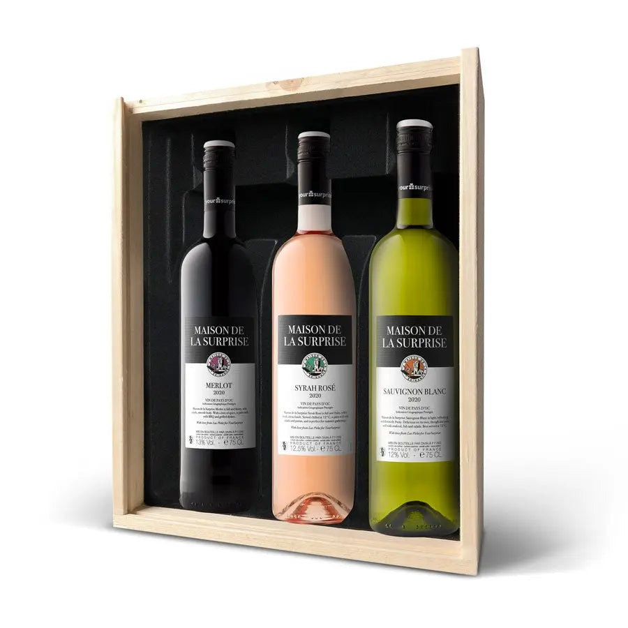 Vino in cassa di legno personalizzata - Maison de la Surprise - Merlot, Syrah & Sauvignon Blanc