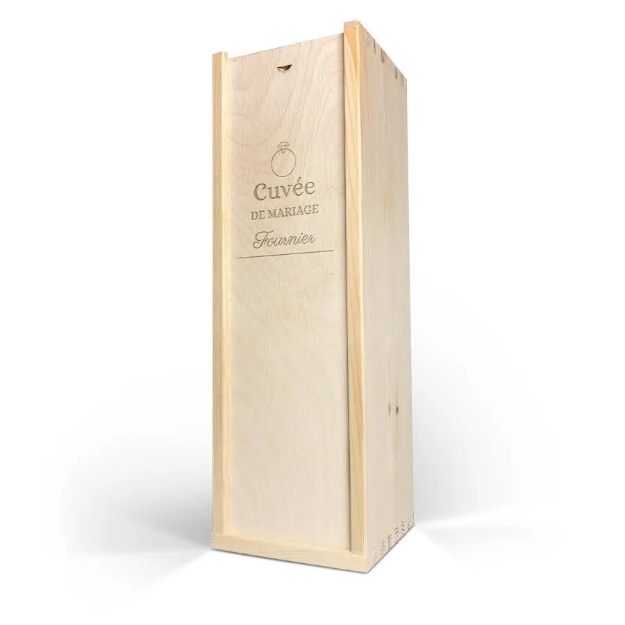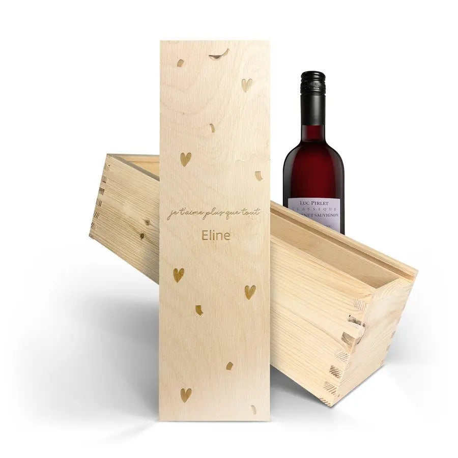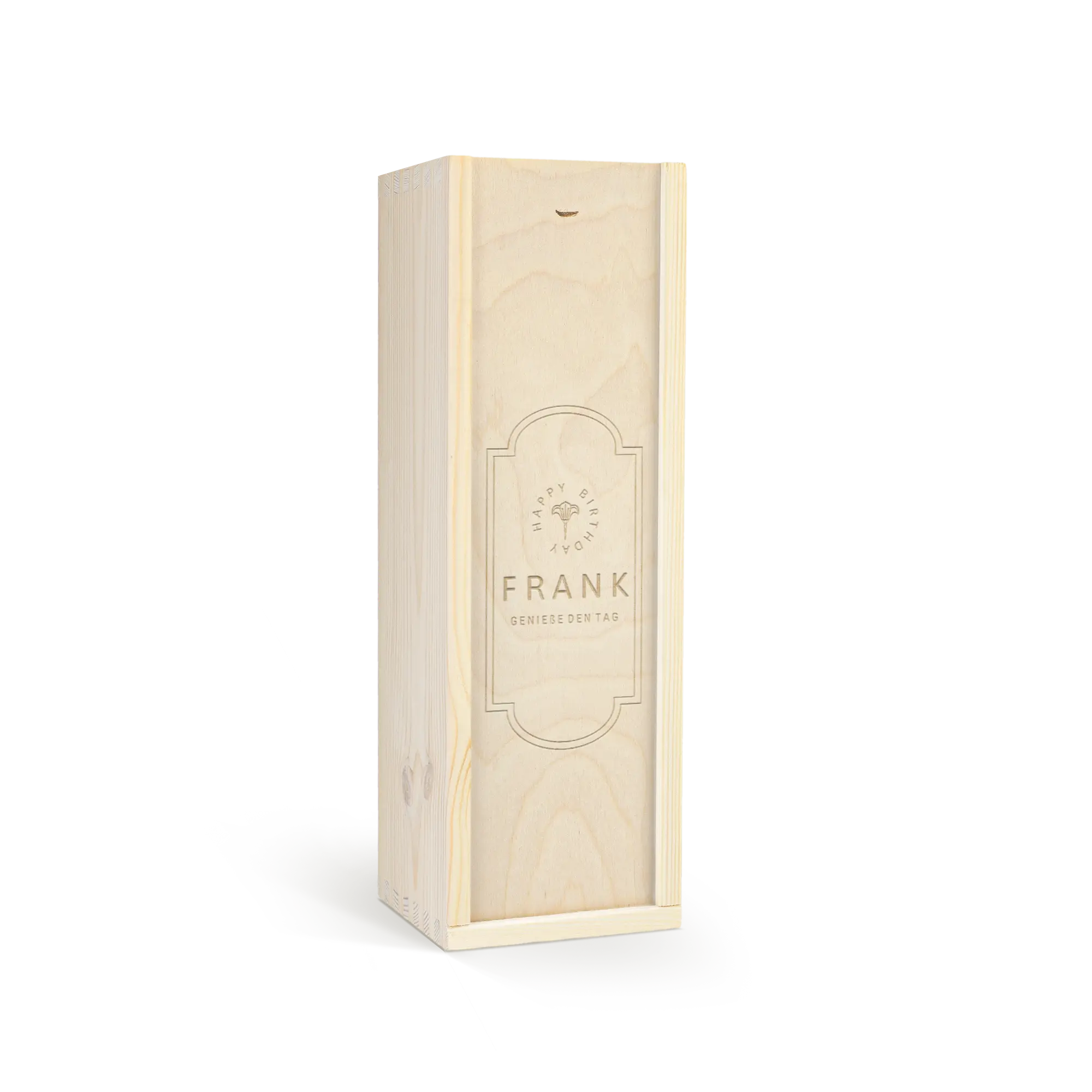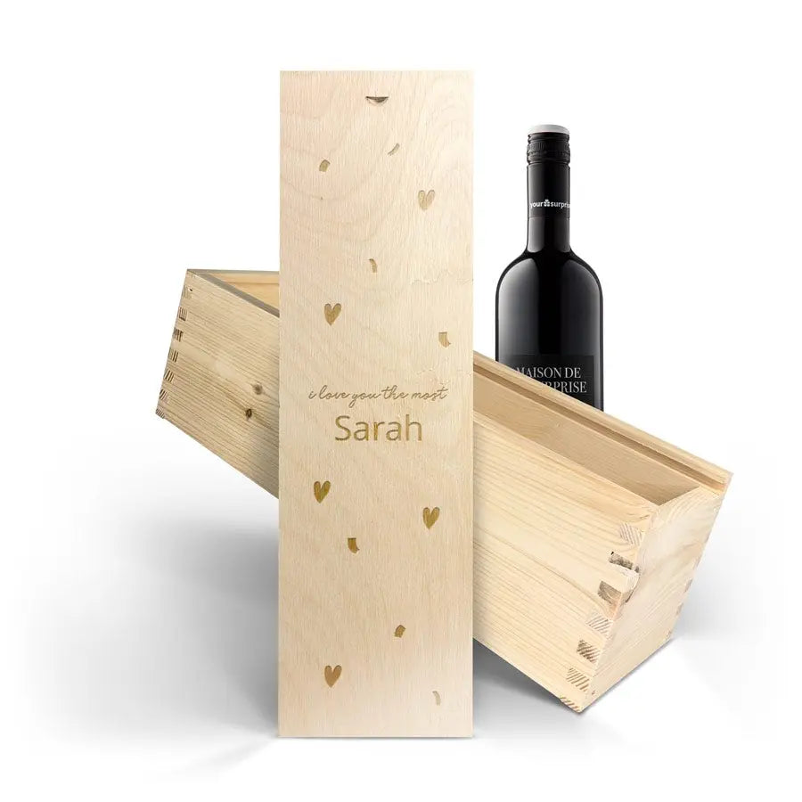Il vino rosso ideale per tutti gli amanti. Confezione in legno personalizzata con la tua foto o il tuo testo!Ulteriori informazioni sulla lussuosa custodia in legno: Personalizzazione: con foto, nome, logo o collage Posizionamento della personalizzazione: sul coperchio Stampa: immagine perfetta e a colori Dimensioni della cassa: 36,5 x 12 x 11 cm Dimensioni del coperchio: 35,6 x 10,2 x 0,3 cm La custodia in legno è realizzata con legno certificato FSC. Nome: Maison de la Surprise Cabernet Sauvignon Paese: Francia Colore: Rosso Uva: 100% Cabernet SauvignonCaratteristiche: Sapore morbido e bilanciato. SaporeAromi di frutti neri con note erbacee e di peperone verde.AbbinamentoQuesto vino è perfetto per grigliate, carni affumicate o dal sapore dolce.