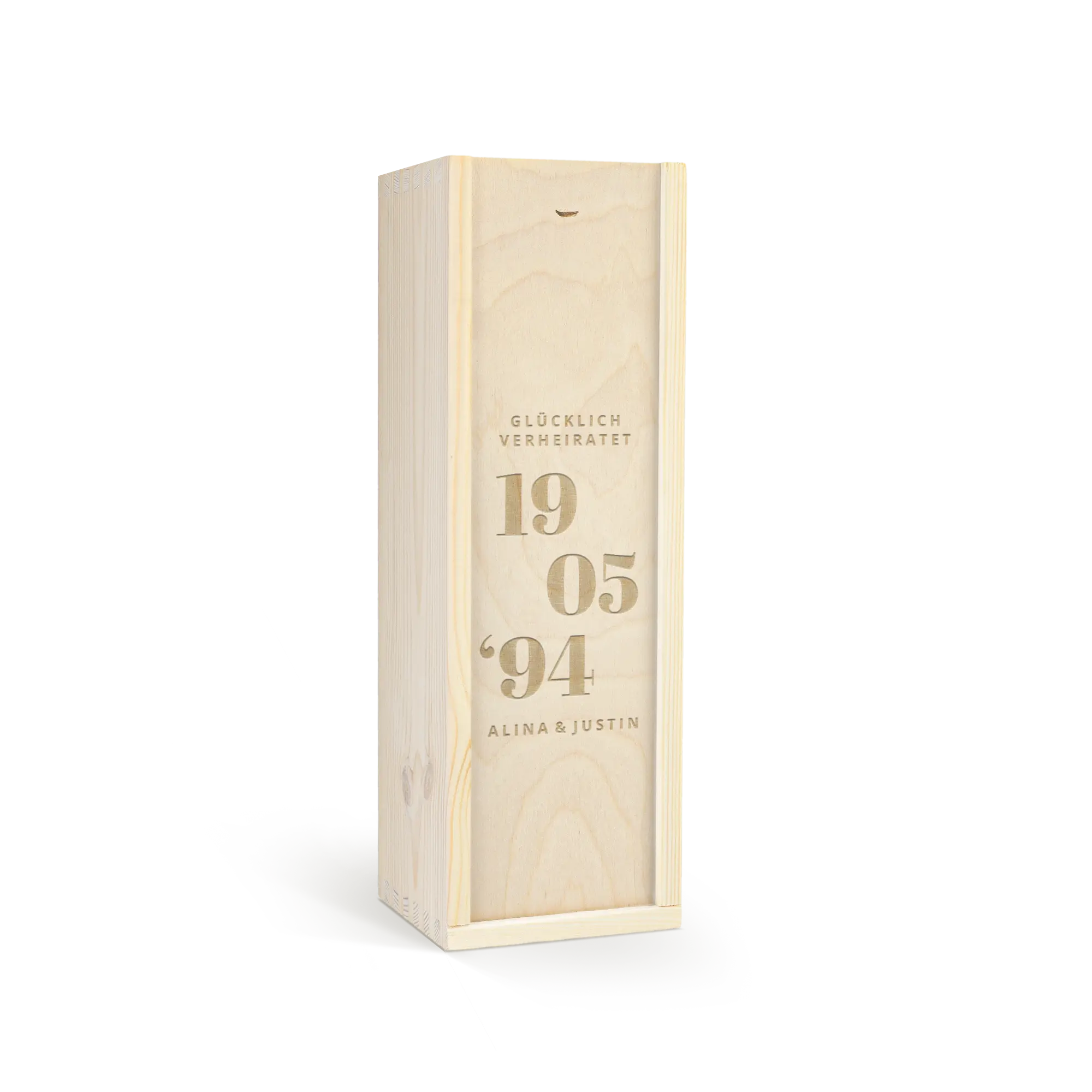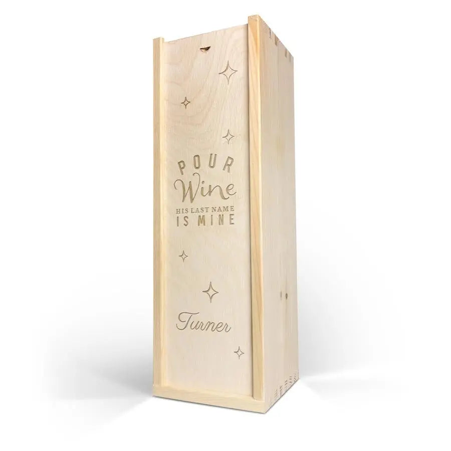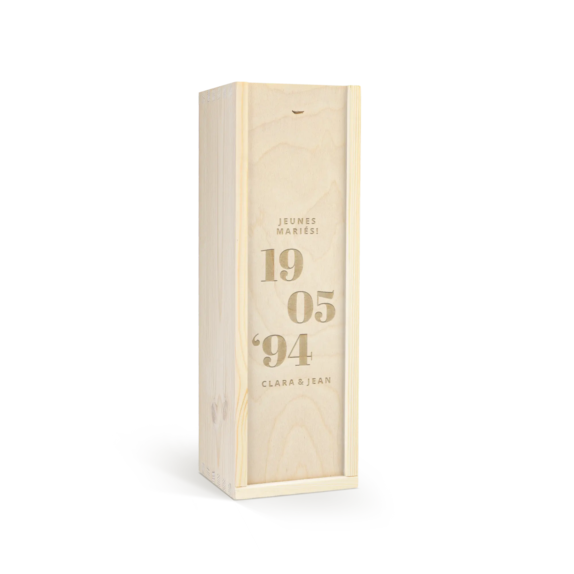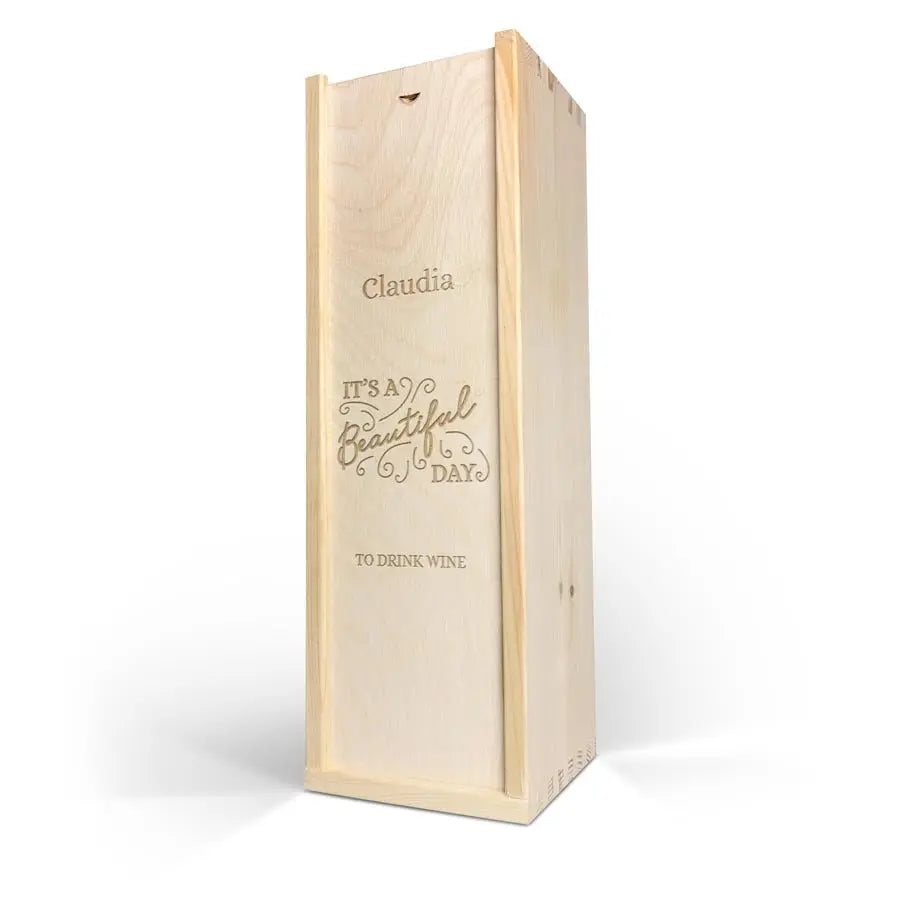Il vino rosso ideale per tutti gli amanti. Confezione in legno personalizzata con la tua foto o il tuo testo!Ulteriori informazioni sulla lussuosa custodia in legno: Personalizzazione: con foto, nome, logo o collage Posizionamento della personalizzazione: sul coperchio Stampa: immagine perfetta e a colori Dimensioni della cassa: 36,5 x 12 x 11 cm Dimensioni del coperchio: 35,6 x 10,2 x 0,3 cm La custodia in legno è realizzata con legno certificato FSC. Nome: Maison de la Surprise Cabernet Sauvignon Paese: Francia Colore: Rosso Uva: 100% Cabernet SauvignonCaratteristiche: Sapore morbido e bilanciato. SaporeAromi di frutti neri con note erbacee e di peperone verde.AbbinamentoQuesto vino è perfetto per grigliate, carni affumicate o dal sapore dolce.