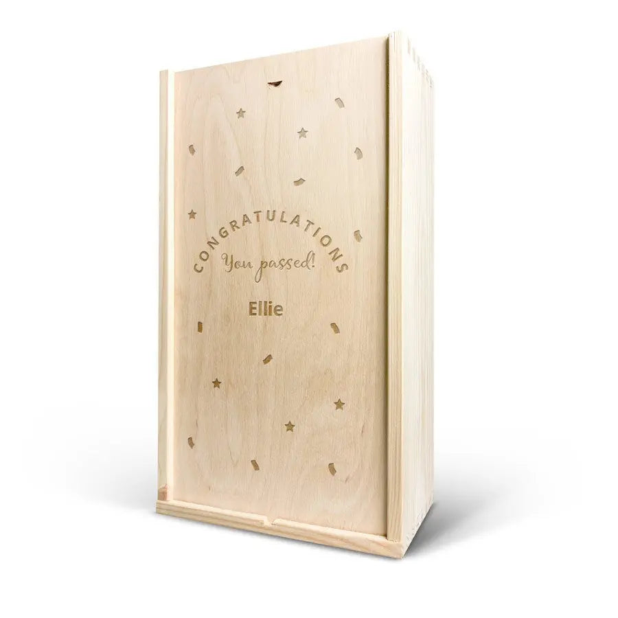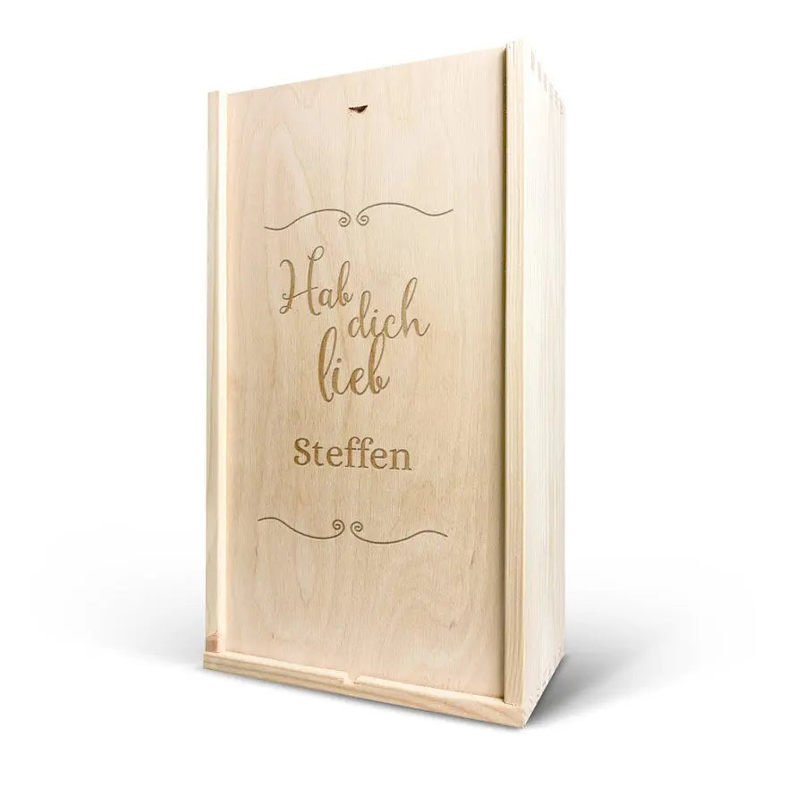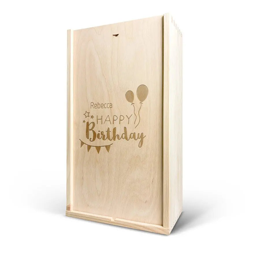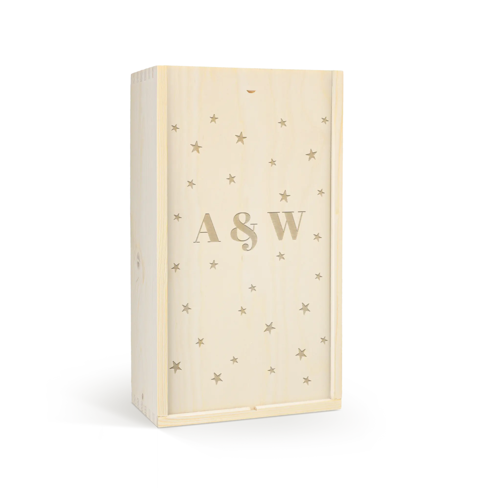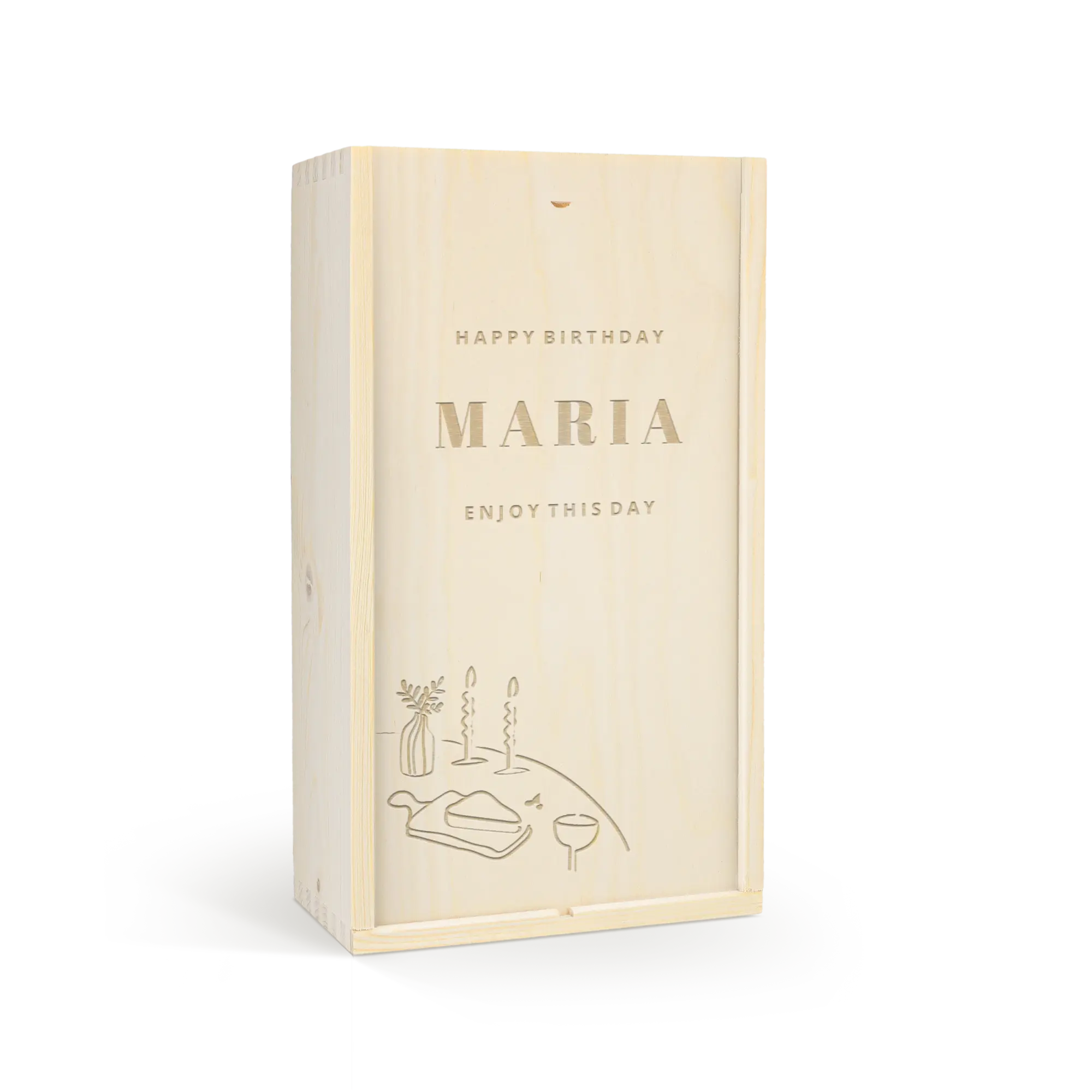 Deliziose bottiglie di vino Maison de la Surprise, davvero personali in una lussuosa custodia incisa con il nome o il testo che preferisci.Ulteriori informazioni sulla lussuosa cassa del vino: Personalizzazione: con nome o testo Posizionamento della personalizzazione: sul coperchio della custodia in legno Incisione: incisione laser di alta qualità Dimensioni della cassa: 36,5 x 20,6 x 11 cm Dimensioni del coperchio: 35,6 x 18,9 x 0,3 cm Il legno è certificato FSC Ulteriori informazioni sui vini: Marchio: Maison de la SurpriseContenuto: 750 ml per bottiglia Paese di origine: Francia Luc Pirlet bianco: Vitigno: Chardonnay Carattere: Maison de la Surprise Chardonnay ha note di gelsomino, pesca bianca e agrumi. Si abbina bene con insalate e frutti di mare. Luc Pirlet rosso: Vitigno: Merlot Carattere: Maison de la Surprise Merlot è un vino pieno e robusto con un profumo intenso di frutti neri e un pizzico di vaniglia. Si abbina bene con pollame e carne arrostita.