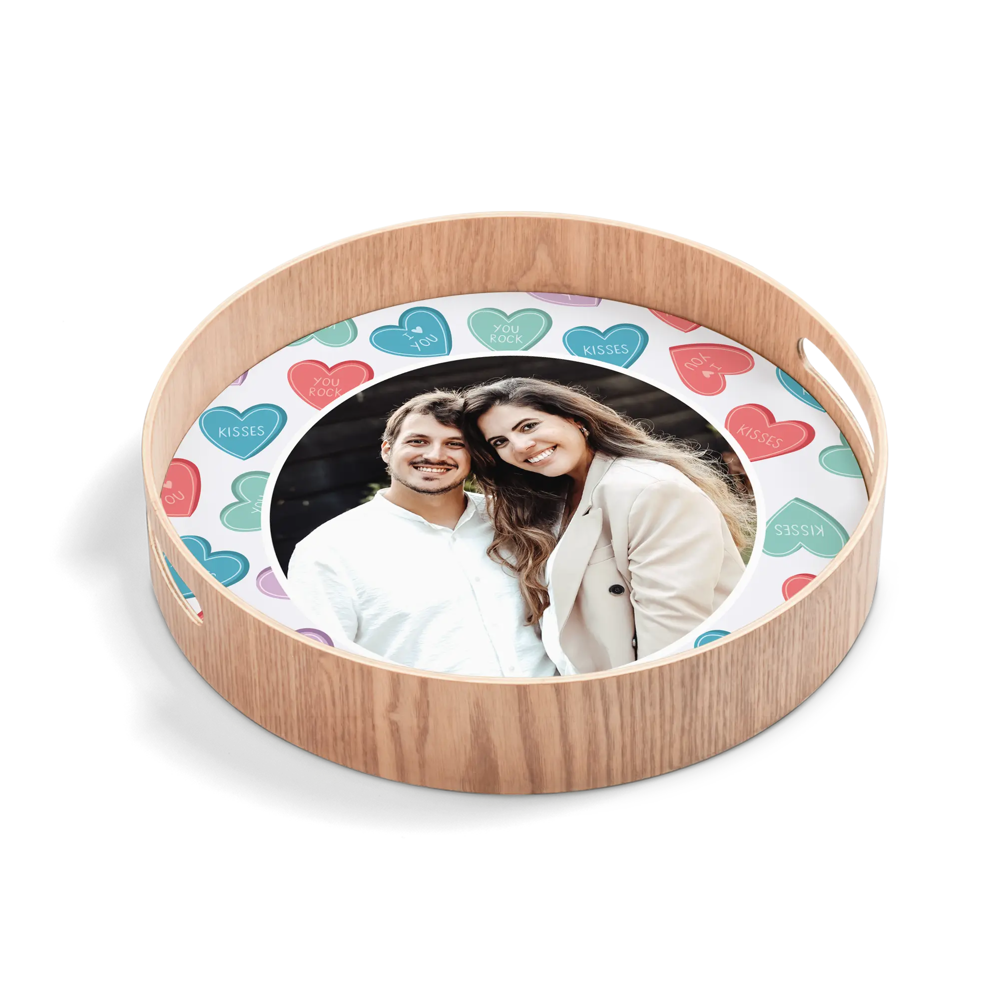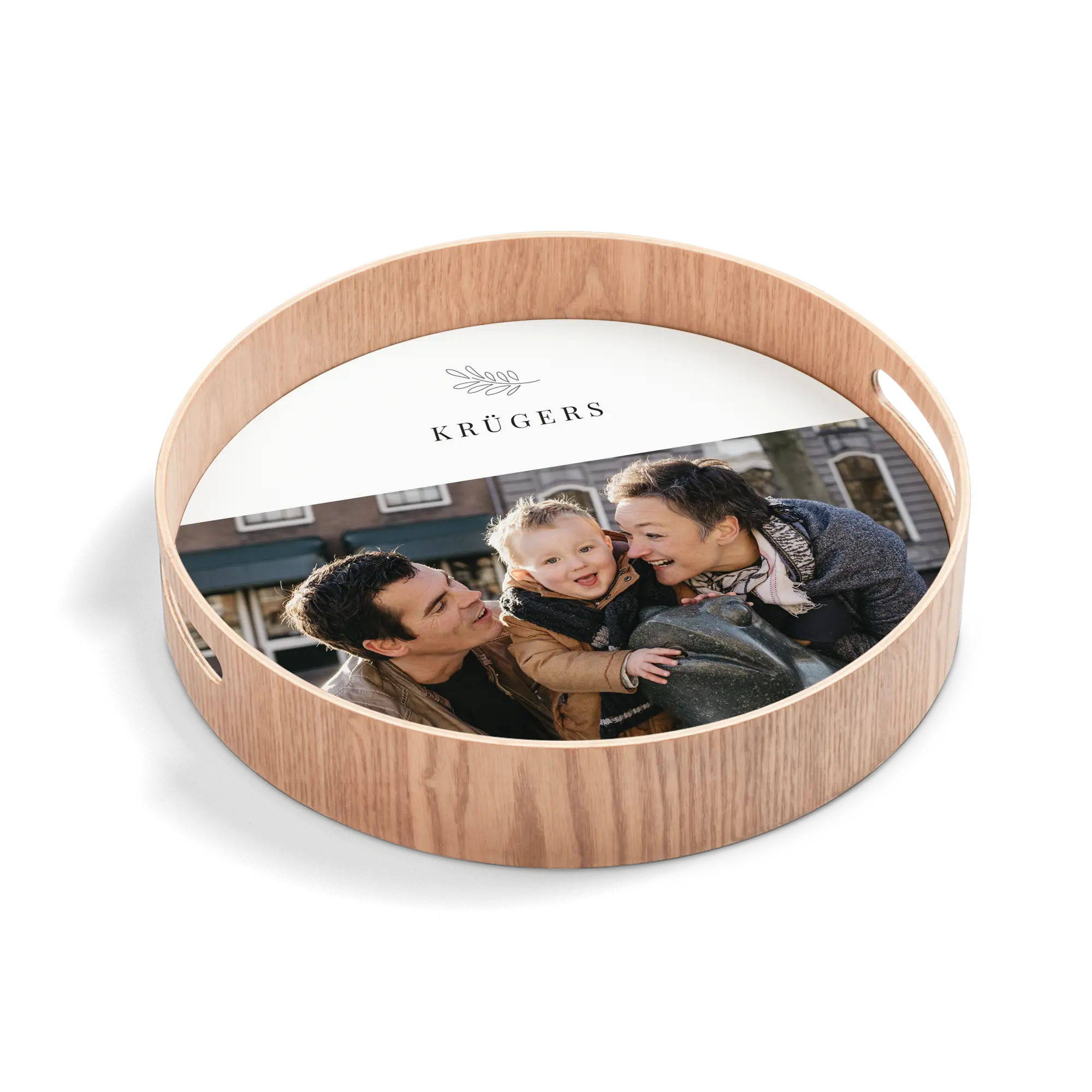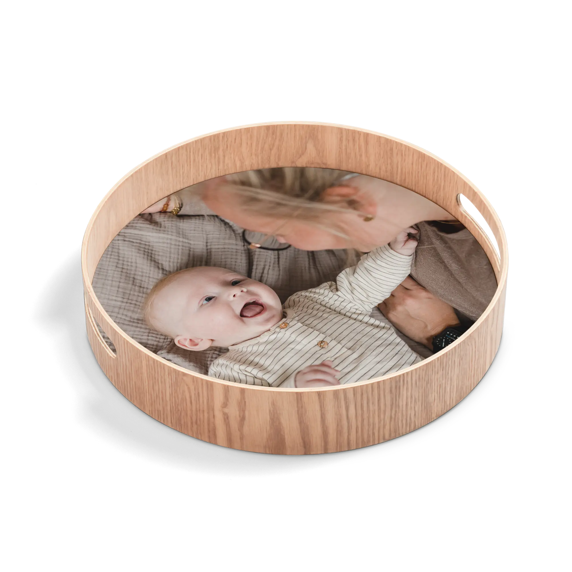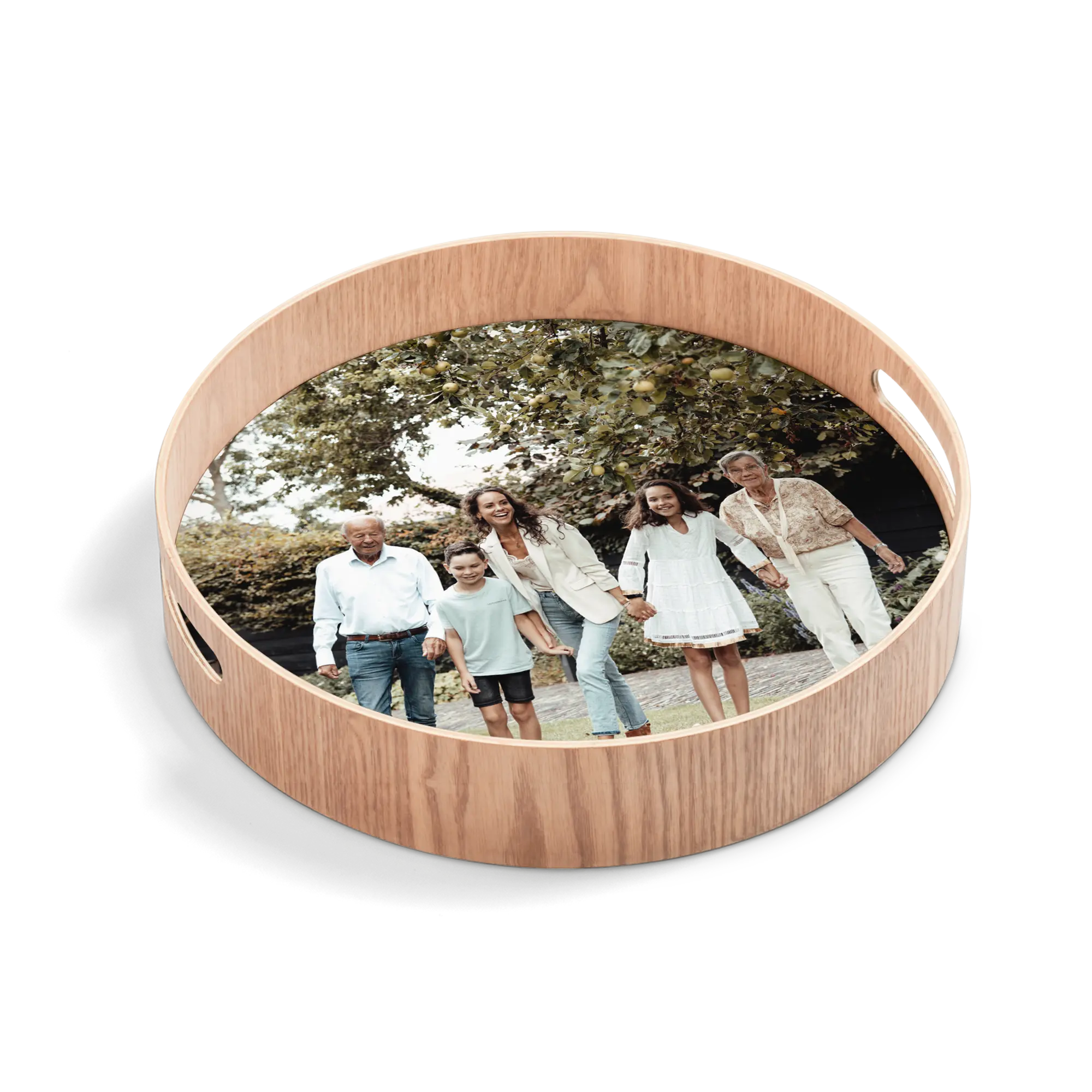 Cornice in legno deluxe con base in hardboard personalizzata di alta qualità che presenta la foto, il nome, il logo e/o il testo di tua scelta!Ulteriori informazioni sul vassoio personalizzato:Forma: rotondoColore: legno Materiale: cornice in legno deluxe (legno di pino) con base in hardboard di alta qualitàFinitura: lucidaDimensioni: 30 x 30 x 5 cmPersonalizzazione: con foto, nome, logo o collageStampa: perfetta e a colori vivaci