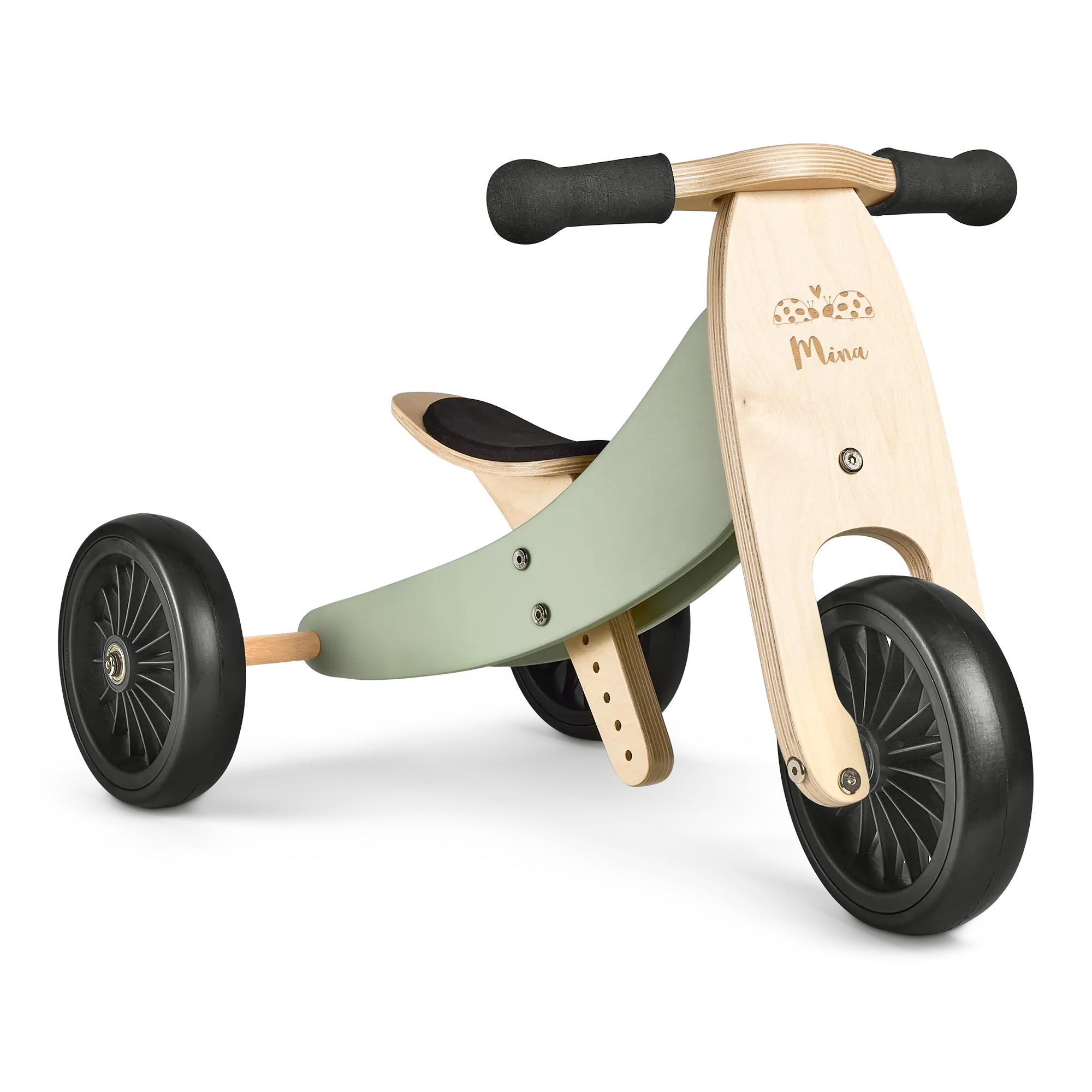 Tricicli in legno unici con nome. Incredibile qualità del legno di betulla, personalizzati con incisione. Per bambini e bambine!Maggiori informazioni sul triciclo in legno inciso:Dimensioni: 72 x 45 x 44 cmAltezza del sedile: regolabile da 25 a 34 cmEtà: da 1,5 anniPeso: ± 3 chiliCapacità di carico massima: 25 kiliPersonalizzazione: incisione del testoLuogo della personalizzazione: sulla parte anterioreExtra: con protezione speciale sui manici. Il triciclo può essere facilmente convertito in una bicicletta senza pedaliNota: il legno è un prodotto naturale, quindi il tuo regalo può differire leggermente dalla foto di esempio.Purtroppo, per motivi tecnici, non è possibile lavorare caratteri cirillici, turchi o speciali.