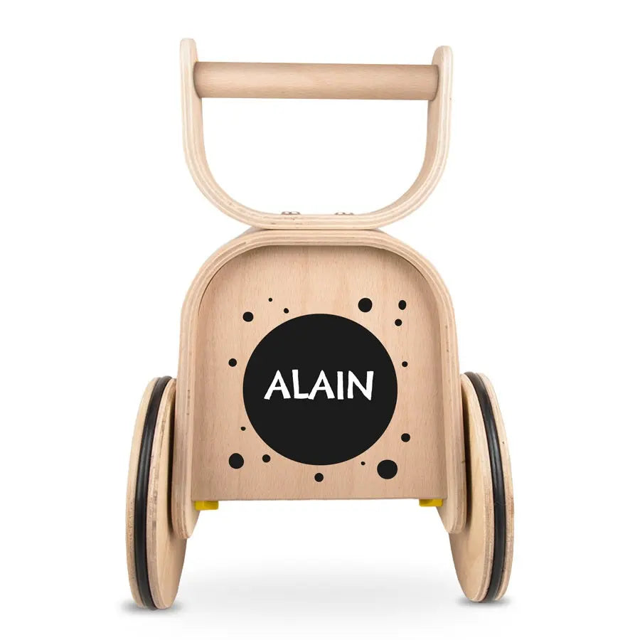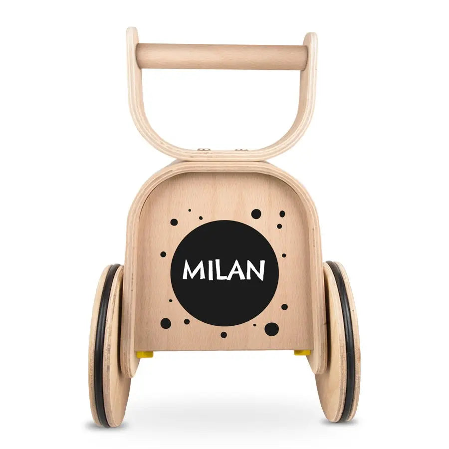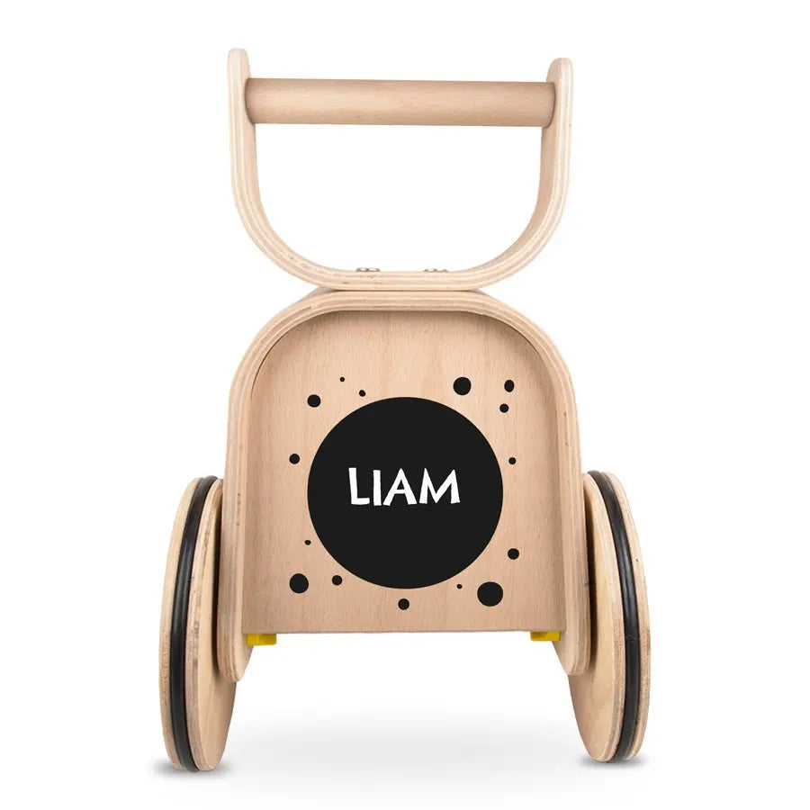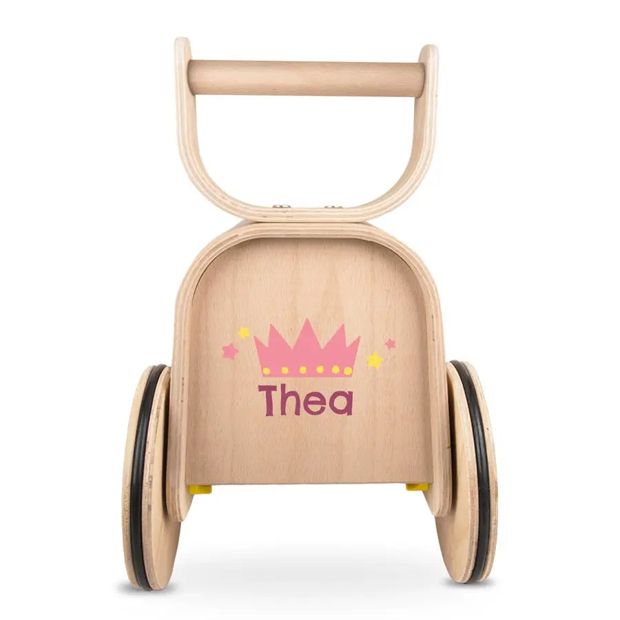 Imparare a camminare è ancora più divertente con questa macchina in legno da spingere. Può essere utilizzata come giocattolo da spingere, auto da corsa e contenitore per giocattoli!Maggiori informazioni sul giocattolo in legno da spingere stampato:Dimensioni: 49 x 21 cmAltezza del sedile: 21 cmPeso: ± 4 kgTipo di legno: multistrato di betulla super resistente e senza scheggeDettagli: legno di betulla di alta qualitàEtà: 10 mesi +Tipo di personalizzazione: con nomePosizionamento della personalizzazione: sulla parte anterioreMetodo di personalizzazione: foglio di vinile laminato di alta qualitàExtra: 3 giocattoli in 1; cavalcare, spingere e conservare!Buono a sapersi:Le ruote sono dotate di un inserto in gomma, il che significa che il tuo piccolo può correre in casa senza troppo rumore. Puoi anche regolare la velocità massima usando le pratiche clips incluse per questo scopo.