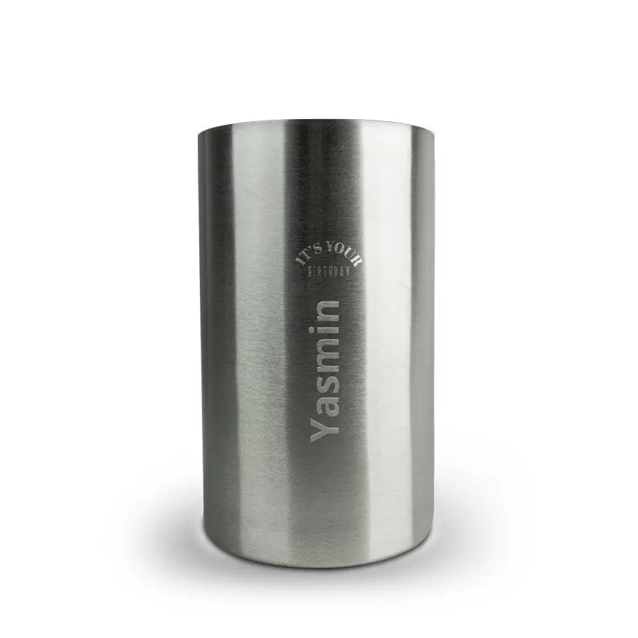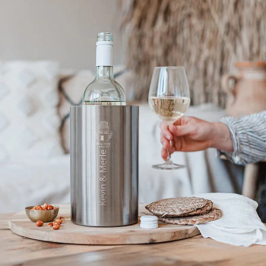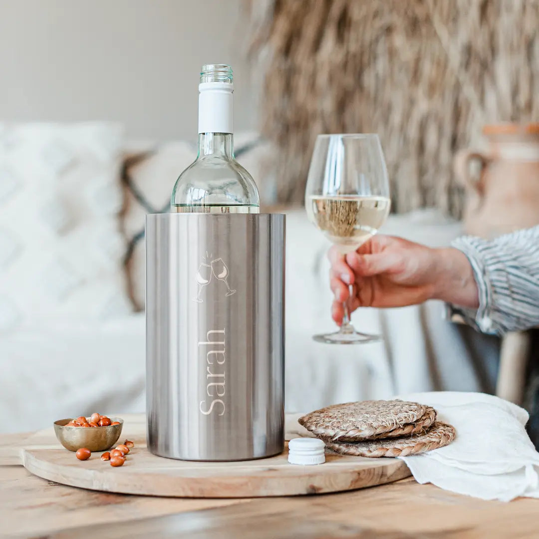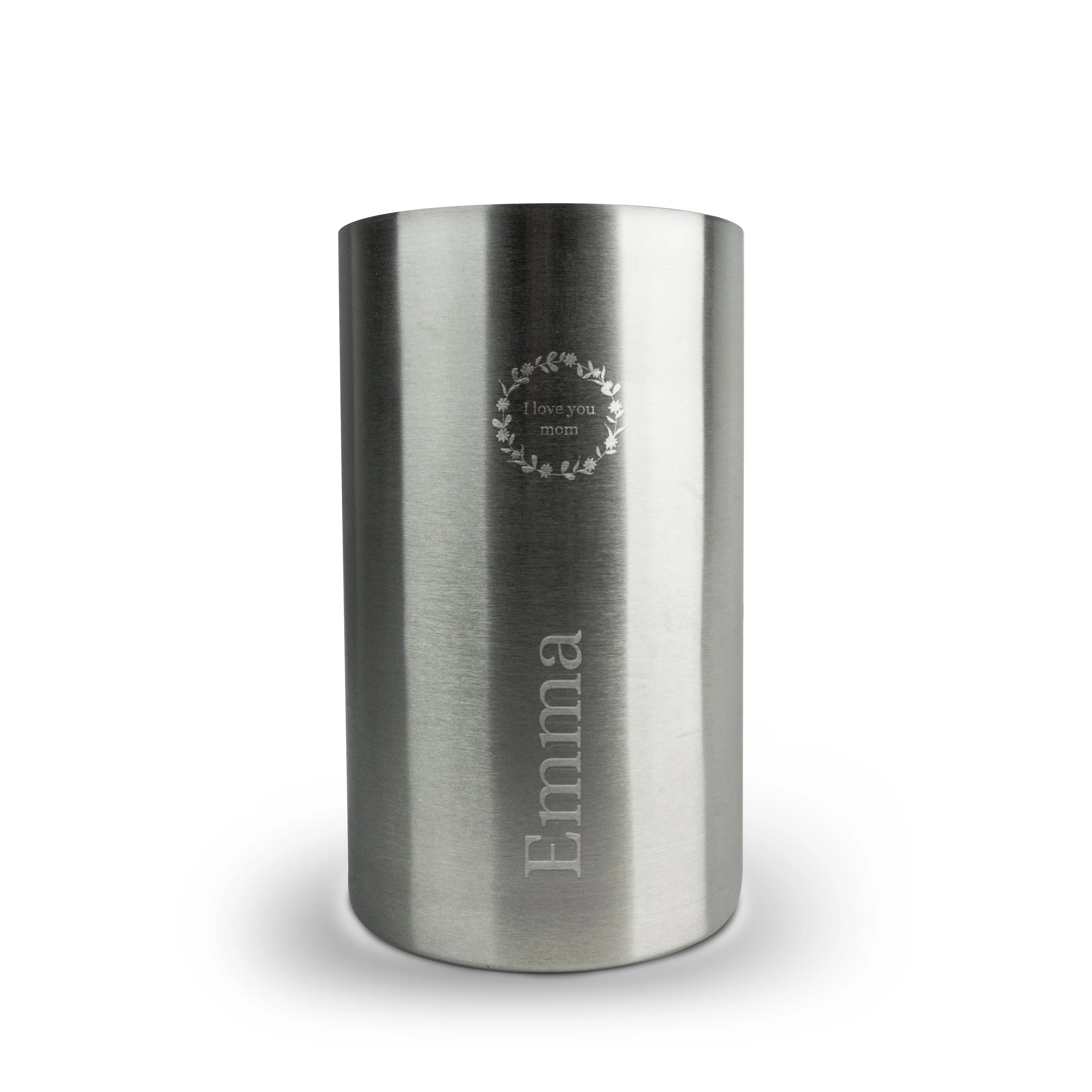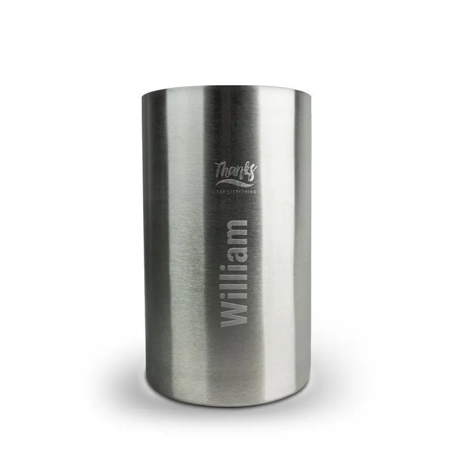 Se stai cercando un regalo personale lussuoso, scegli questo refrigeratore per vino inciso con il nome o il testo a tua scelta.Maggiori informazioni sul refrigeratore per vino:Materiale: acciaio inossidabileColore: argentoDimensioni: 20 x 12 x 12 cm / 7,9" x 4,7" x 4,7"Personalizzazione: incisione testo