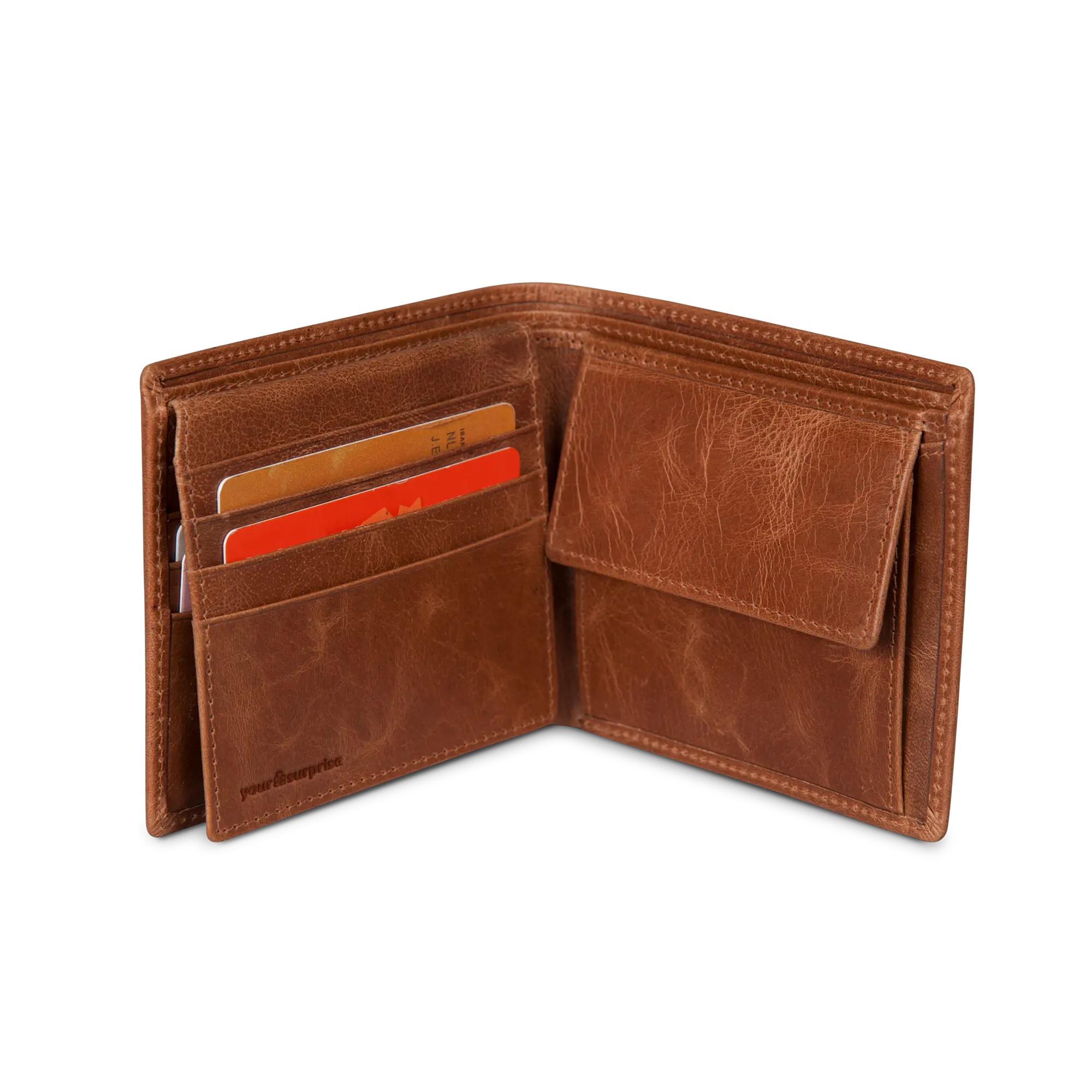 Un unico portafoglio in pelle con nome e / o testo inciso. Realizzato in pelle di bufalo pieno fiore concia vegetale Il regalo più bello per tutti!Maggiori informazioni sul portafoglio in pelle incisa: Modello: pieghevole Materiale: pelle di bufalo a grana piena conciata al vegetale Dimensioni: 11,5 x 9,5 x 2,3 cm Colore: marrone (brandy) Contenuto: spazio per carte, foto, banconote e monete Finitura: incisione laser di alta qualità Personalizzazione: con un nome e / o un testo Extra: la pelle è un prodotto naturale. Ciò significa che il tuo regalo potrebbe differire leggermente dalla foto di esempio.