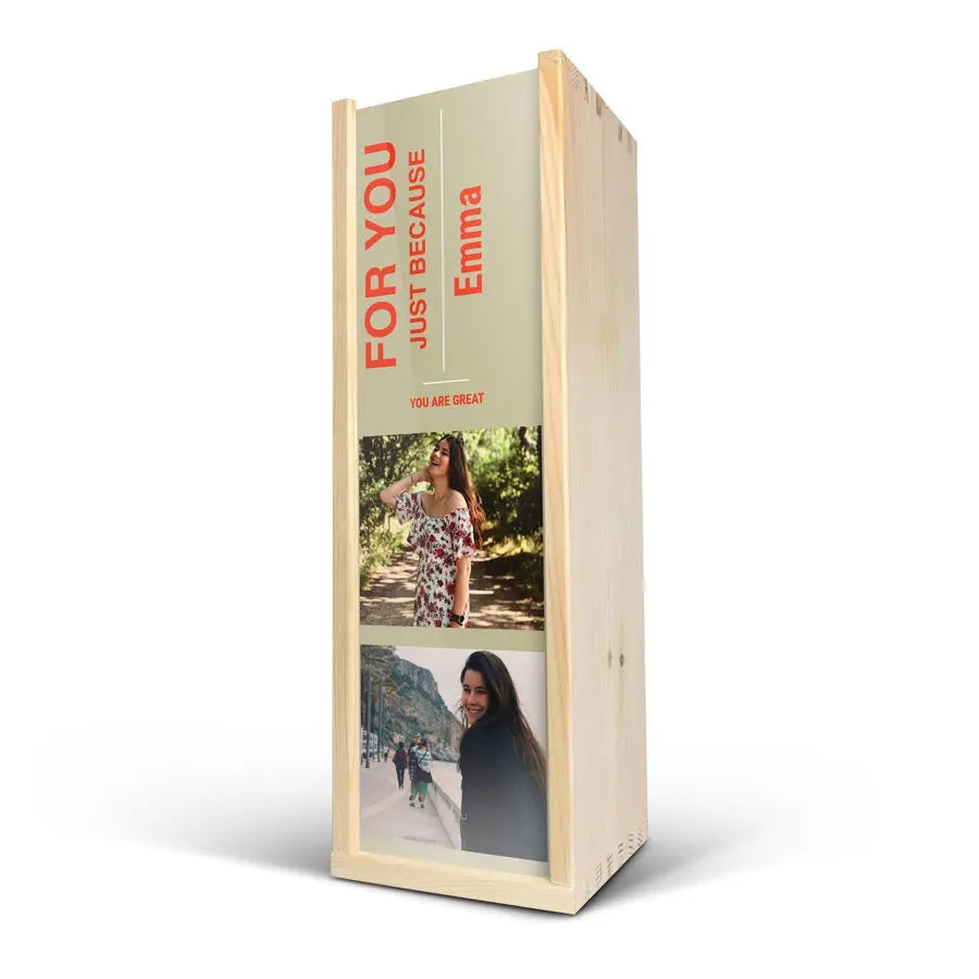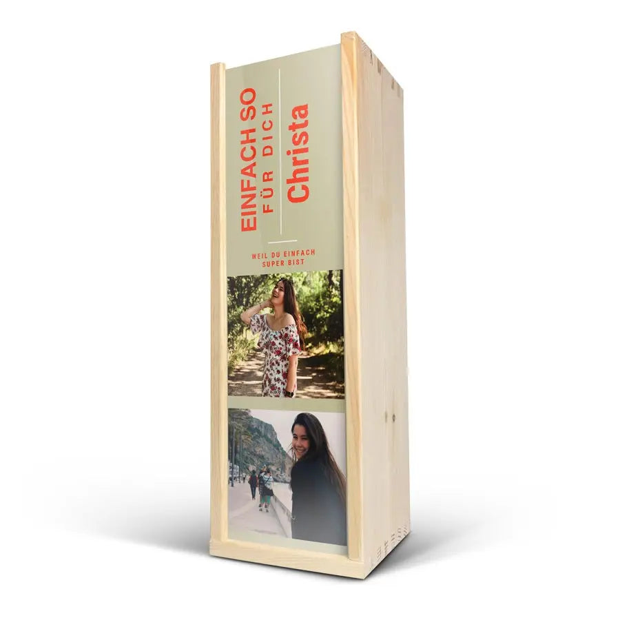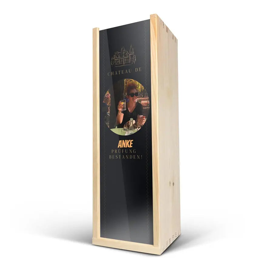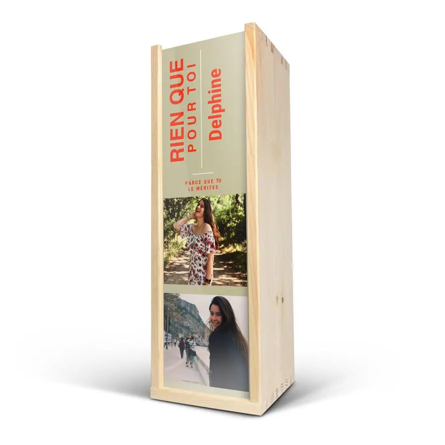 Una deliziosa bottiglia di vero champagne Moët & Chandon in una custodia in legno personalizzata con il tuo nome o testo. Varie misure di bottiglie disponibili!