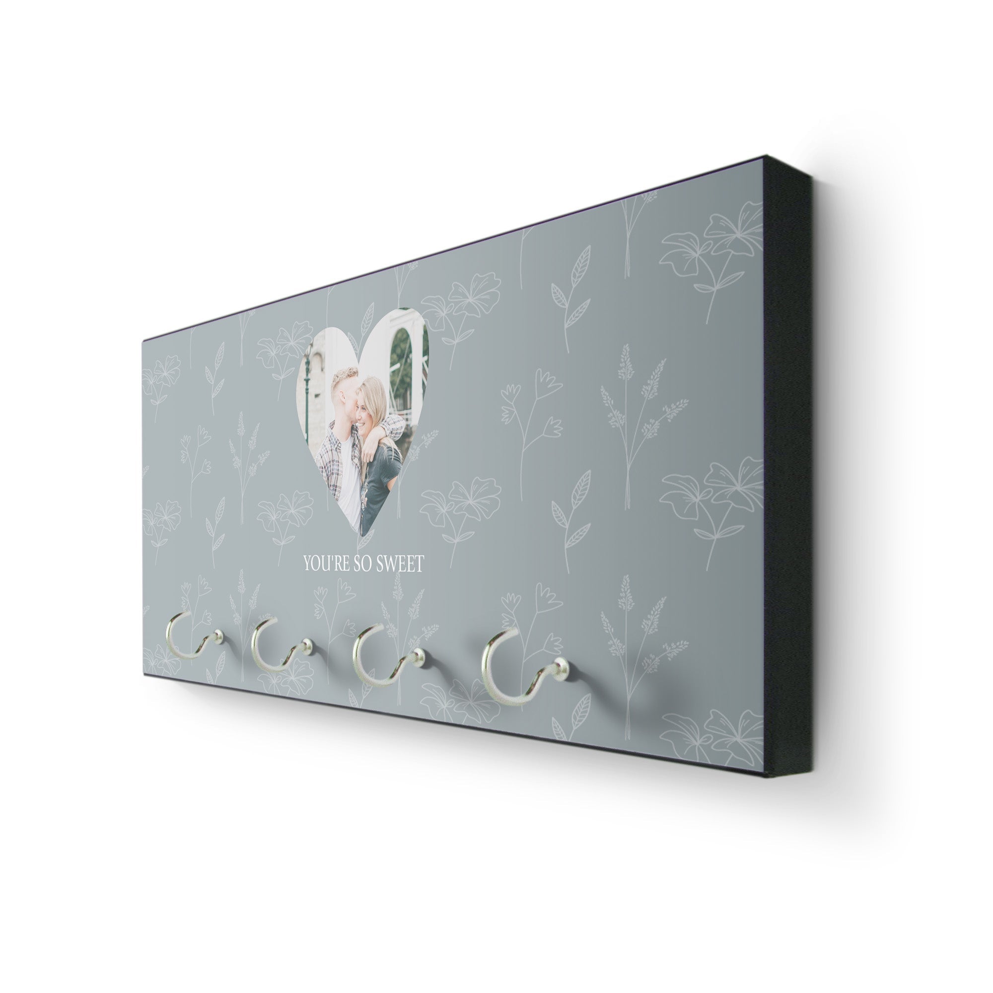 Ulteriori informazioni sul portachiavi: Materiale: pannello rigido con rivestimento lucido Dimensioni: 28 x 12,5 x 1,5 cm Forma: rettangolo Incluso: 4 ganci chiave Personalizzazione: stampa lucida con foto e testo nella parte anteriore