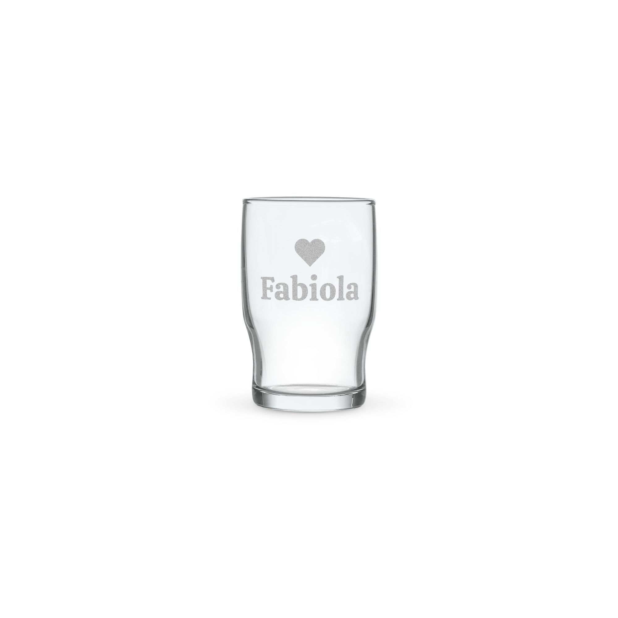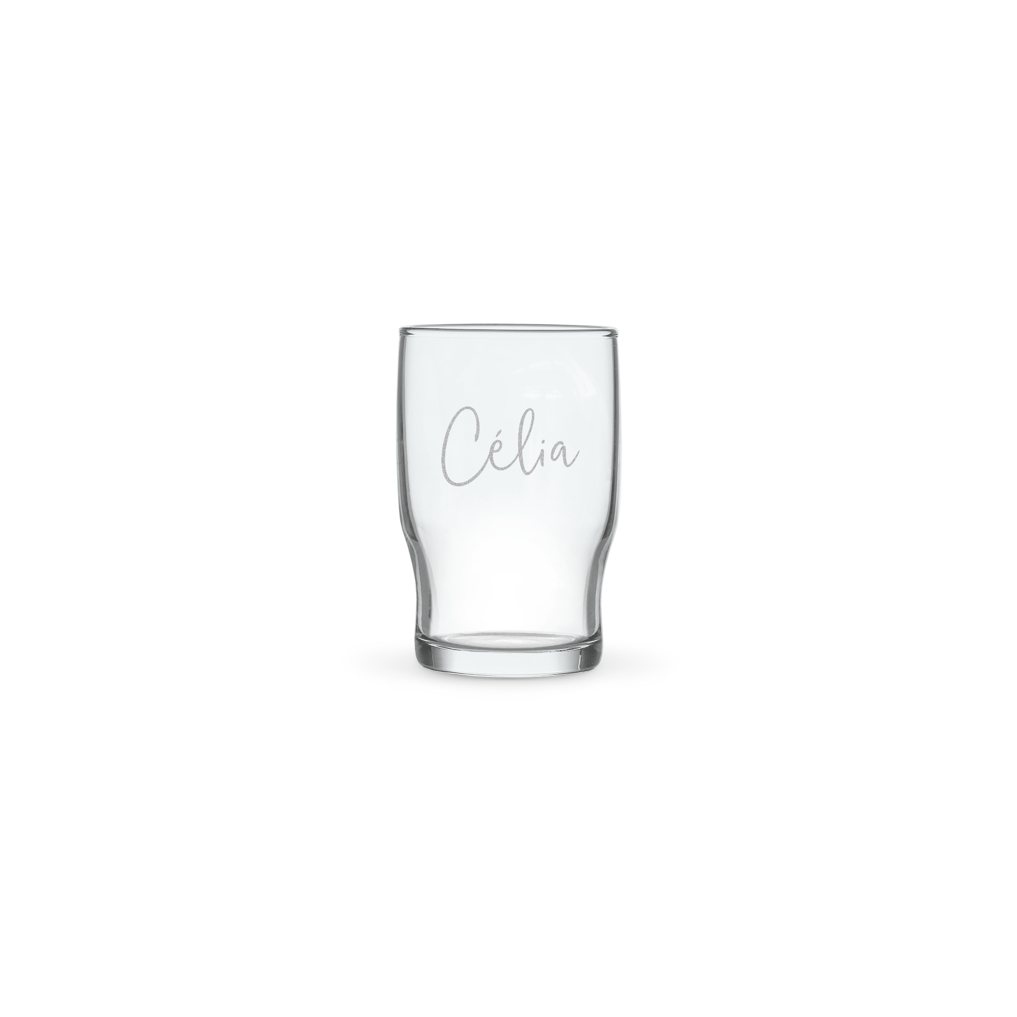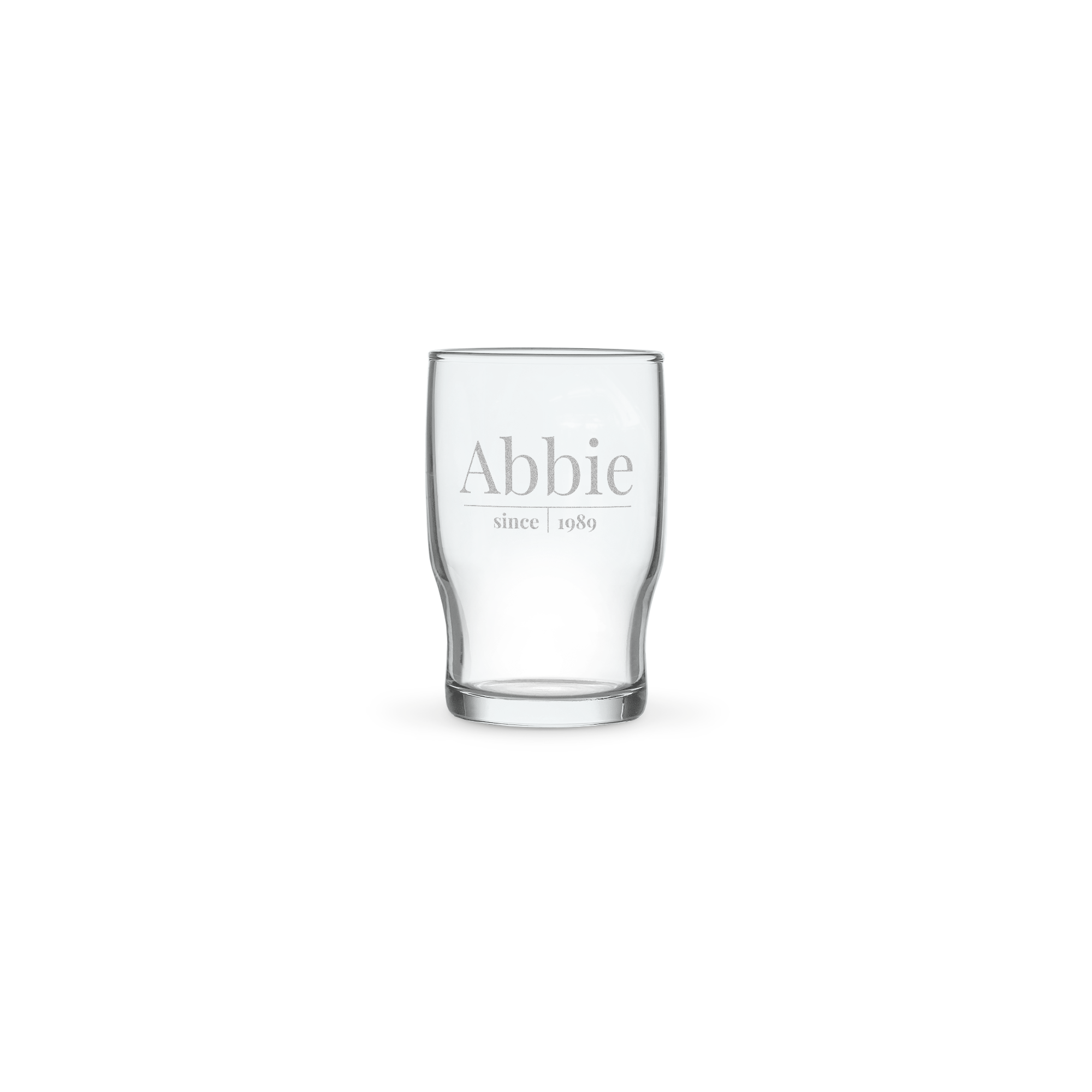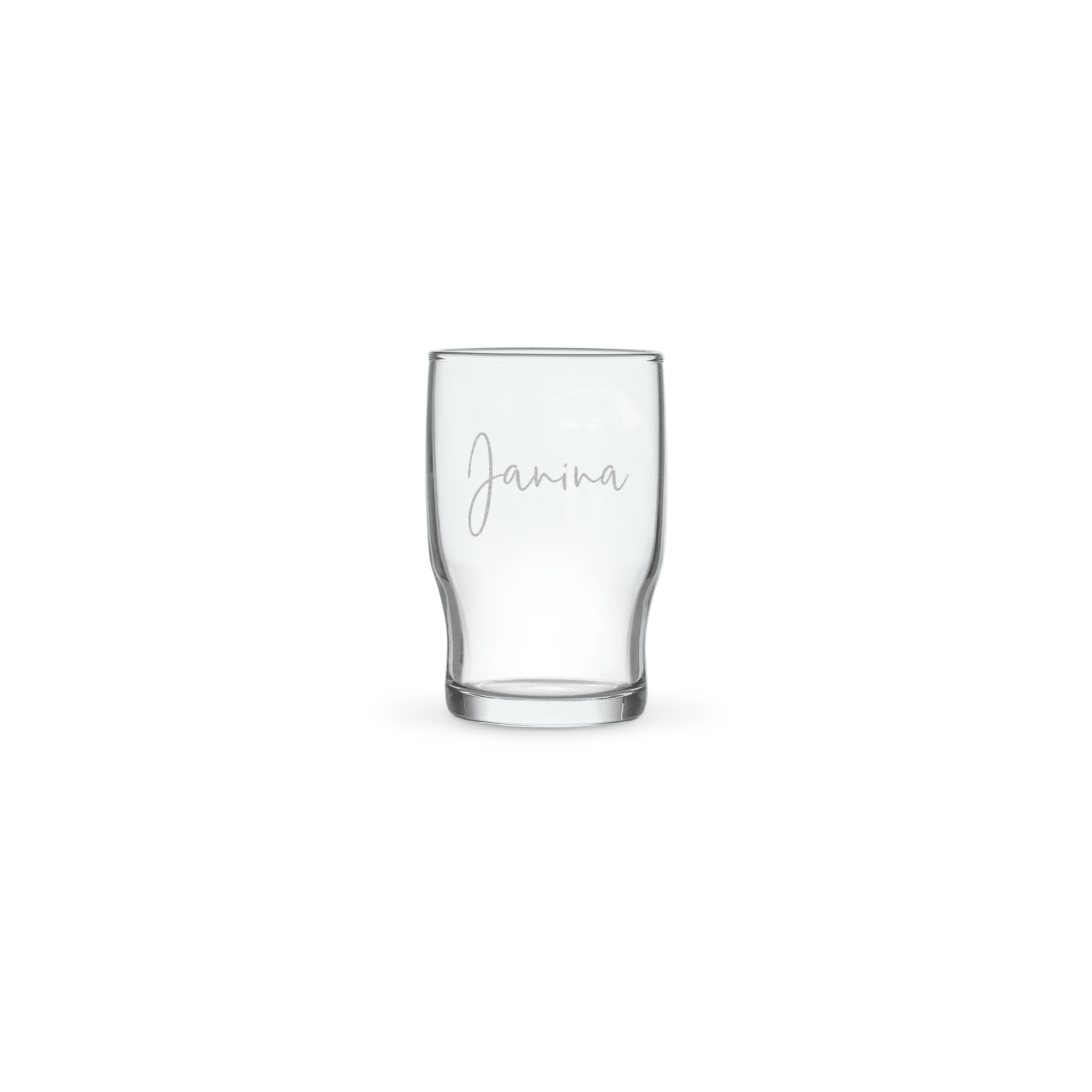 Maggiori informazioni: Diametro: 6,3 cm Altezza: 9,5 cm Contenuto: 22cl Incisione: nome o testo; bianca (il risultato finale potrebbe essere differente dal'immagine mostrata)Lavorazione: incisione a laser di alta qualitàExtra: lavabile in lavastoviglie Vuoi incidere un logo sul bicchiere e ti servono più di 18 bicchieri? Contatta il nostro team b2b!