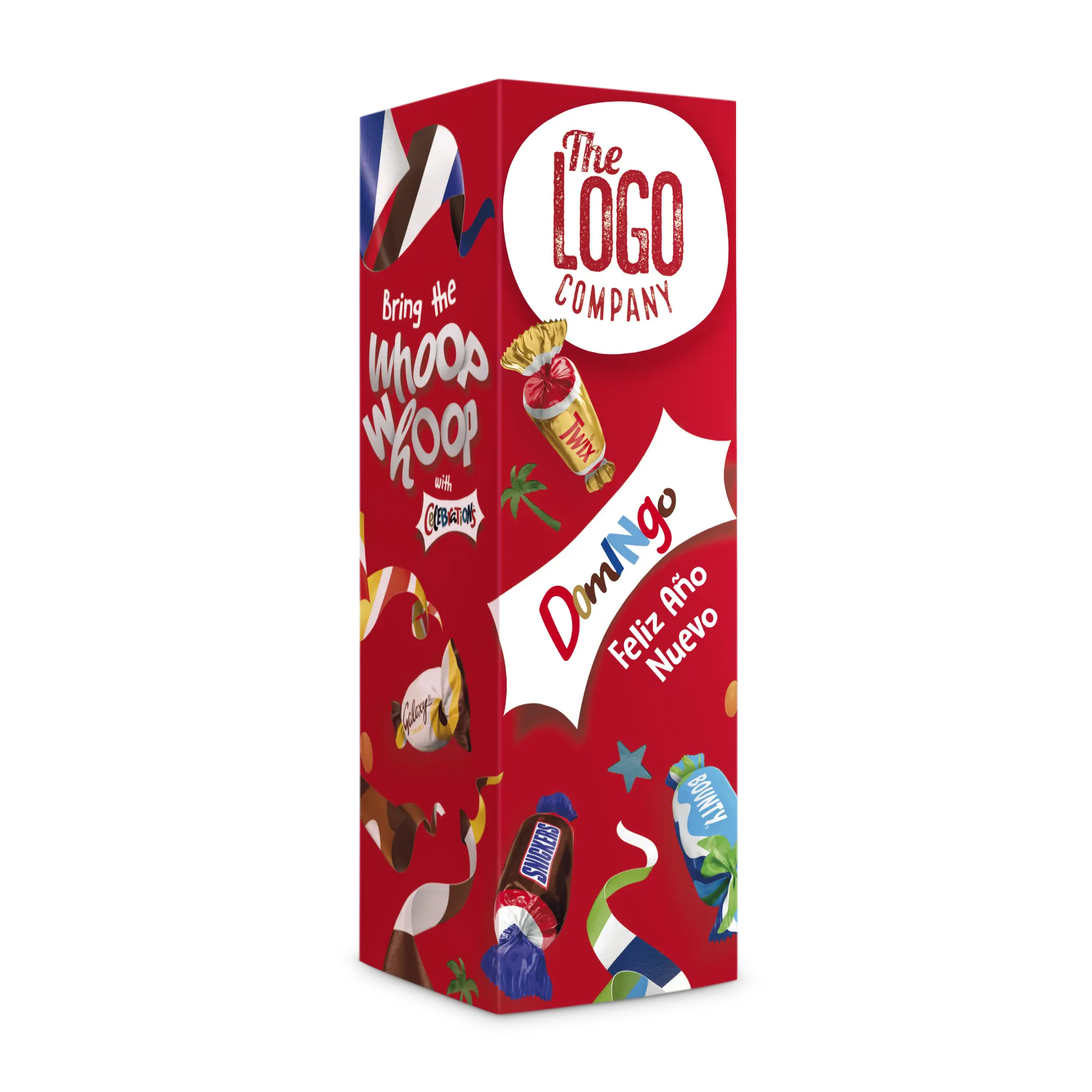 Regala una favolosa bottiglia con un assortimento di cioccolatini e personalizza la confezione regalo: crea il tuo design!Ulteriori informazioni sulla bottiglia Celebrations:Contenuto: assortimento di cioccolatini con ripieno di cioccolato al latte, biscotto al cioccolatoPeso: 296 grammiDimensioni della bottiglia: 28,3 x 9,2 cmDimensioni della confezione regalo: 30 x 9,7 cmPersonalizzazione: nome e tema sul manicotto, che viene posizionato intorno alla scatolaStampa a colori di alta qualitàInformazioni aggiuntive: lo stato del prodotto non è garantito a temperature superiori a 25 gradi.Il carattere non può essere modificatoIngredienti: zucchero, sciroppo di glucosio, burro di cacao, LATTE scremato in polvere, pasta di cacao, grasso di burro (da LATTE), LATTOSIO, grasso di palma, NOCCIOLE, cocco, siero di latte in polvere (LATTE), FARINA DI GRANO, olio di girasole, LATTE INTERO in polvere, emulsionanti (LECITINA DI SOIA, E471), ESTRATTO DI BIRRA, cacao magro, sale, umettante (glicerolo), POLVERE DI PROTEINE D'UOVO, estratto naturale di vaniglia, agenti lievitanti (E341, E500, E501), PROTEINE DEL LATTE, GLUTINE DI GRANO. (Può contenere: NOCCIOLE, MANDORLE, AVENA). Almeno il 25% di cacao.Informazioni sugli allergeni: contiene arachidi, soia, cereali contenenti glutine, orzo, frumento, uova, latte, lattosioPuò contenere: frutta a guscio, mandorle, nocciole, avenaPer motivi tecnici, è possibile utilizzare solo lettere e trattini.