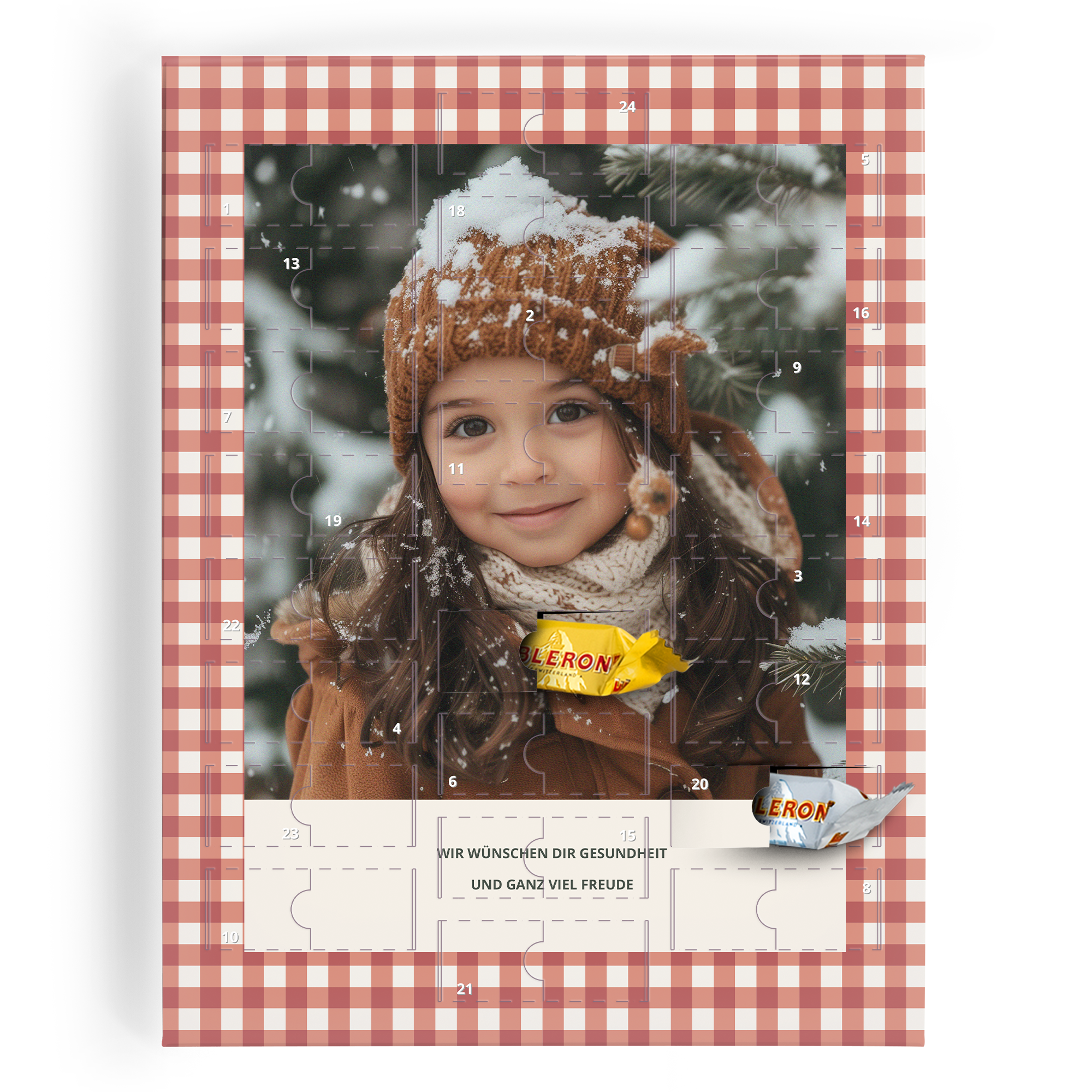 Scopri la magia della stagione festiva con il nostro Calendario dell'Avvento Personalizzato, un modo delizioso per fare il conto alla rovescia fino a Natale. Celebra ogni giorno aprendo una piccola porta per rivelare una dolce sorpresa. Questo calendario dell'avvento è davvero unico, permettendoti di personalizzarlo con le tue foto preferite, portando un tocco di calore personale alla stagione festiva. Ogni porta si apre per rivelare una selezione di cioccolatini di alta qualità, rendendo ogni giorno fino a Natale un trattamento da ricordare. Realizzato con cura, questo calendario dell'avvento è progettato per essere una parte preziosa delle tue tradizioni festive. Il calendario presenta materiali di alta qualità e una bella stampa per assicurarsi che si faccia notare nella tua casa. Ideale come regalo o per uso personale, questo calendario dell'avvento è un modo meraviglioso per costruire entusiasmo e creare ricordi duraturi. Aggiungi le tue foto di famiglia preferite, nomi o messaggi festivi per renderlo davvero tuo. Con una perfetta combinazione di divertimento e festività, il nostro Calendario dell'Avvento Personalizzato è sicuro di portare gioia alle tue celebrazioni natalizie.