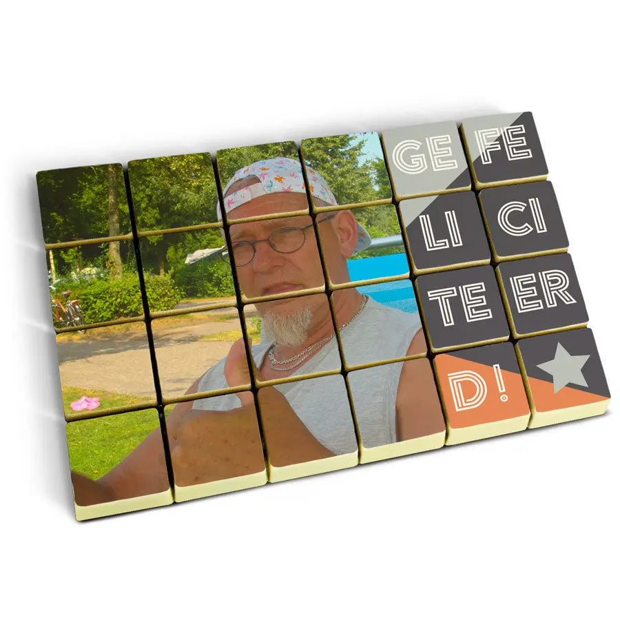 Ulteriori informazioni sulla cioccolata: Quantità: 24 cioccolatini Cioccolato: cioccolato bianco ripieno di soffice pralinato alla nocciolaDimensioni per cioccolato: 2,6 x 2,6 x 1,2 cmDimensioni per set: 16,5 x 11 cm Personalizzazione: stampato con foto e/o logo Stampa: edibile a coloriImportante: Quando la temperatura esterna è pari o superiore ai 25 gradi Celsius non possiamo garantire la qualità del cioccolato.Consigli per la conservazione: Tenere in un luogo fresco e asciutto (temperatura tra 14-18°C). Può durare fino a un massimo di 10 settimaneAllergeni: soia, latte, può contenere tracce di frutta a guscio. Contiene glutine.Attenzione: Un'immagine dai colori troppo chiari potrebbe non avere una buona resa sul prodotto finale.Ingredienti: Praline con ripieno di nocciole con stampa commestibile. Ingredienti: zucchero, nocciole, pasta di cacao, burro di cacao, latte intero in polvere, emulsionante: lecitina di soia, aroma naturale di vaniglia. Impronta: amido di mais, amido modificato: E1422, fecola di patate, acqua, proteine di pollo disidratate, latte scremato in polvere, olio d'oliva, sale, agente umettante E422, emulsionante: E433, coloranti: E102, E110, E122: può influire negativamente sull'attività e sulla concentrazione dei bambini, E133, E151. Rivestimento: E904. Può contenere tracce di frutta a guscio e glutine. Conservare in un luogo fresco e asciutto.