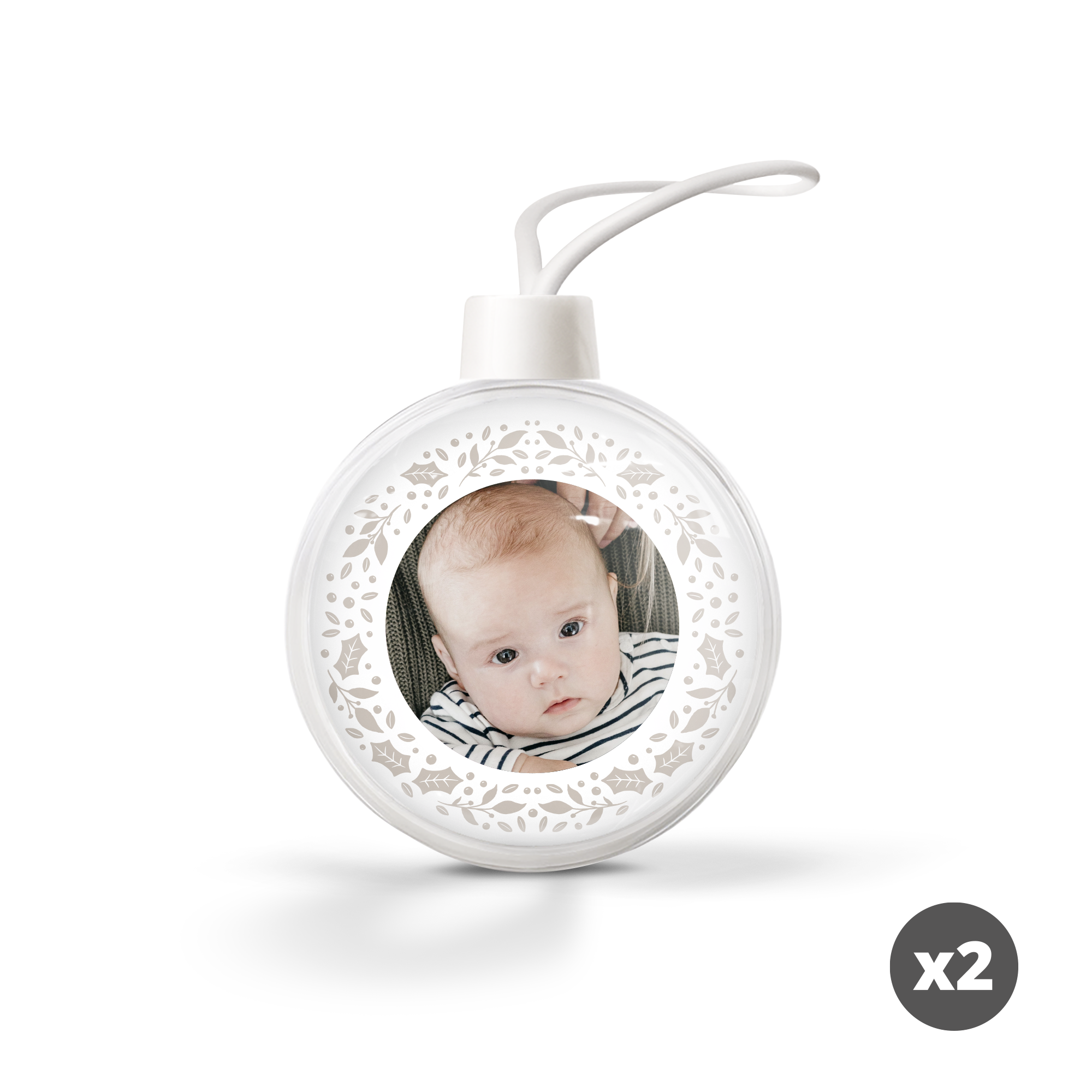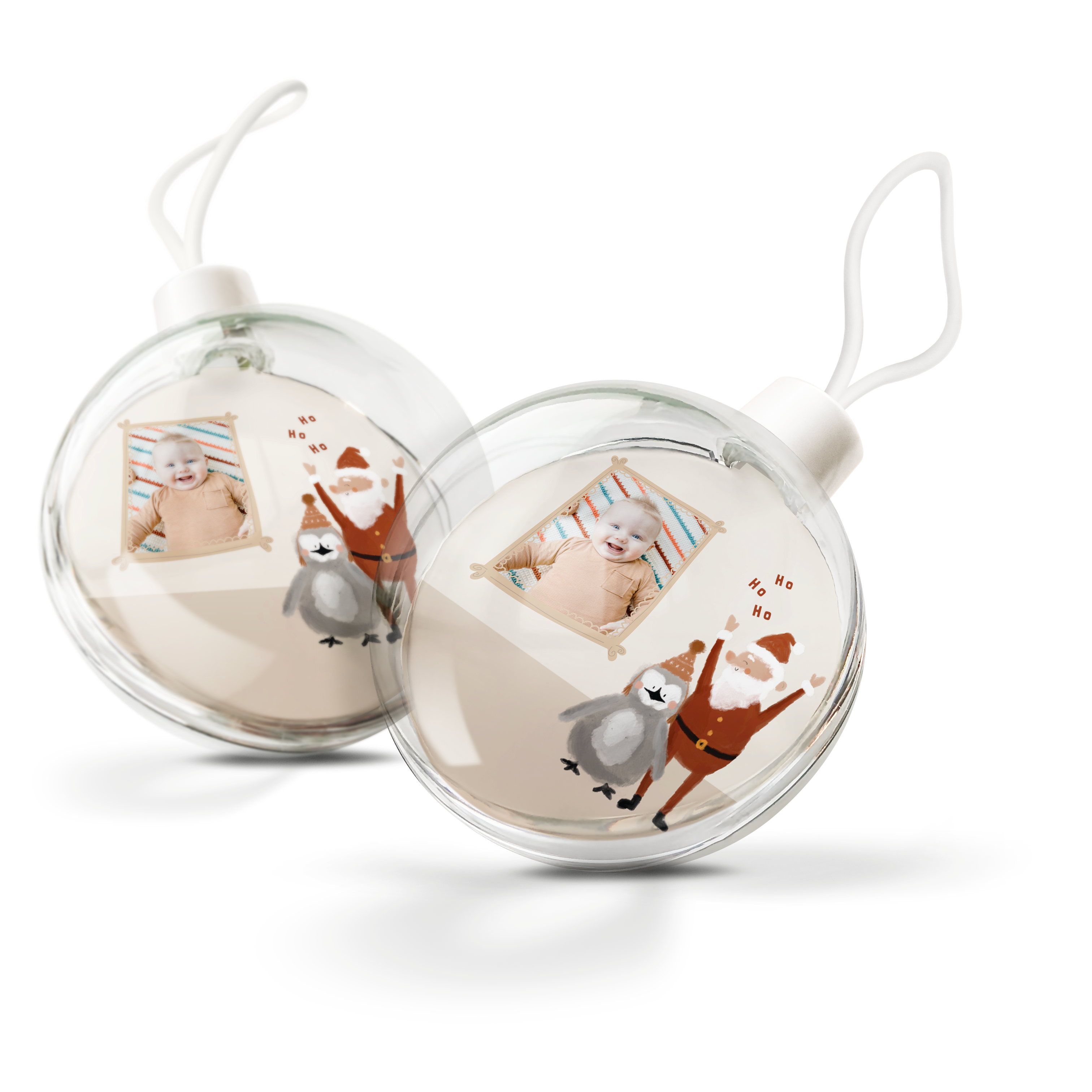 Maggiori informazioni: Numero: 2 pezzi Dimensioni: Ø 8 cm Materiale: plastica di alta qualità Colore: trasparente Personalizzazione: con foto e / o testo Stampa: perfetta per immagini e a colori Posizione: bilaterale all'interno della pallina Extra: le palline possono essere personalizzate separatamente.