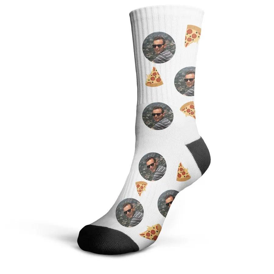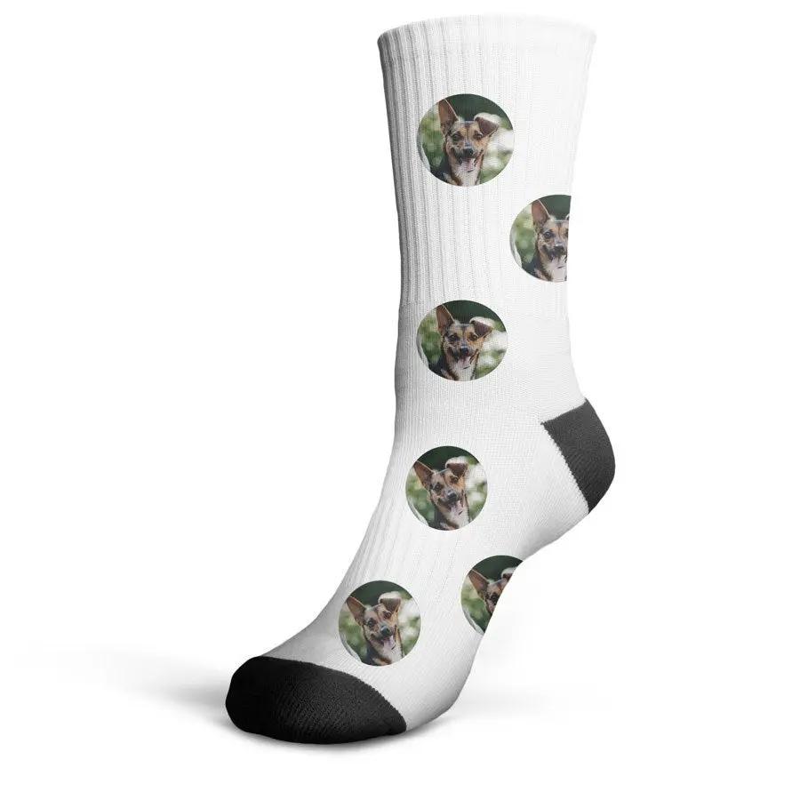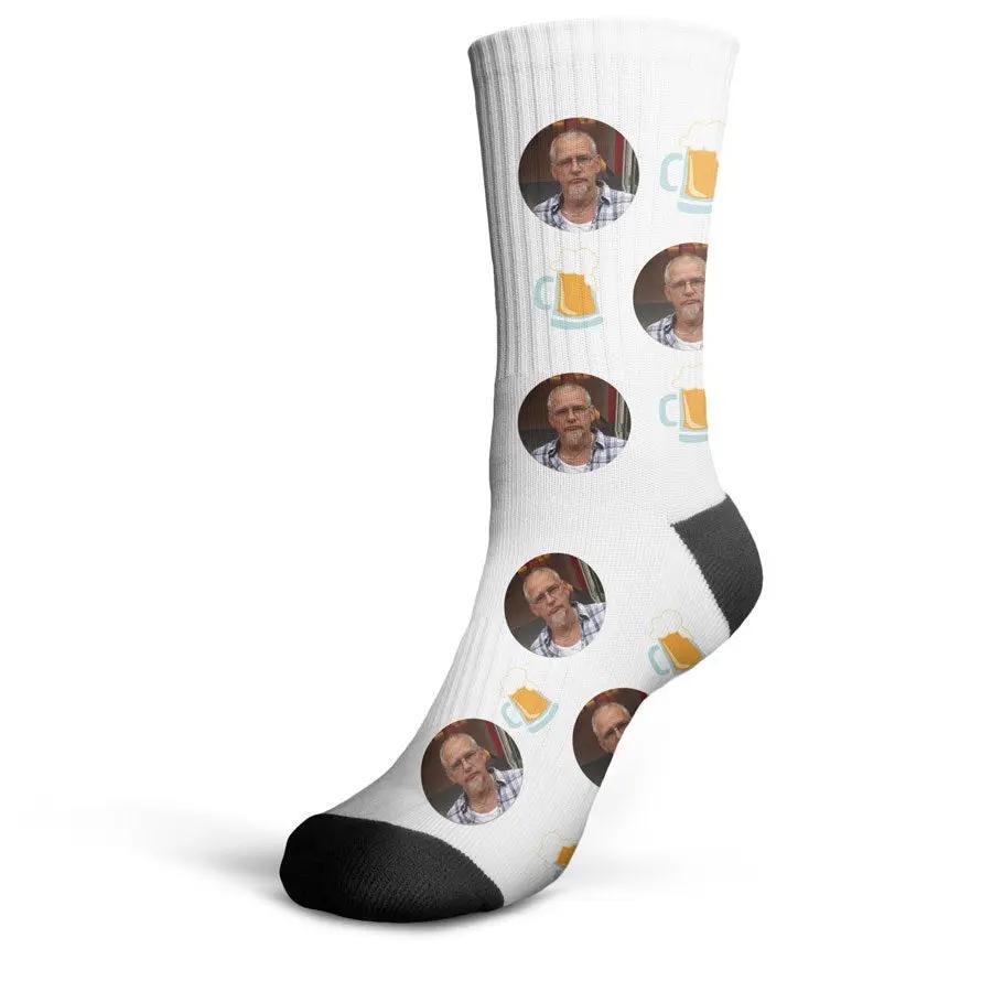 Ulteriori informazioni sui calzini personalizzati: Colore: Bianco Dettagli: Tallone e punta neri Misura: 43-45 (23,5 cm) Materiale: 95% poliestere, 5% acrilico Personalizzazione: con foto o logo Stampa: Nitida e piena di colore su entrambi i calzini Extra: lavabili a 30°C