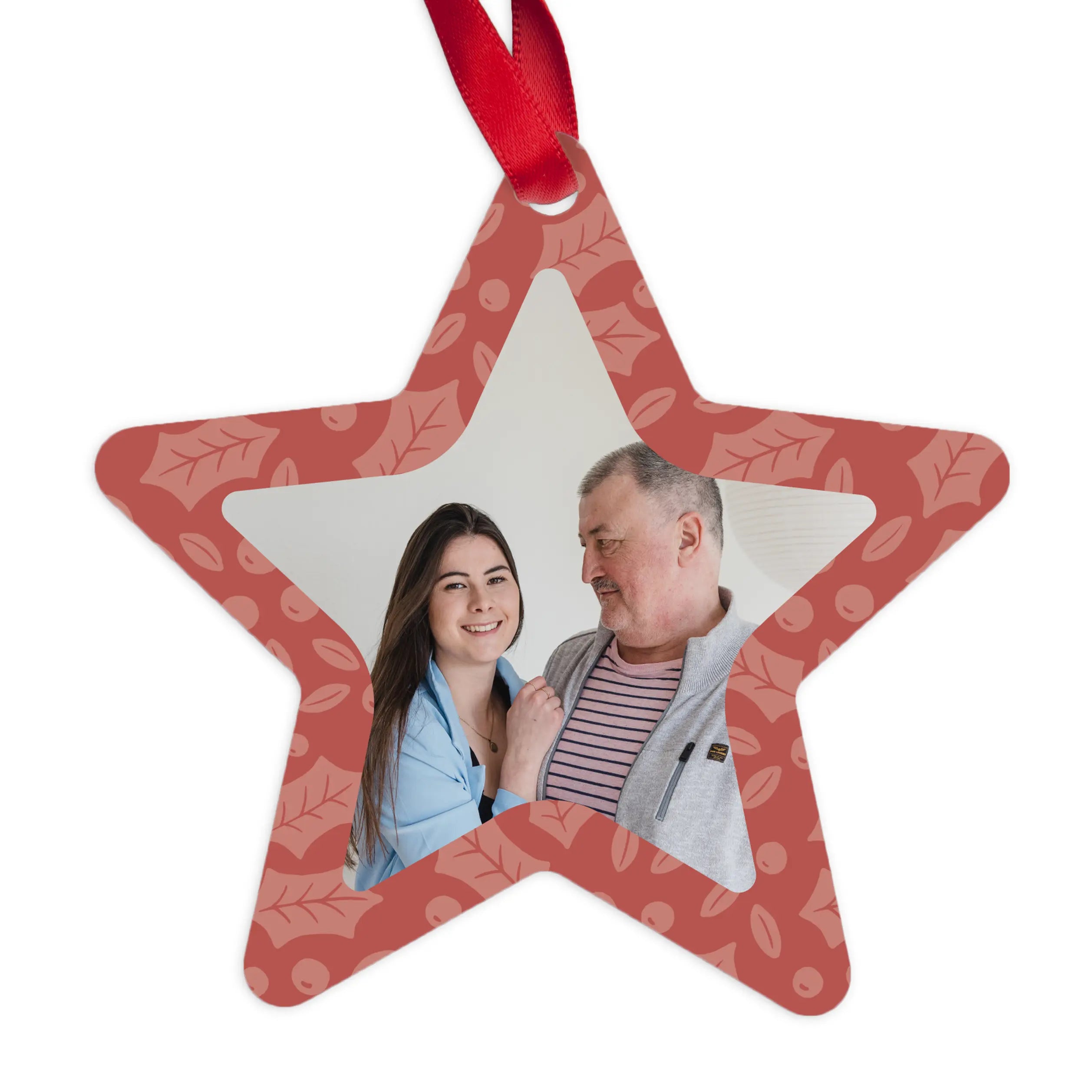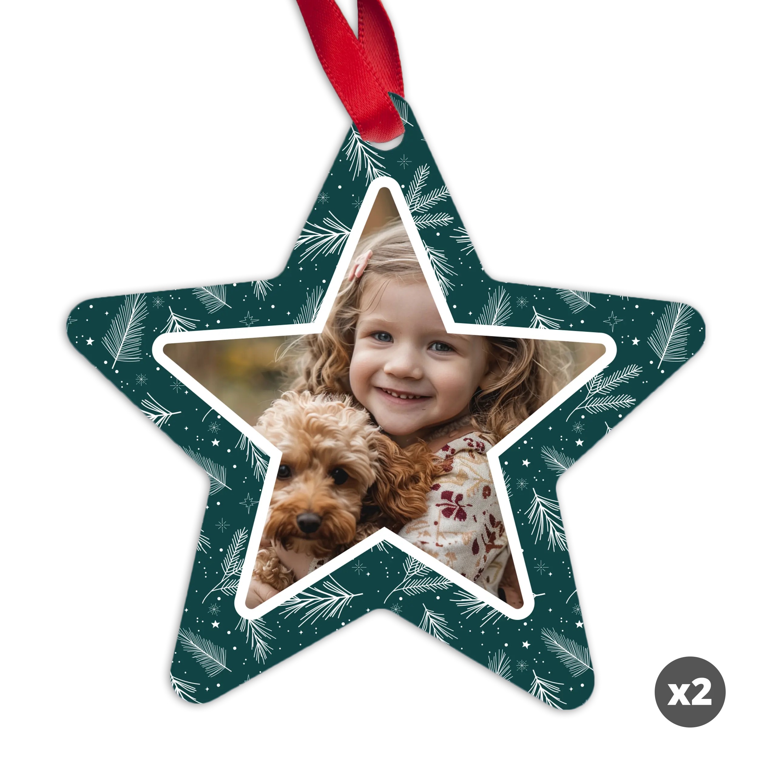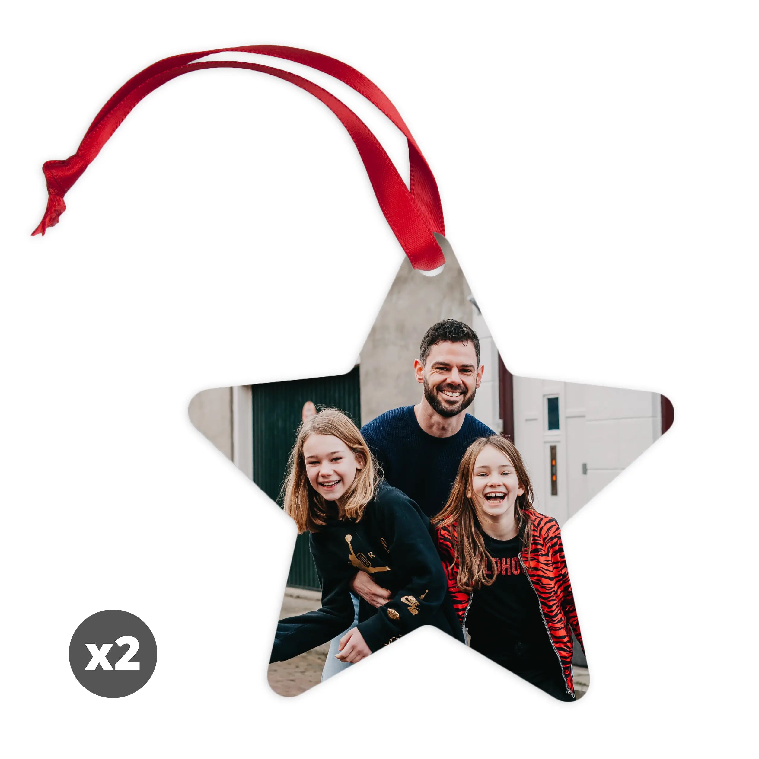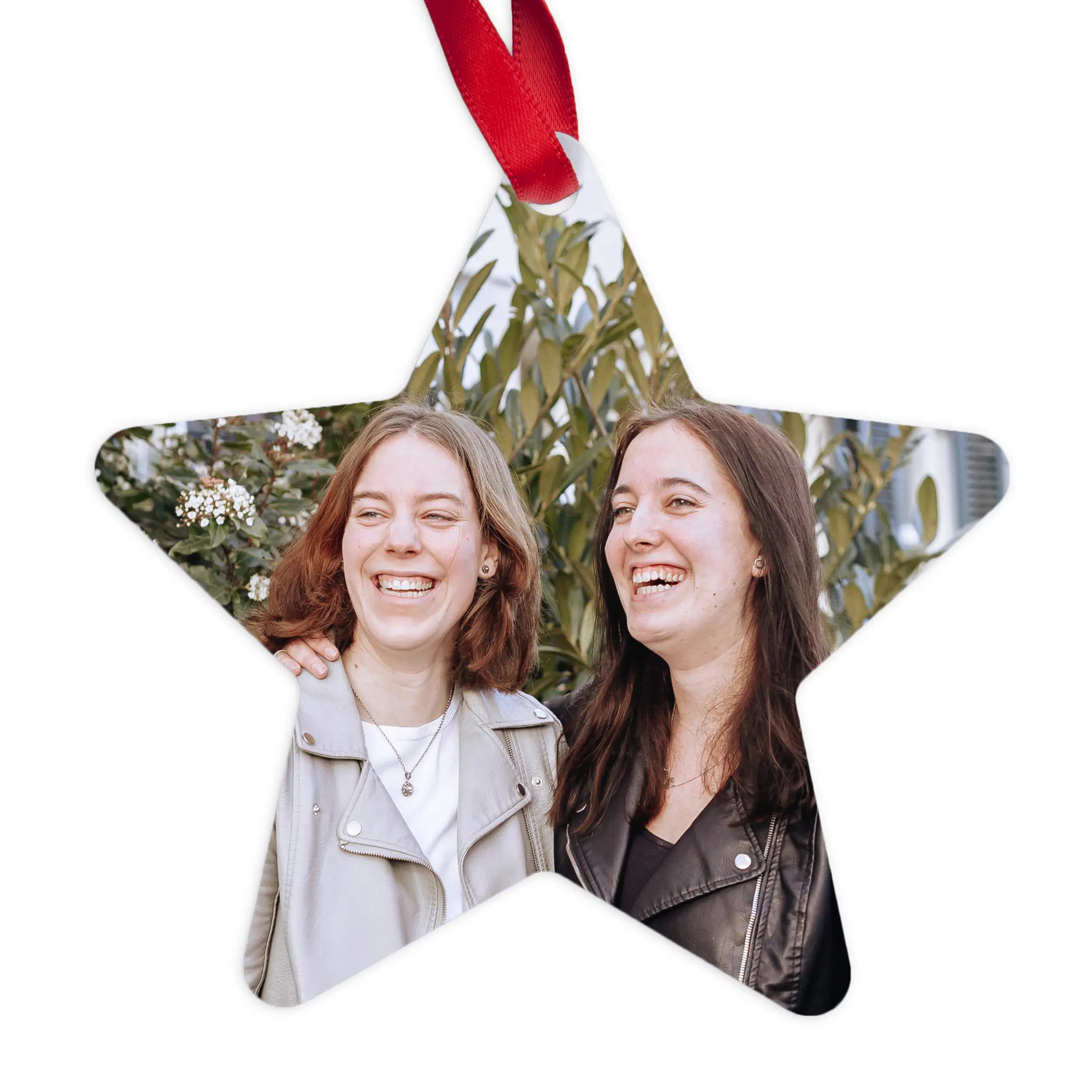 Ordina un appendino natalizio a forma di stella con la tua foto, logo o testo in un design unico. Decorazioni natalizie davvero originali!Maggiori informazioni sull'appendino natalizio: Forma: Stella Altezza: 9 cm Quantità: 2 pezzi Materiale: alluminio Stampa: fronte/retro Visualizza tutti i regali di Natale >