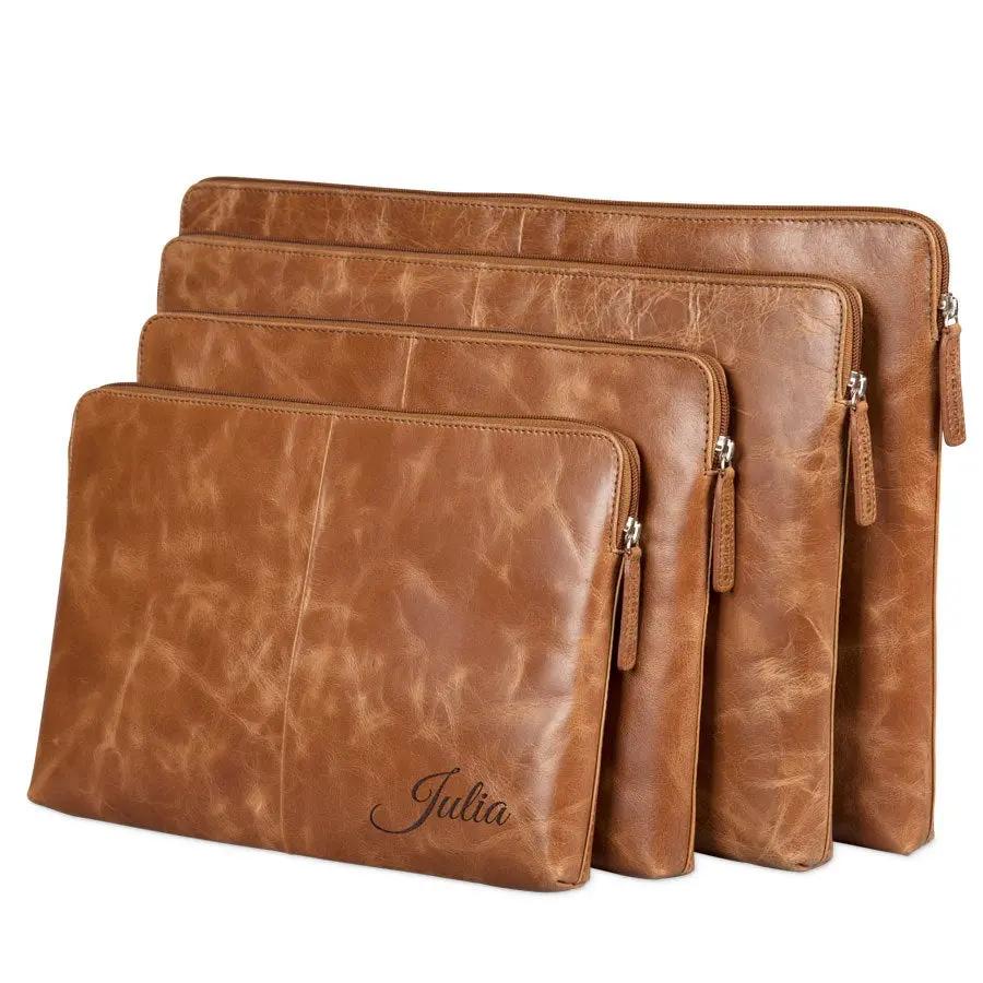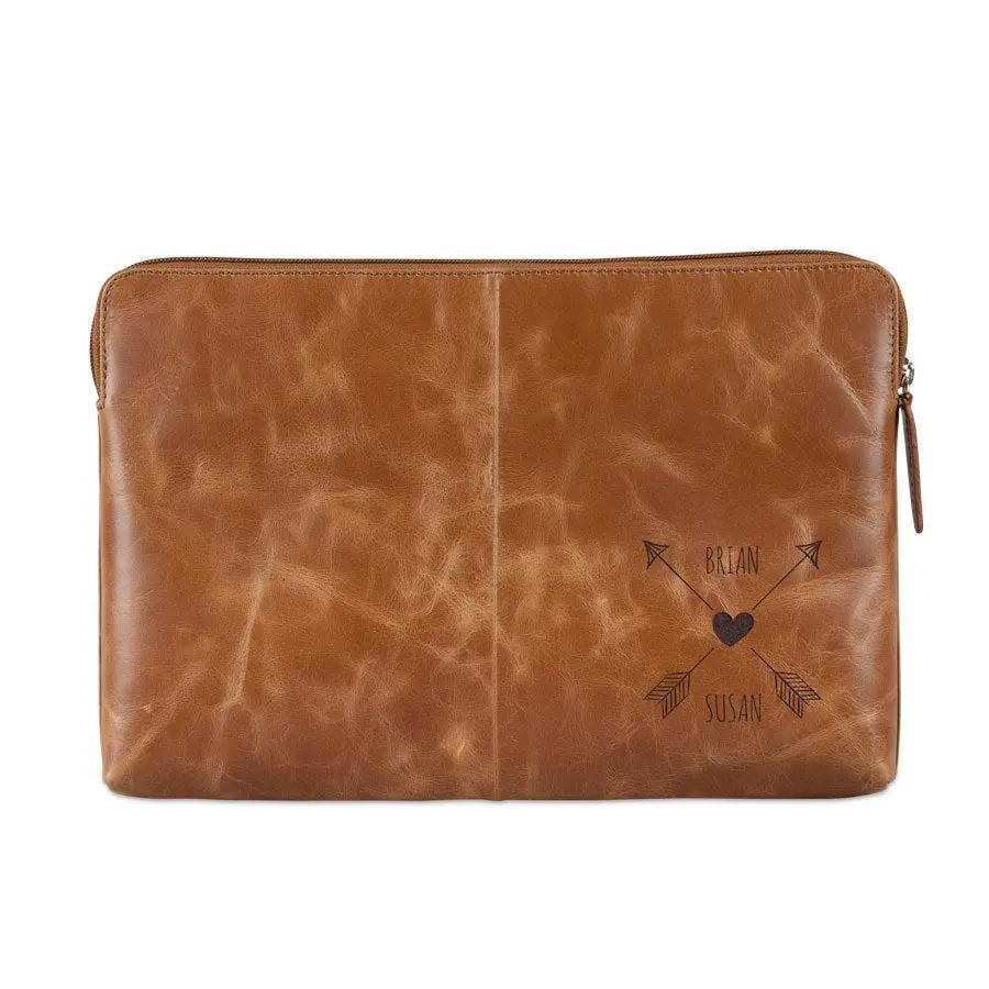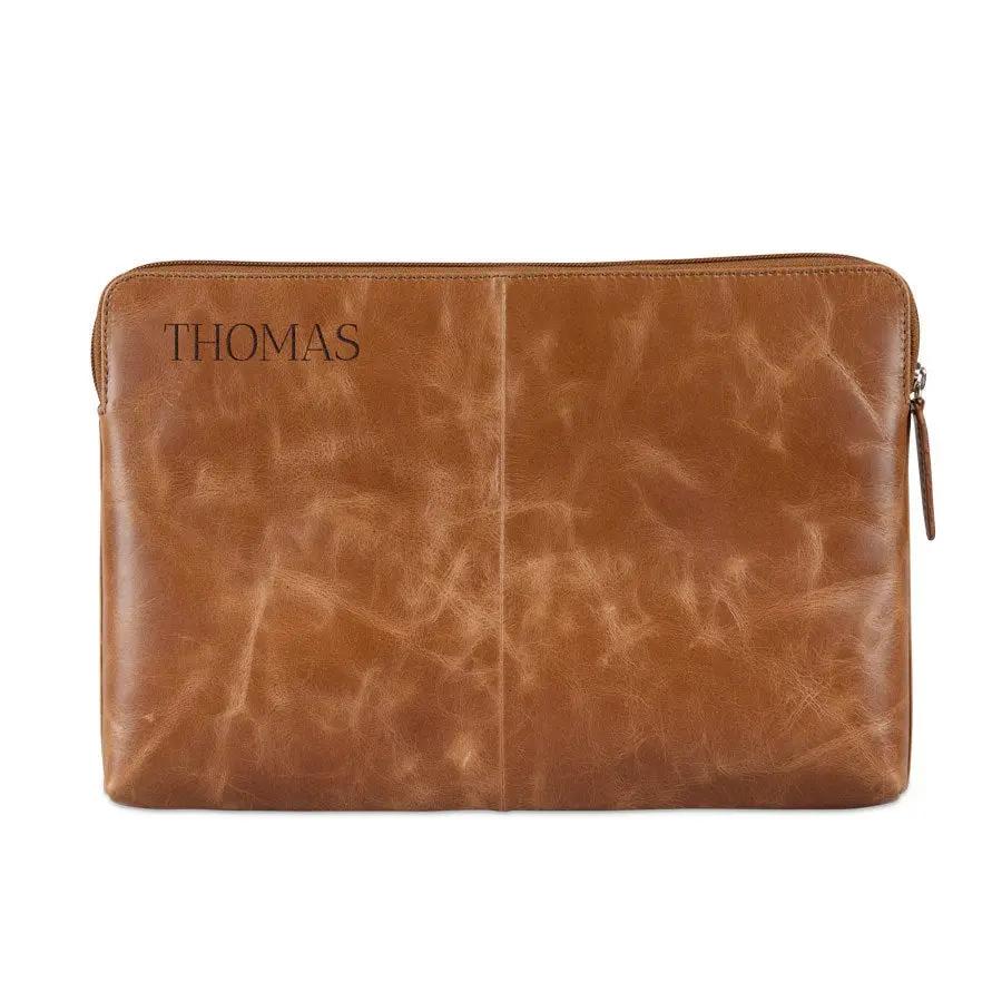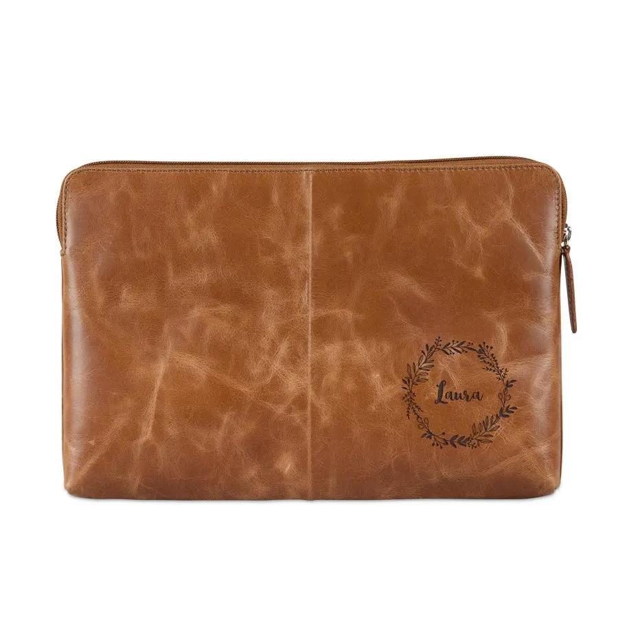 Proteggi il tuo laptop in una lussuosa custodia in pelle per laptop. Unico e personalizzato con il tuo nome o testo in un'incisione di lusso. La pelle di migliore qualità!