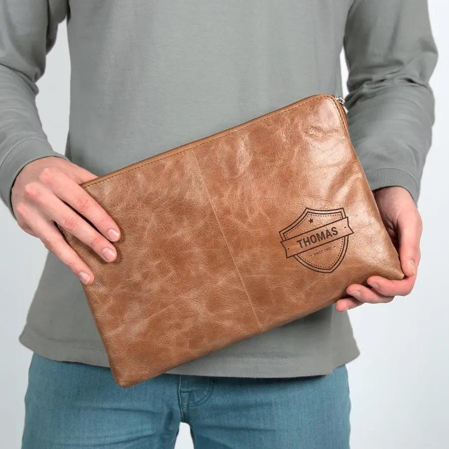 Ulteriori informazioni sulla custodia in pelle per laptop con incisione:Tipo: 11" Dimensioni custodia: 32 x 22 cm Dimensioni massime laptop: 30 x 20 cmMateriale: pelle di bufalo pieno fiore conciata in modo vegetale Finitura: con un morbido strato interno per una protezione extra Colore: marrone (brandy) Finitura: incisione al laser di alta qualità Personalizzazione: con un nome e/o testo Extra: la pelle è un prodotto naturale. Ciò significa che il tuo regalo potrebbe essere leggermente diverso da quello raffigurato nella foto esemplificativa.