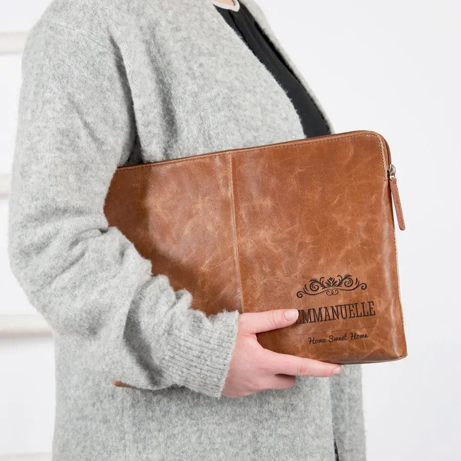 Proteggi il tuo laptop con una custodia di lusso in pelle. Unica e personalizzata con il tuo nome o testo in un'incisione di lusso. Pelle della migliore qualità!Maggiori informazioni sulla custodia in pelle con incisione: