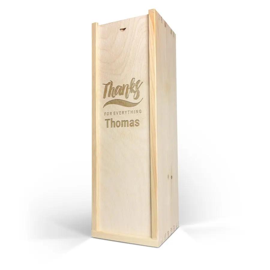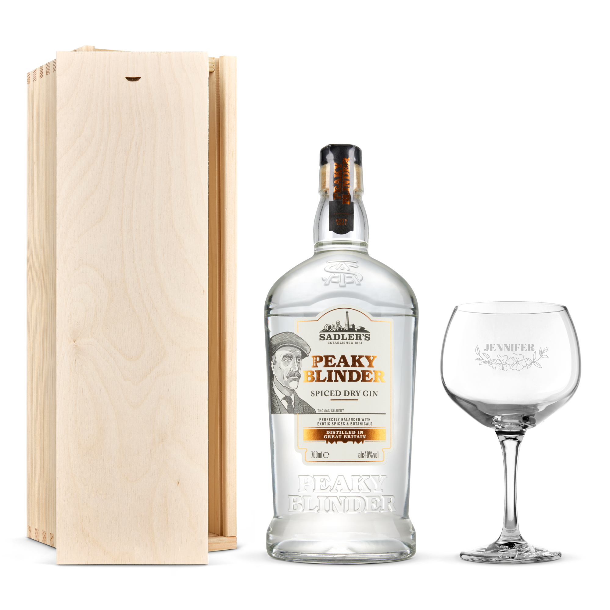 Ulteriori informazioni sulla personalizzazionePersonalizzazione: con nome o testo Metodo di personalizzazione: incisione in vetro di alta qualitàColore dell'incisione: marroneDimensioni della scatola: 36,5 x 12 x 11 cmExtra: la scatola di legno è certificata FSCMaggiori dettagli sul ginNome: Sadler's Peaky BlinderTipo di gin: dry spicedContenuto: 700 mlPaese: Inghilterra Percentuale di alcol: 40% Carattere: Il gin Peaky Blinder è un gin secco con erbe e spezie esotiche, come zenzero, pepe nero e cassia.