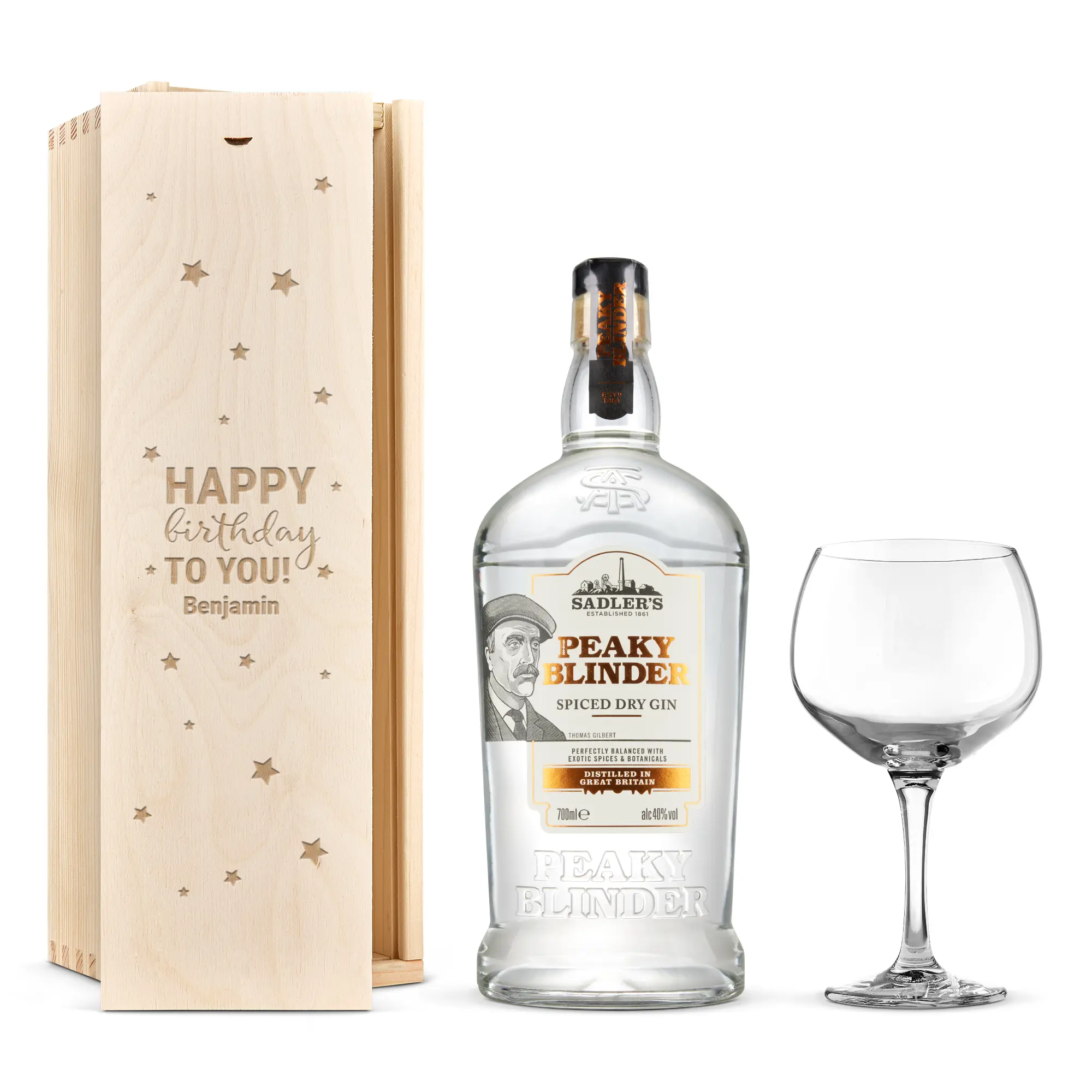 Basato sul popolare programma TV. Chi sorprenderai con un set di gin Peaky Blinders? Inclusi un bicchiere per gin tonic in una custodia incisa.