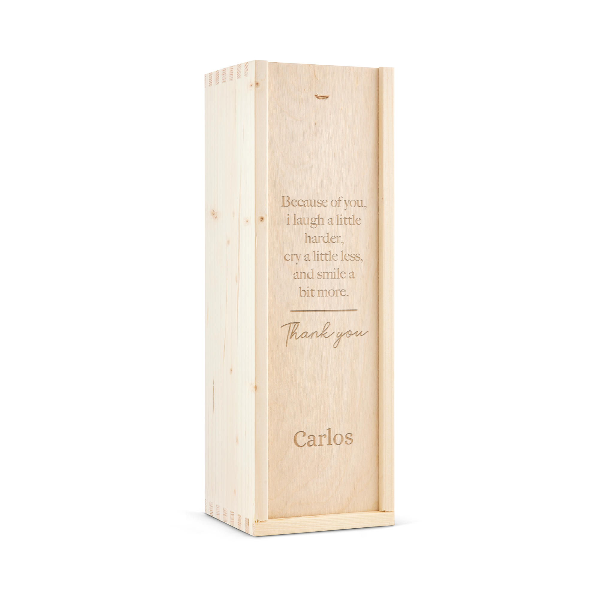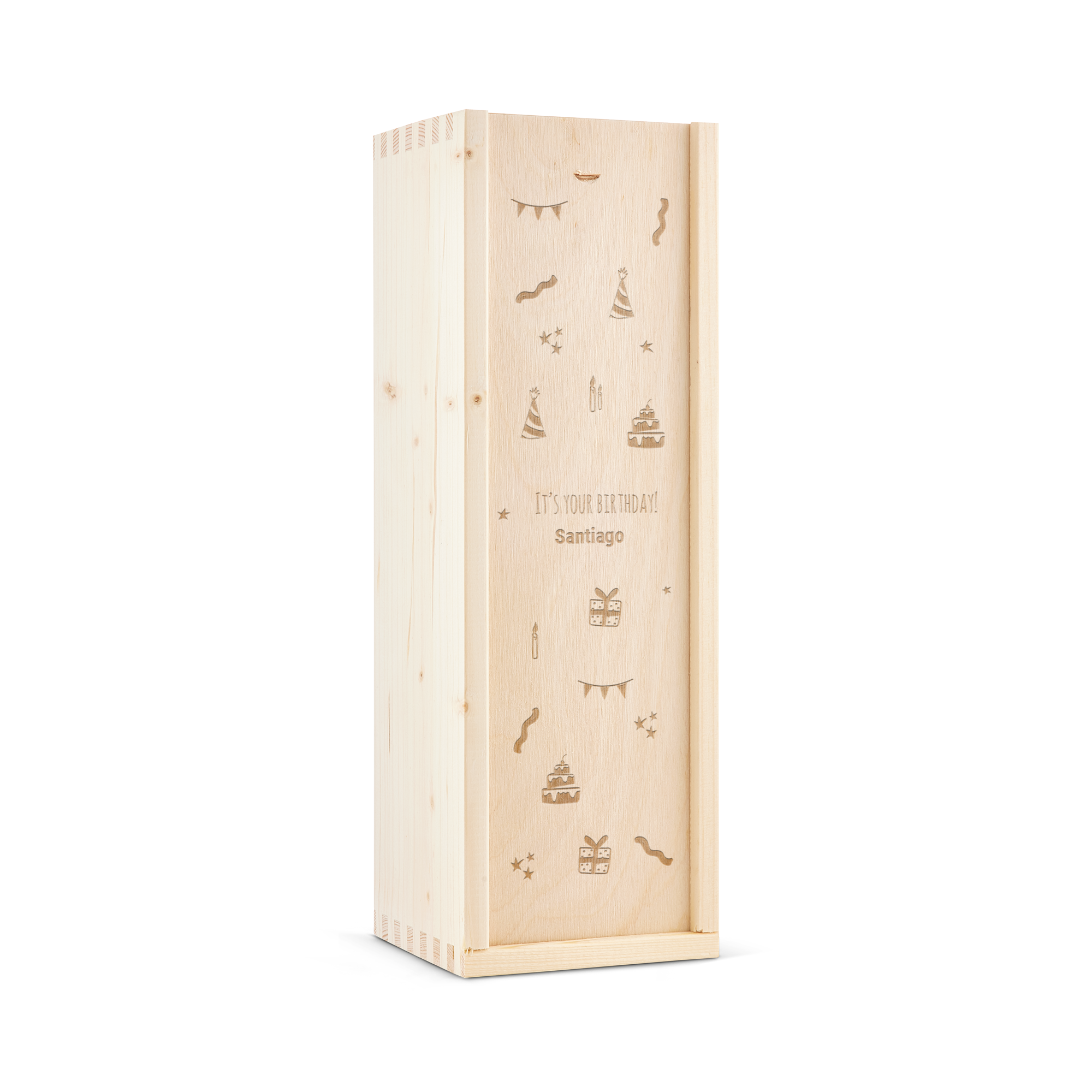 Ulteriori informazioni sulla confezione in legno:Personalizzazione: con nome e/o testoPosizionamento personalizzazione: sul coperchioIncisione: incisione laser di alta qualitàDimensioni della confezione: 42.2 x 13.6 x 13.6 cmDimensioni del coperchio: 41.7 x 12.3 x 0.4 cmLa confezione in legno è realizzata con legno certificato FSC.Ulteriori informazioni sul liquore:Nome: AperolContenuto: 700 ml.Nazione: ItaliaPercentuale alcolica: 11%Carattere: Amaro con un accenno di arancia.