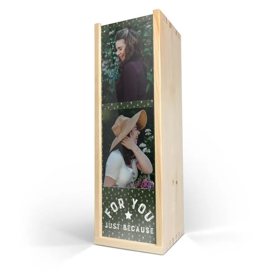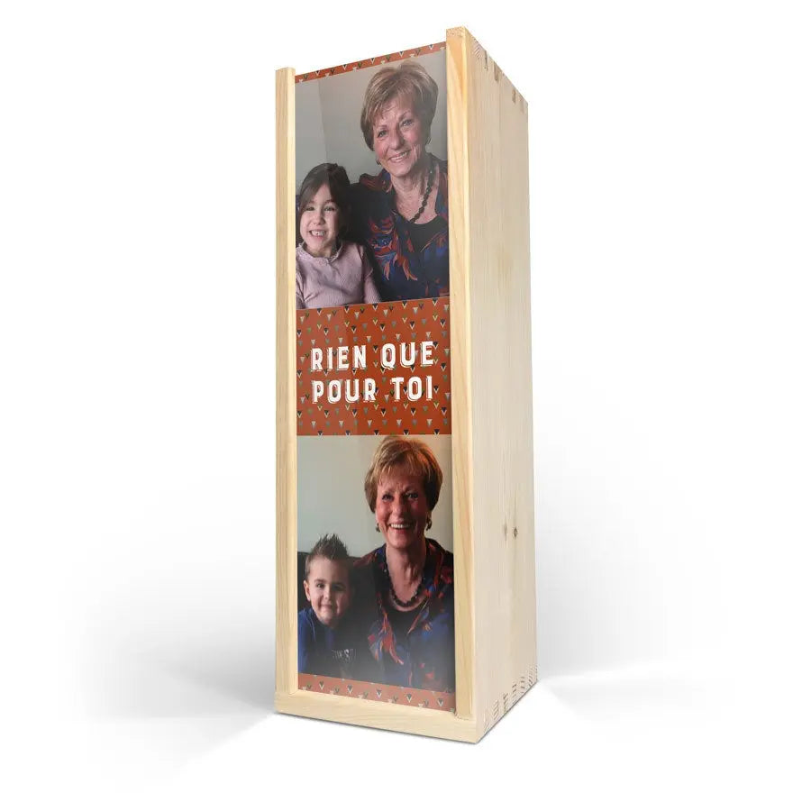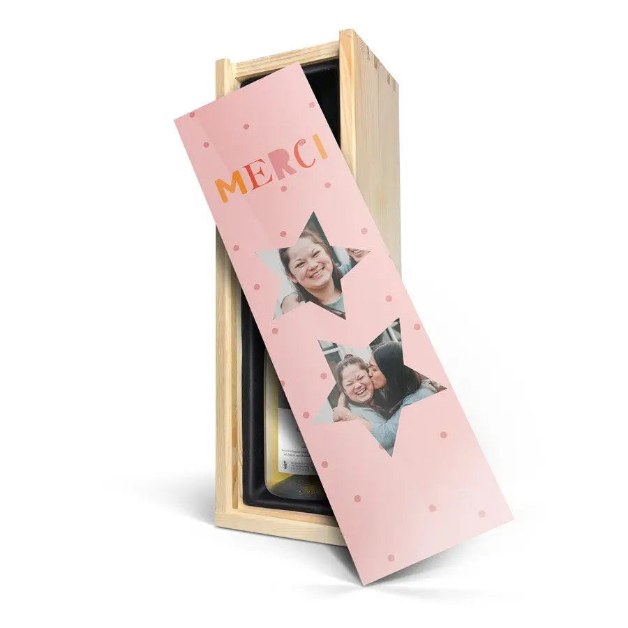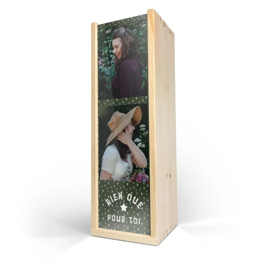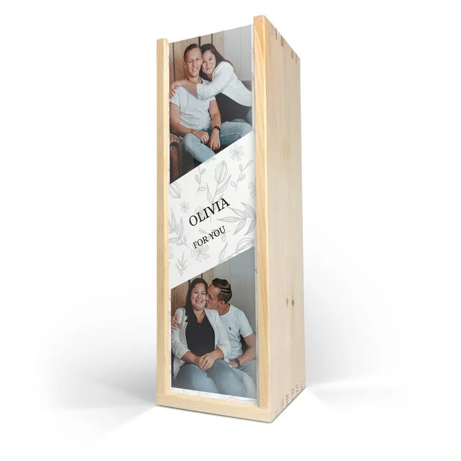 Il vino rosso ideale per tutti gli amanti. Confezione in legno personalizzata con la tua foto o il tuo testo!Nome: Maison de la Surprise Chardonnay Paese: Francia Colore: Bianco Uva: 100% ChardonnayCaratteristiche: Sapore morbido e fruttato. SaporeAromi floreali con note di acacia, gelsomino e agrumi. Ben bilanciato, ha un sapore fresco con un retrogusto fruttato.AbbinamentoQuesto vino è perfetto come aperitivo o per accompagnare piatti a base di pesce e frutti di mare.