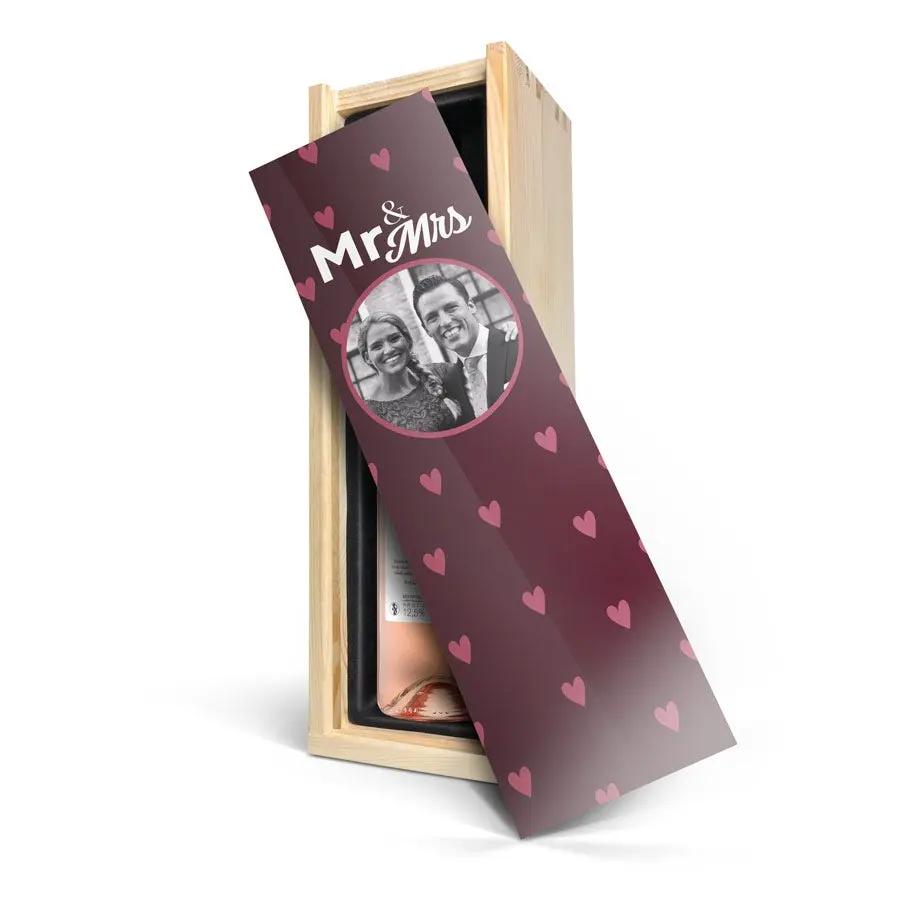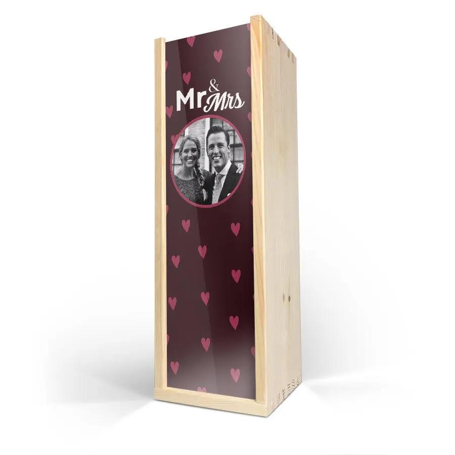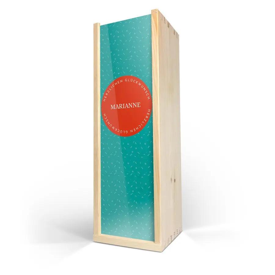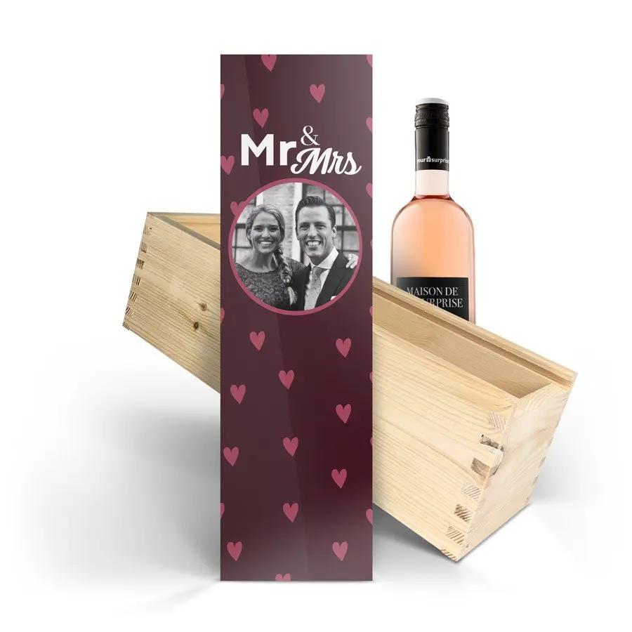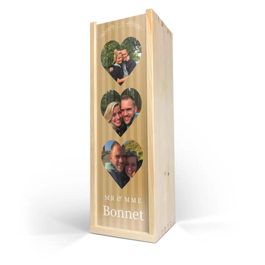 Delizioso vino Maison de la Surprise in un elegante cofanetto di legno con foto, logo e/o testo a tua scelta. Crea il tuo ora!