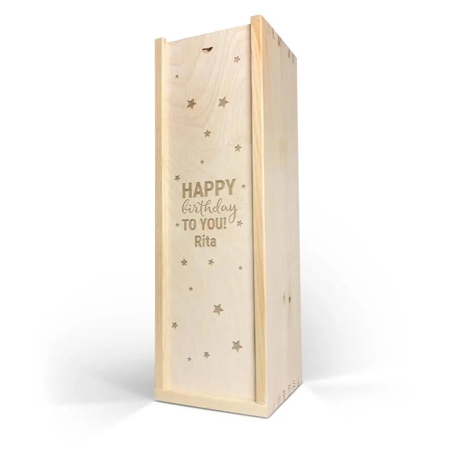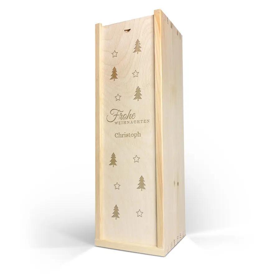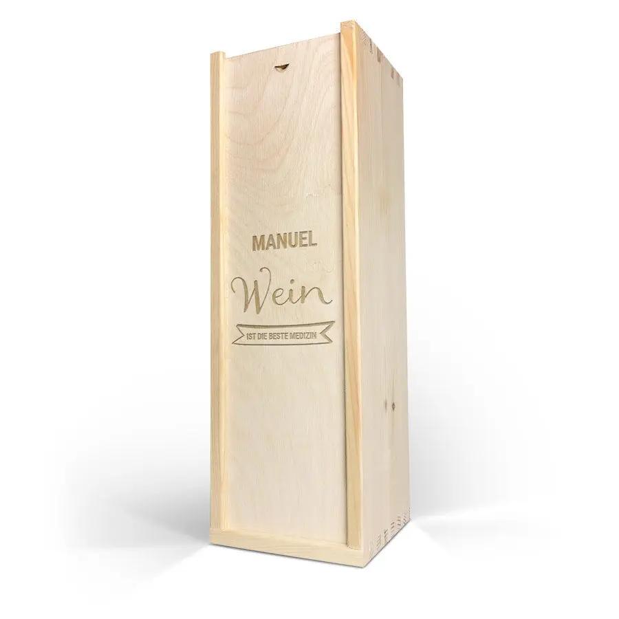 Ulteriori informazioni sulla lussuosa cassa del vino: Personalizzazione: con nome o testo Posizionamento della personalizzazione: sul coperchio della custodia in legno Incisione: incisione laser di alta qualità Dimensioni della cassa: 36,5 x 12 x 11 cm Dimensioni del coperchio: 35,6 x 10,2 x 0,3 cm Il legno è certificato FSC Ulteriori informazioni sul vino: Nome: Maison de la Surprise MerlotPaese: Francia Colore: Rosso Uva: 100% MerlotCaratteristiche: Corposo e bilanciato. SaporeAromi di bacche nere con note di pepe.AbbinamentoQuesto vino è perfetto per carni rosse e formaggi stagionati, ma puà anche essere usato come vino da tutto pasto.