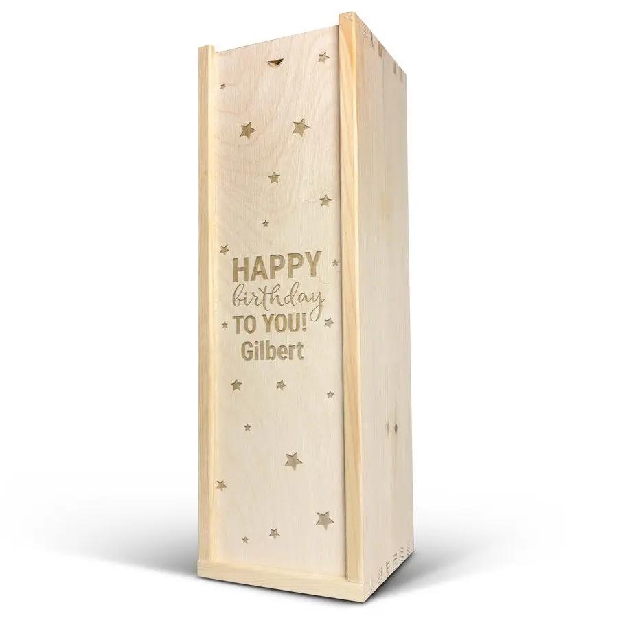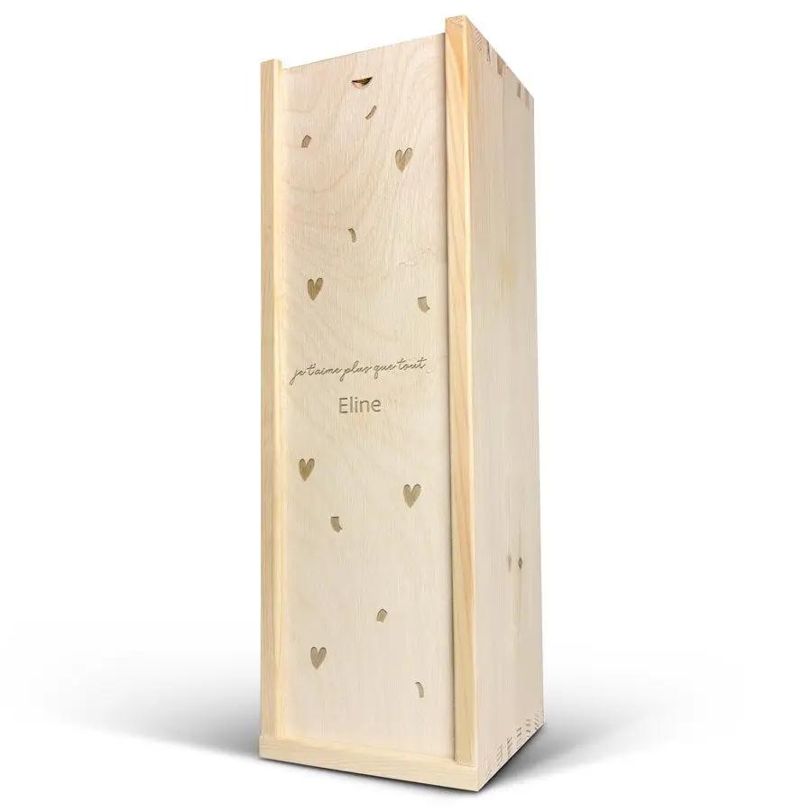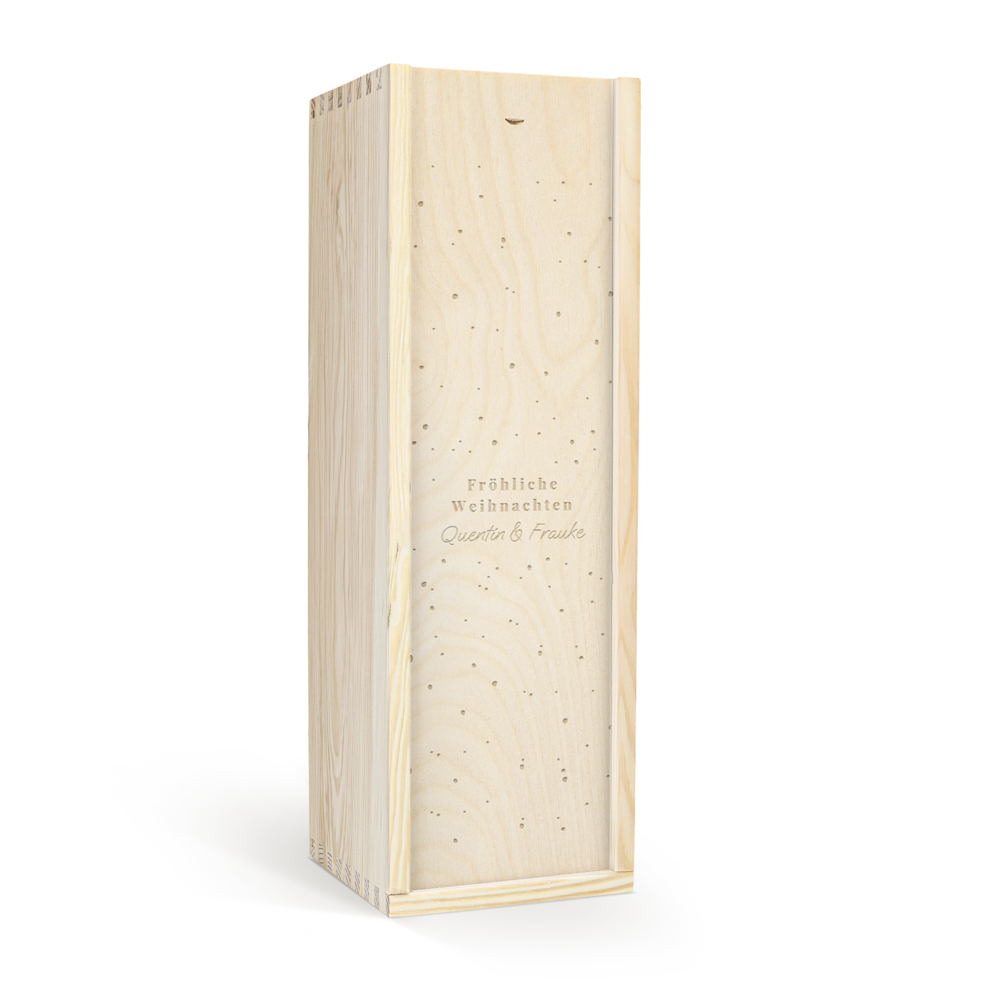 Ulteriori informazioni sulla custodia in legno: Personalizzazione: nome e / o testo Posizionamento della personalizzazione: sul coperchio della custodia in legno Metodo di personalizzazione: incisione Dimensioni della cassa: 42,2 x 13,6 x 13,6 cm Dimensioni del coperchio: 41,7 x 12,3 x 0,4 cm La custodia in legno è realizzata con legno certificato FSC. Ulteriori informazioni sullo spumante: Marchio: Villa Conchi Tipo: cava Contenuto: 1500 ml Paese di origine: Spagna Vitigno: Chardonnay, Macabeo, Parellada, Xarel-lo Carattere: Villa Conchi è fresca e ha deliziose note fruttate. Si abbina bene con insalate, delizioso anche come aperitivo.