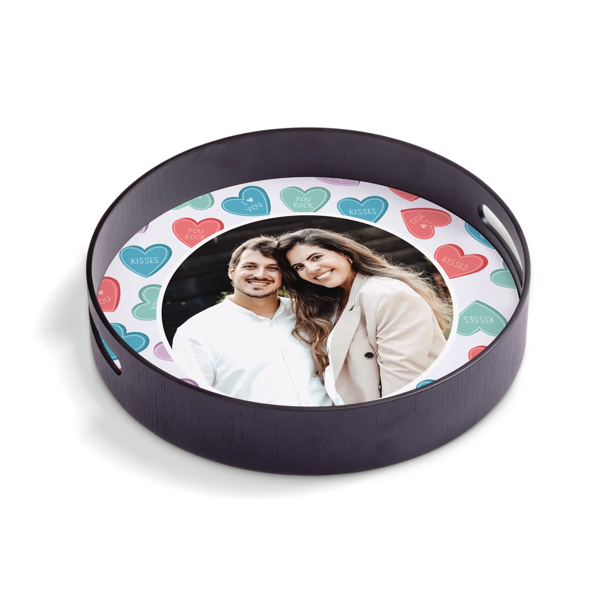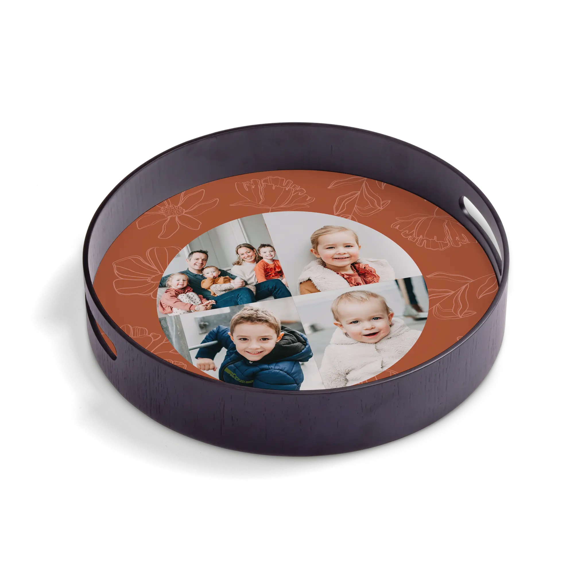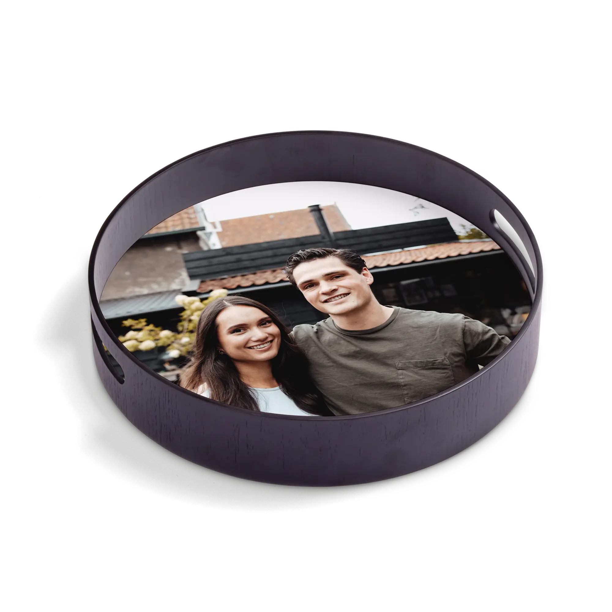 Vassoio rotondo con lussuosa cornice in legno con pannello rigido personalizzato con la tua foto, il tuo nome o il tuo logo ad alta qualità!Maggiori informazioni sul Vassoio Personalizzato:Forma: rotondaColore: nero Materiale: cornice in legno di lusso (pino) con pannello rigido di alta qualitàFinitura: rivestimento lucido di lussoDimensioni: 30 x 30 x 5 cm Personalizzazione: con foto, nome, logo o collage Stampa: nitida e a colori