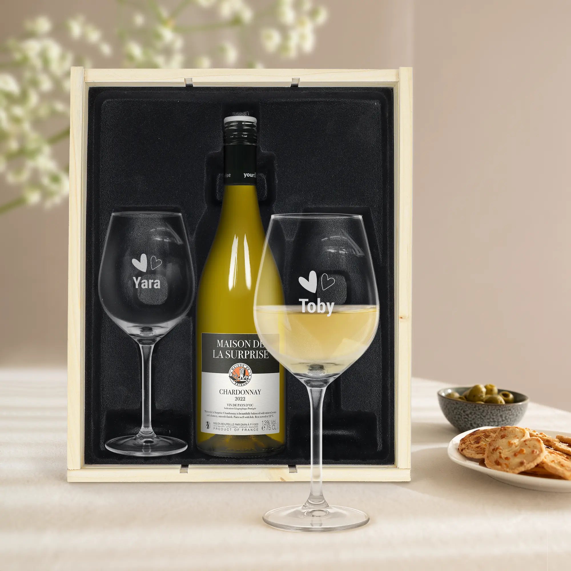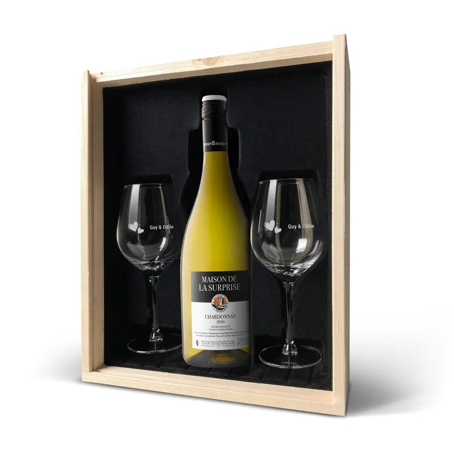 Set regalo vino con bicchieri - Maison de la Surprise Chardonnay - Bicchieri incisi