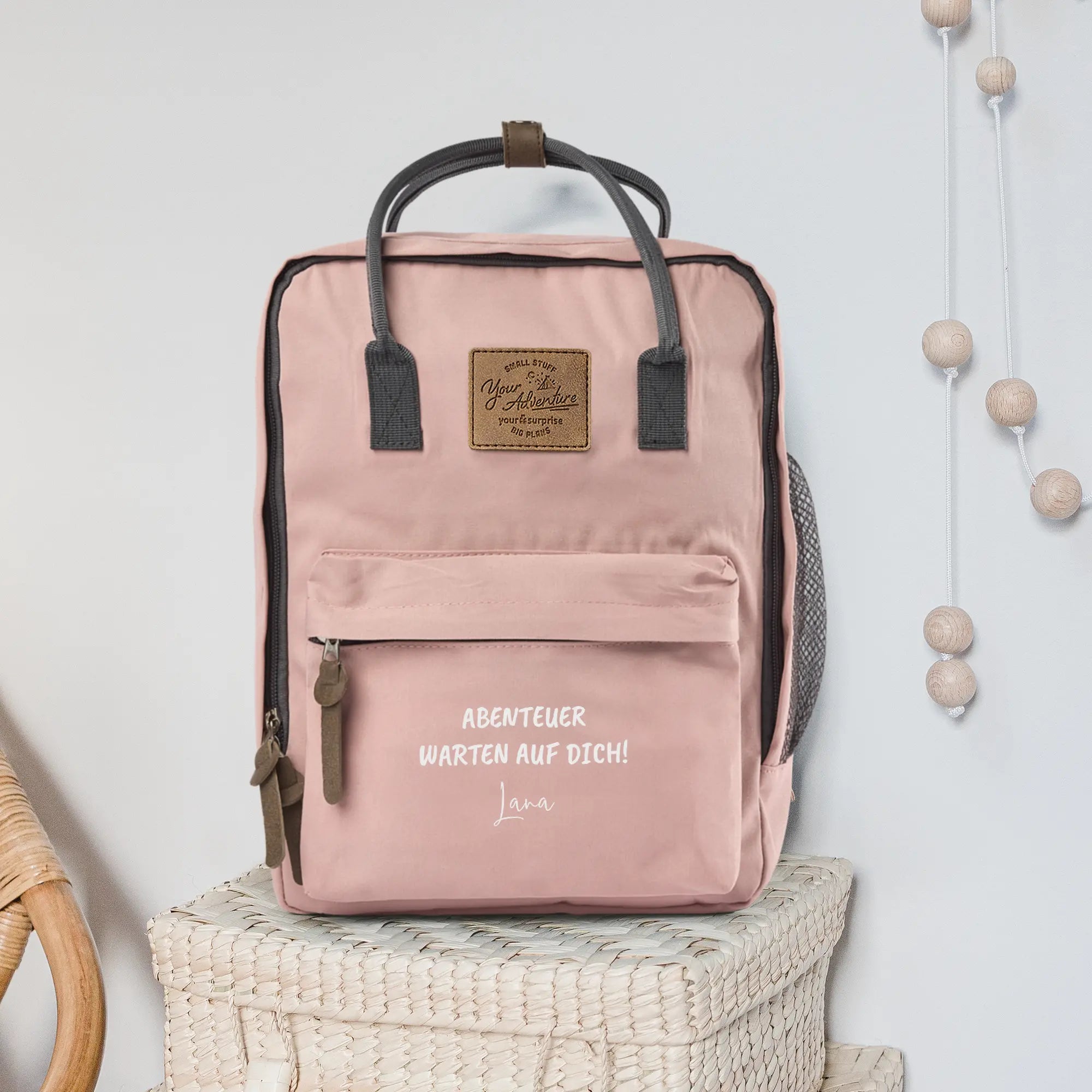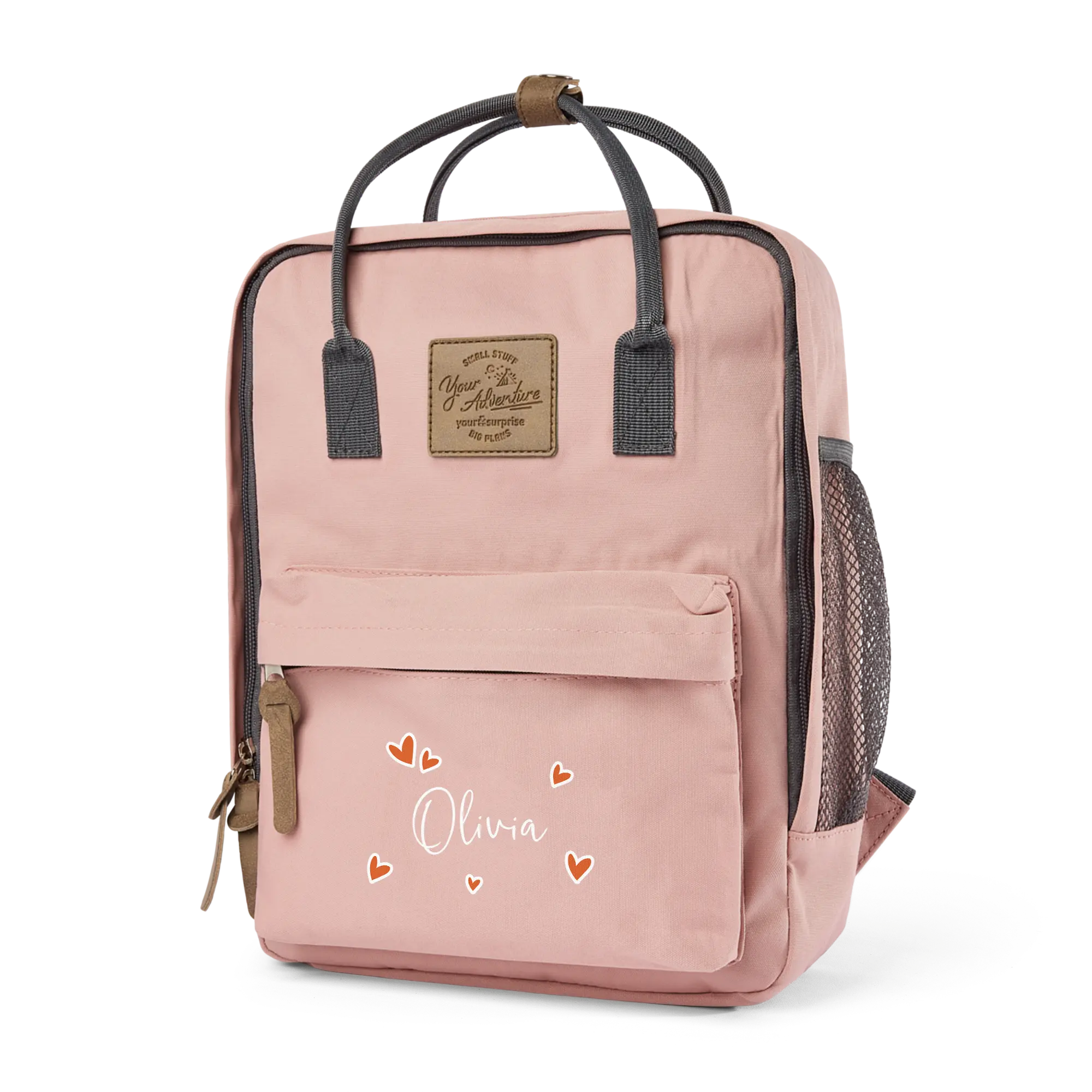 Uno zaino per bambini super cool, stampato con nome o testo. Con due comodi scomparti e cerniere. Cinghie regolabili, in due colori!Maggiori informazioni sullo zaino per bambini: Colore: rosa Dimensioni: 30 x 25 x 12 cm Materiale: 100% poliestere Marca: Sol's Extra: 2 scomparti con pratiche cerniere, spalline regolabili e schienale imbottito.