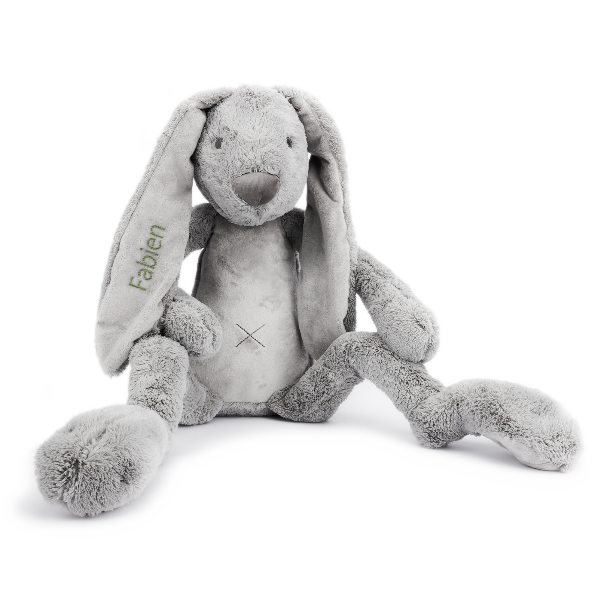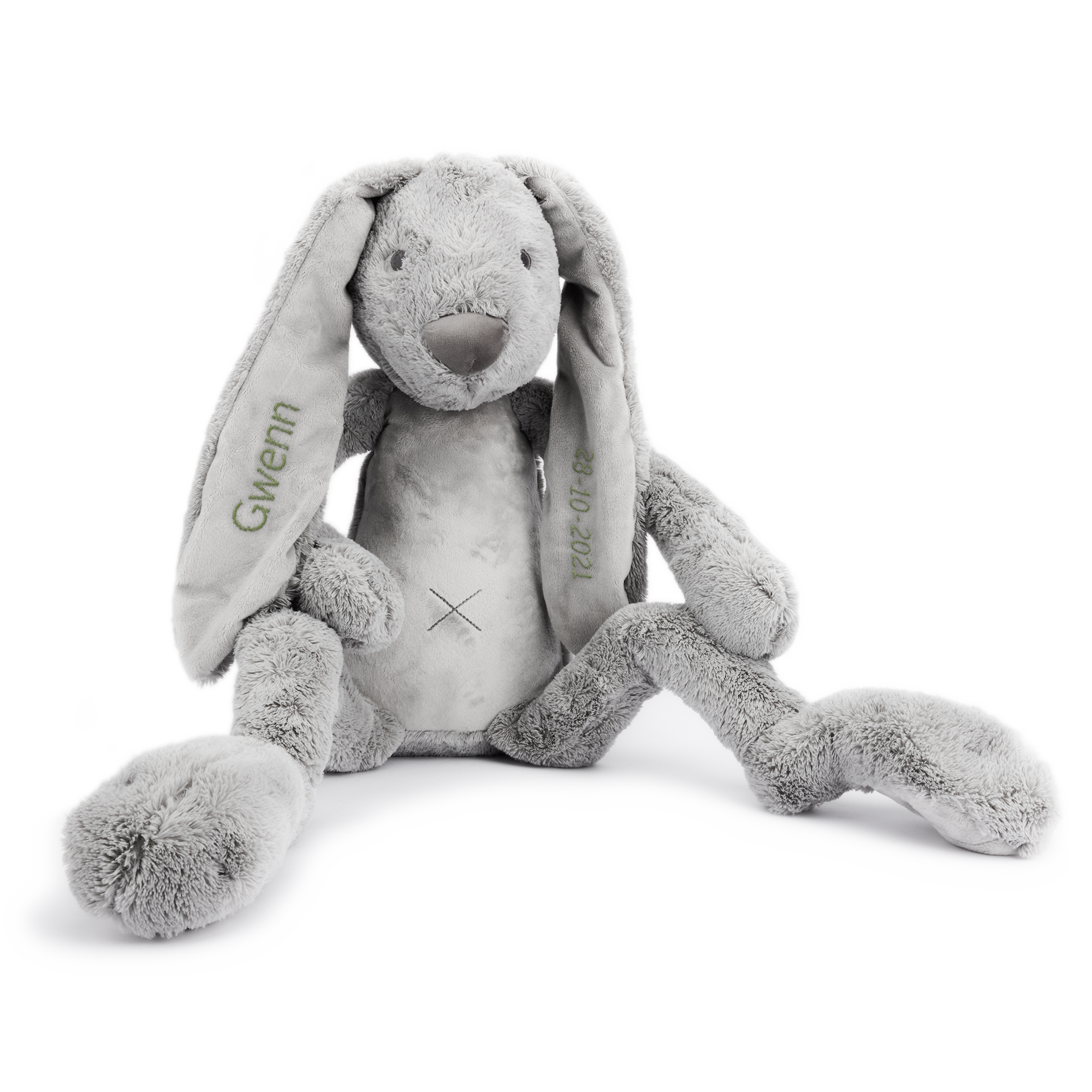 Maggiori informazioni sul coniglietto peluche personalizzato: Materiale: morbido e coccolosoDimensioni del giocattolo: 98 cm Personalizzazione: con nome o testo Metodo di personalizzazione: ricamo di alta qualità Certificazione CE: questo giocattolo soddisfa tutti i requisiti legali per i giocattoli per bambini, in questo modo è completamente sicuro Marchio: Happy HorseLavaggio: Non lavare a secco. Lavare a 30 ° C e asciugare all'ariaNota: le cuciture del ricamo sono visibili sul retro dell'orecchio