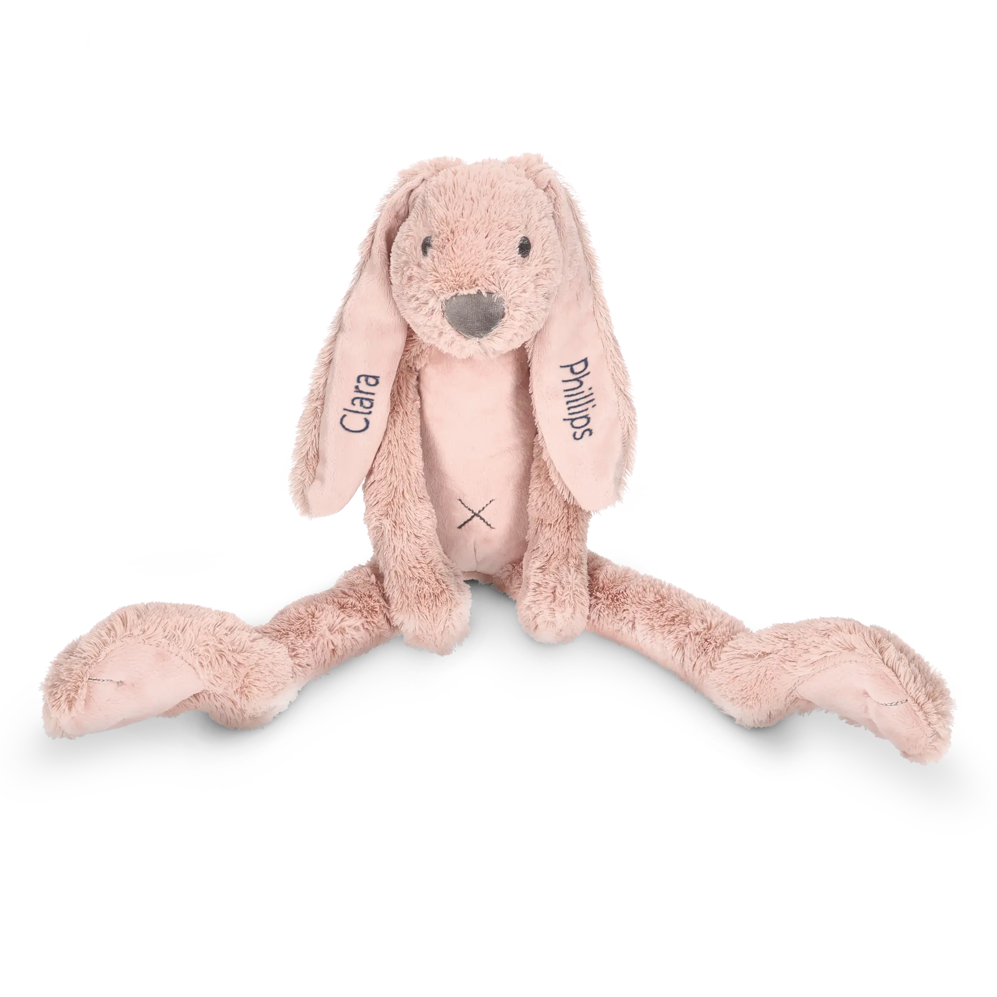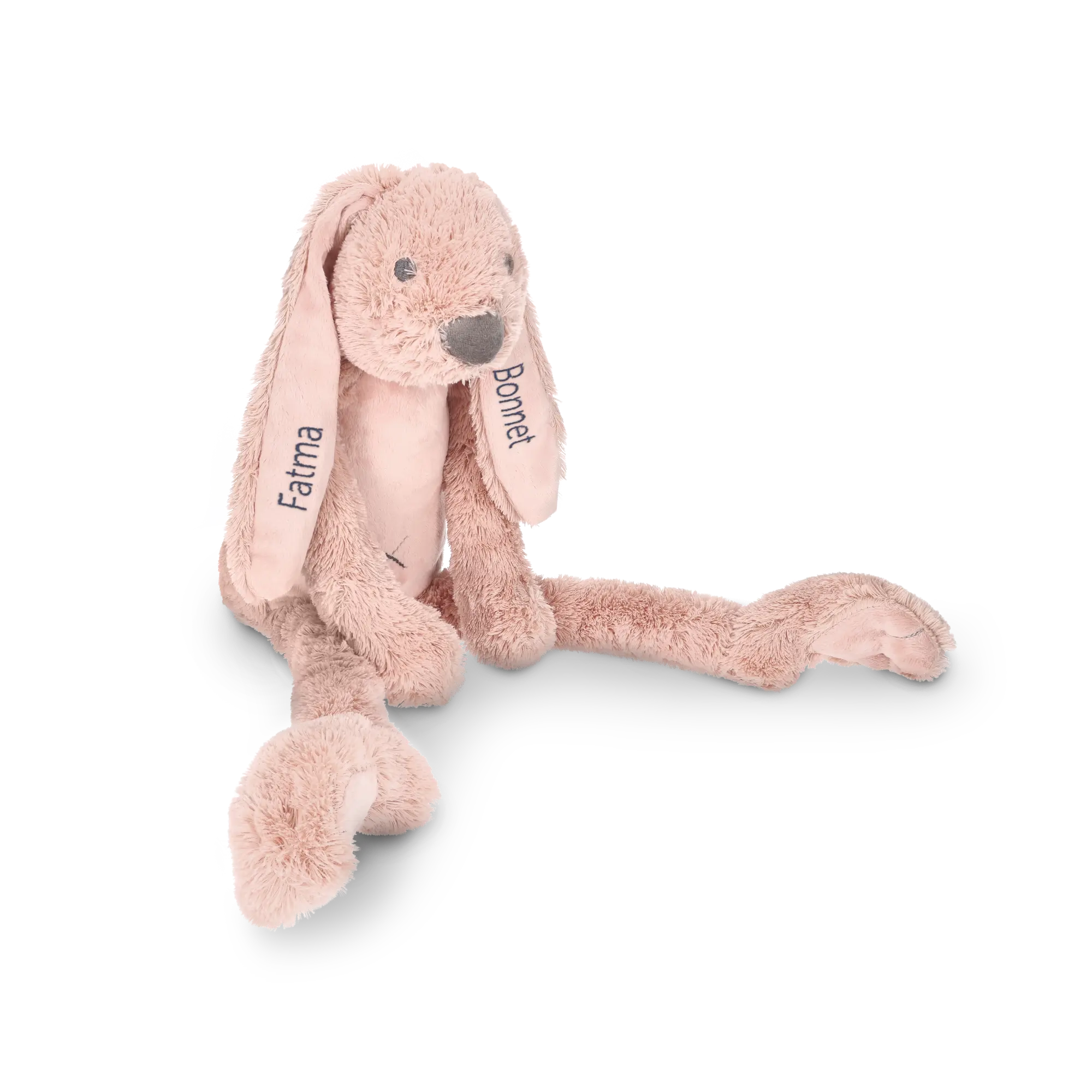 Sorprendi il tuo piccolo di casa con questo morbido coniglietto peluche personalizzato con un nome a tua scelta!Maggiori informazioni sul coniglietto peluche personalizzato: Materiale: morbido e coccolosoDimensioni del giocattolo: 58 cm Personalizzazione: con nome o testo Metodo di personalizzazione: ricamo di alta qualità Certificazione CE: questo giocattolo soddisfa tutti i requisiti legali per i giocattoli per bambini, in questo modo è completamente sicuro Marchio: Happy HorseLavaggio: Non lavare a secco. Lavare a 30 ° C e asciugare all'ariaNota: le cuciture del ricamo sono visibili sul retro dell'orecchio