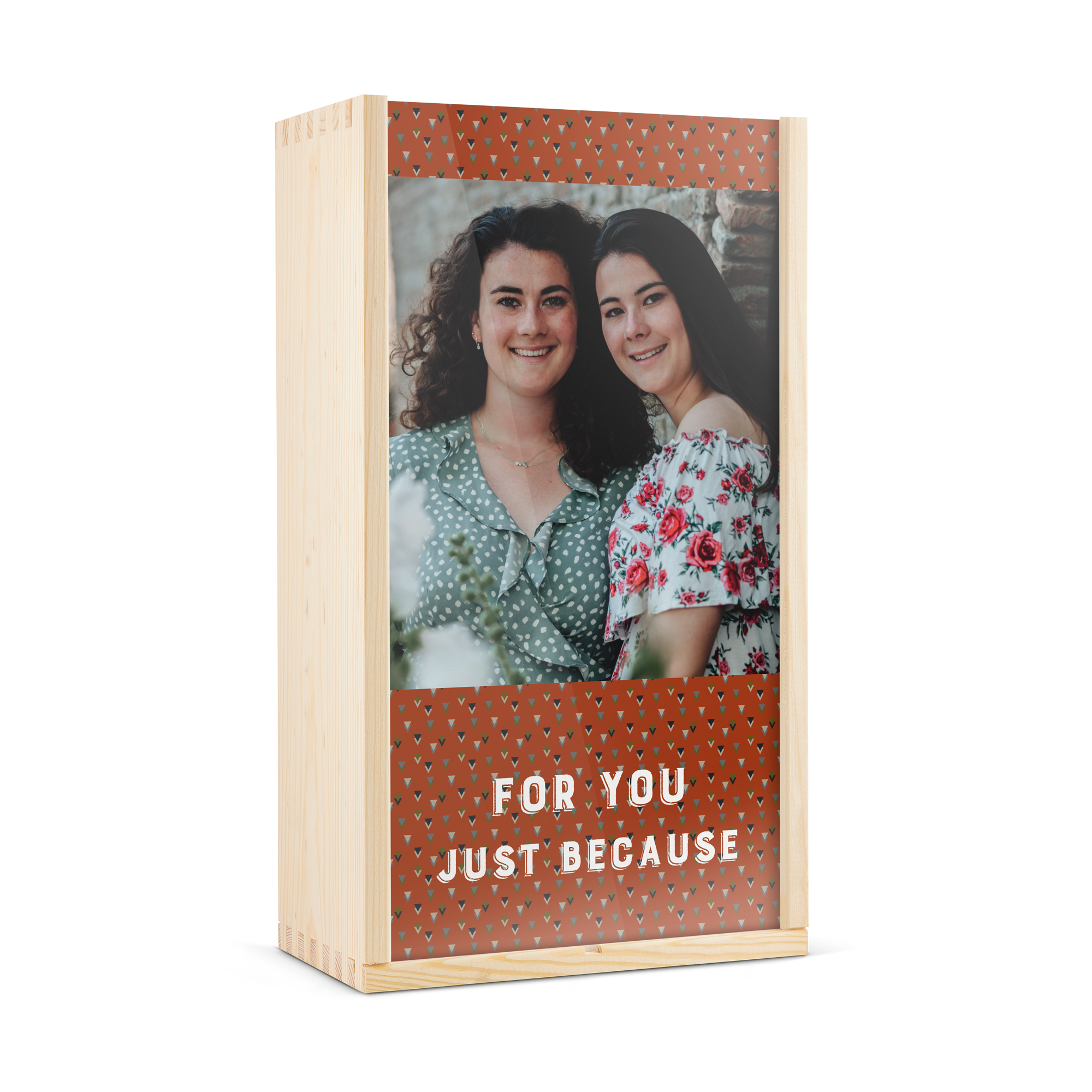 Ulteriori informazioni sulla personalizzazione: Personalizzazione: in una scatola di lusso Stampa: stampa sul coperchio con una qualità fotografica HD cristallina Dimensioni scatola: 36,5 x 20,6 x 11 cm Coperchio delle dimensioni: 35,6 x 18,9 x 0,3 cm Extra: scatola di legno con certificazione FSC Maggiori informazioni sul gin: Nome: Bombay Sapphire Paese: Inghilterra Personaggio: un gin morbido con un carattere complesso. Sapore fruttato leggero con aromi potenti Maggiori informazioni sul tonico: Nome: Fever Tree Indian Tonic Water Contenuto: 500 ml Questo tonico non contiene dolcificanti artificiali, conservanti o aromi.