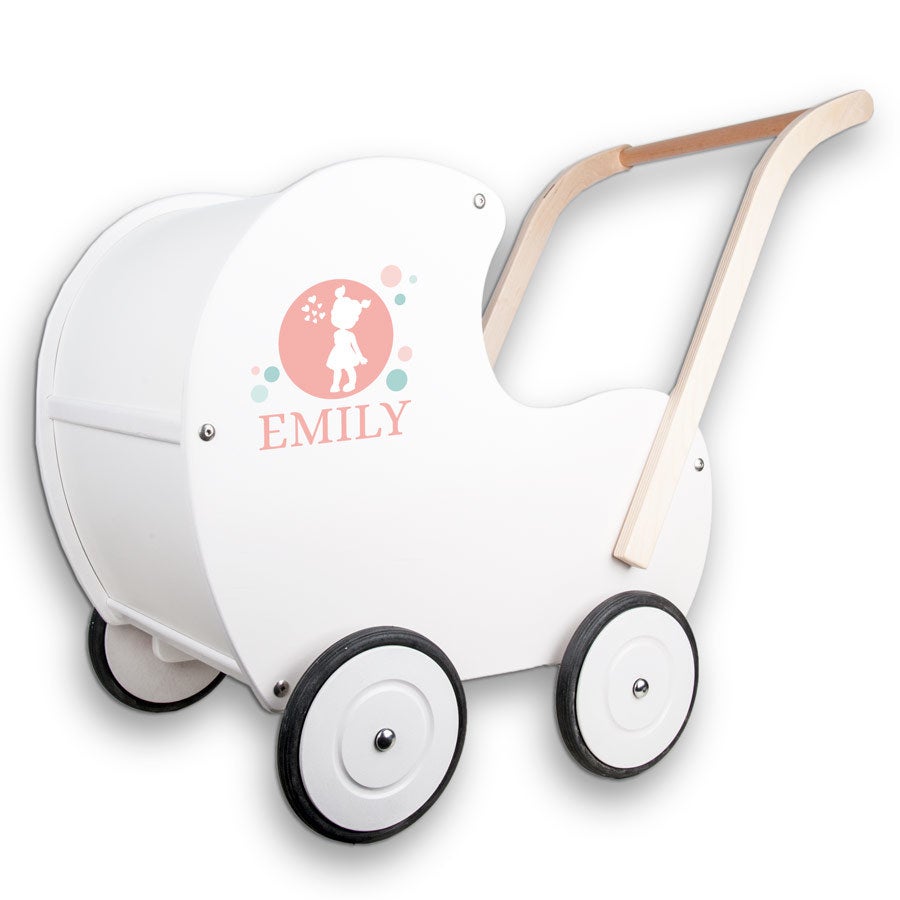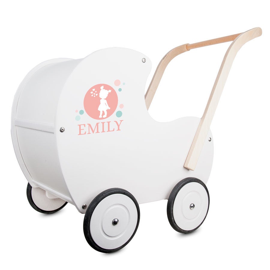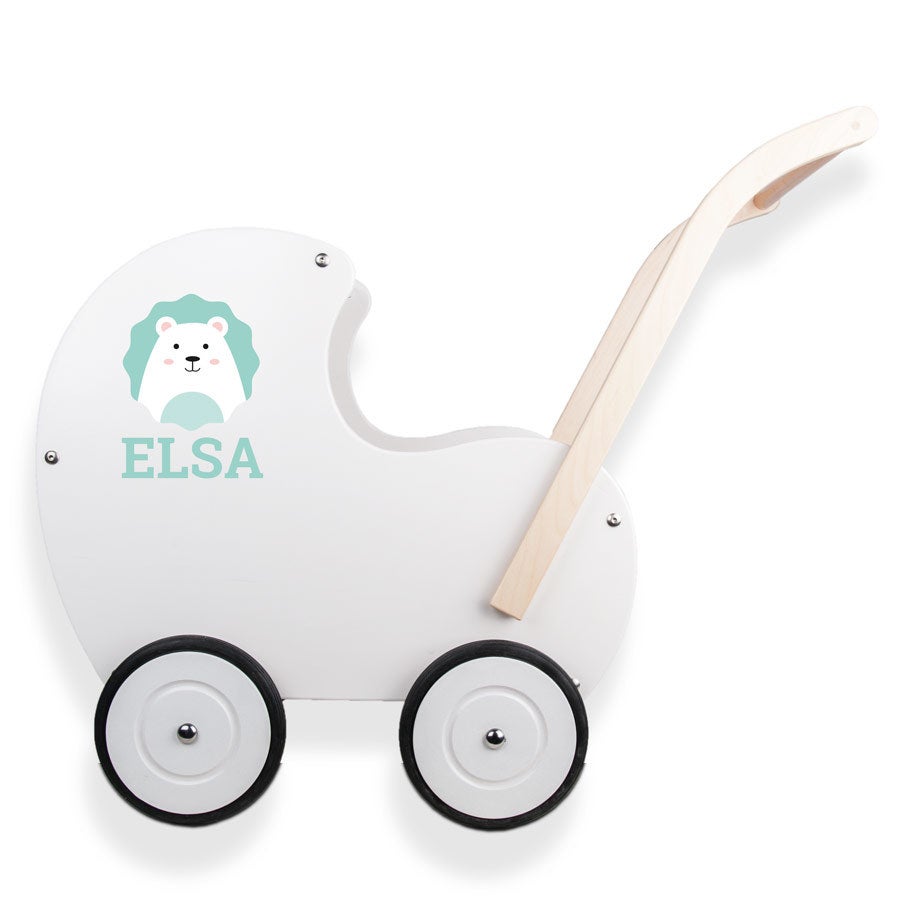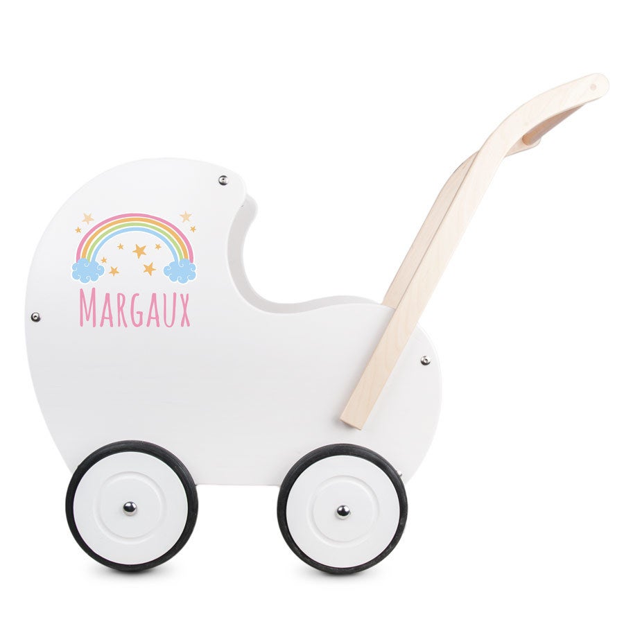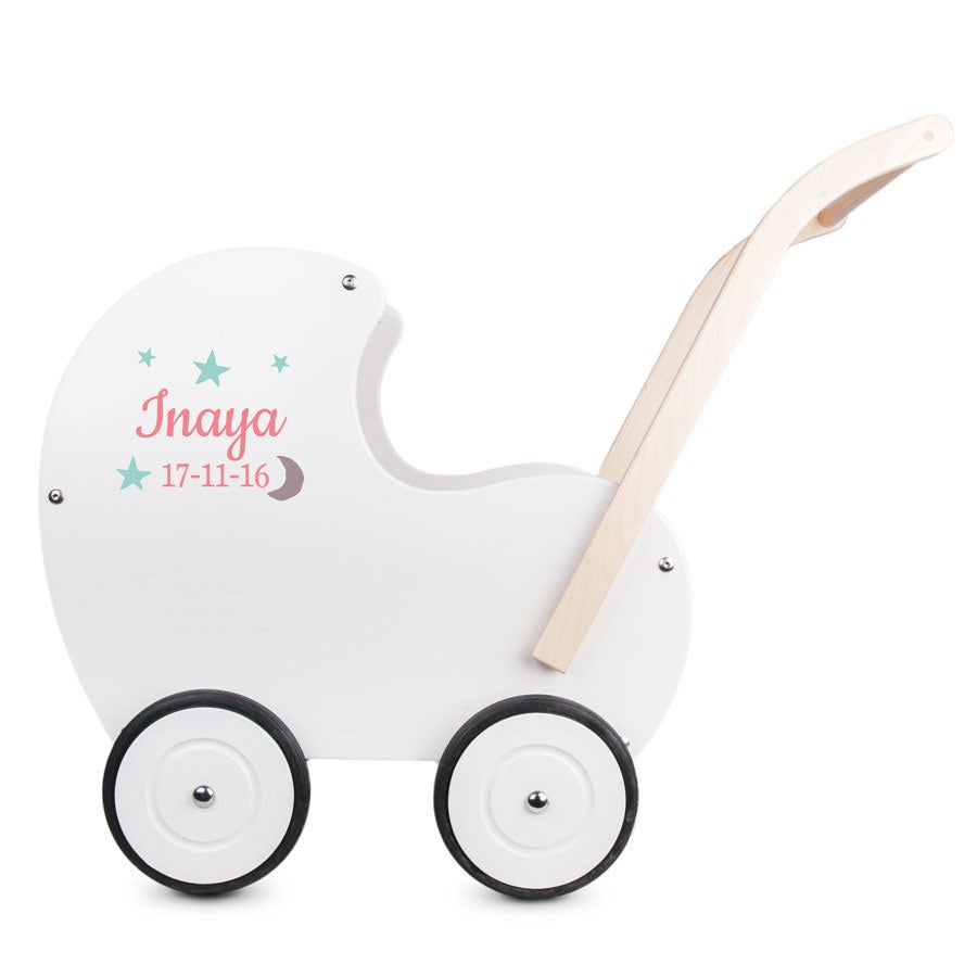 Maggiori informazioni sul passeggino in legno:Tipo di legno: faggio e multistrato di faggio Dimensioni: 48 x 48 x 32 cmAltezza del manubrio: 59 cm Peso: ± 3 kg Personalizzazione: pellicola in vinile laminato di alta qualità