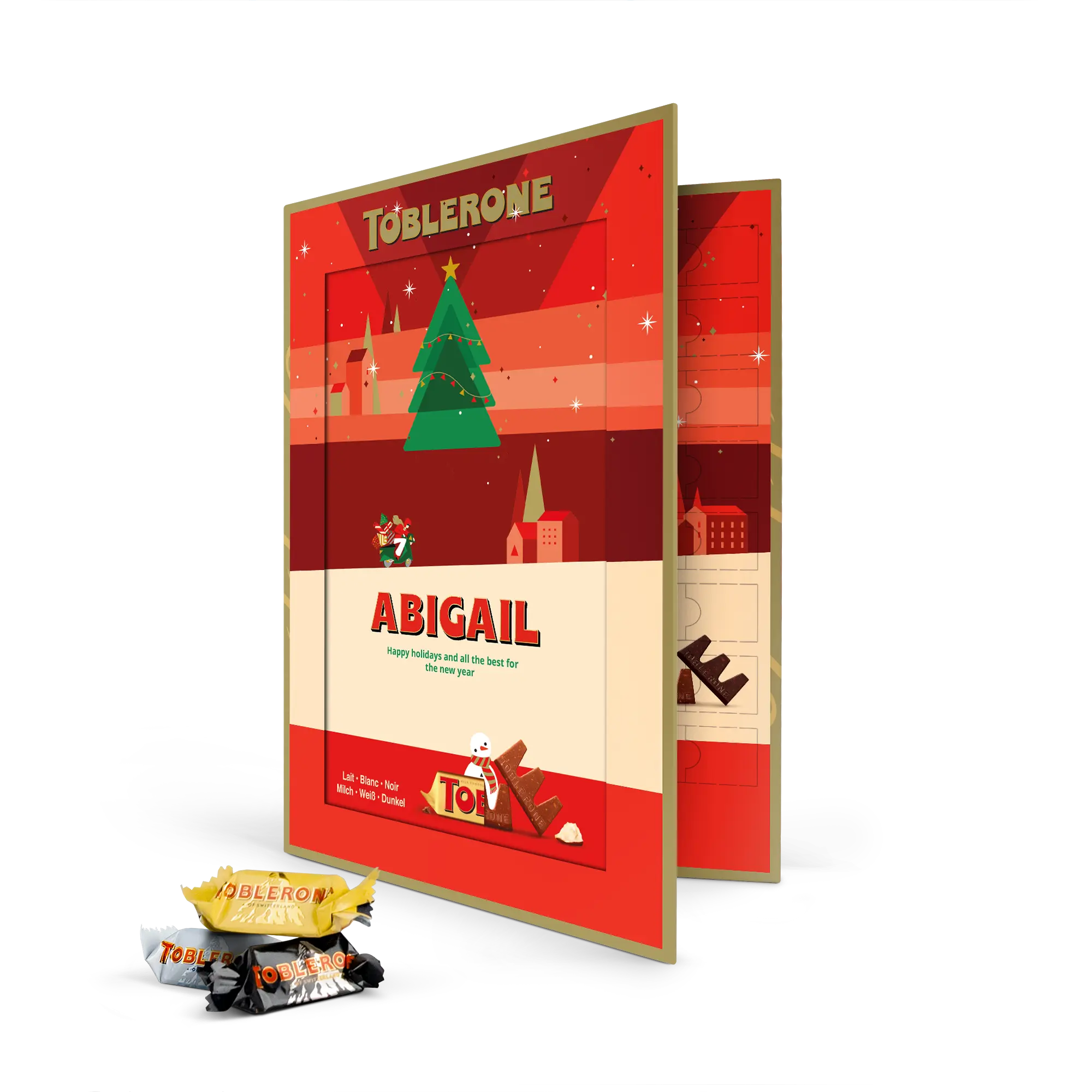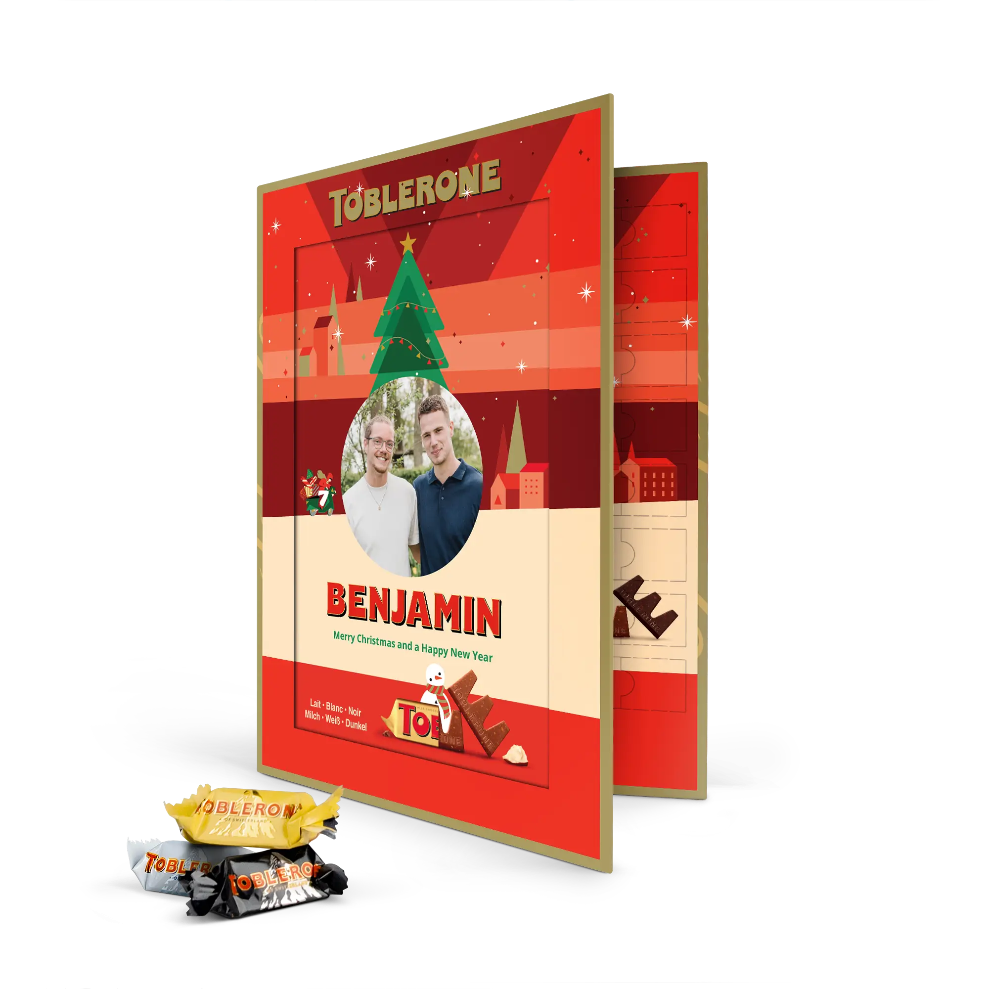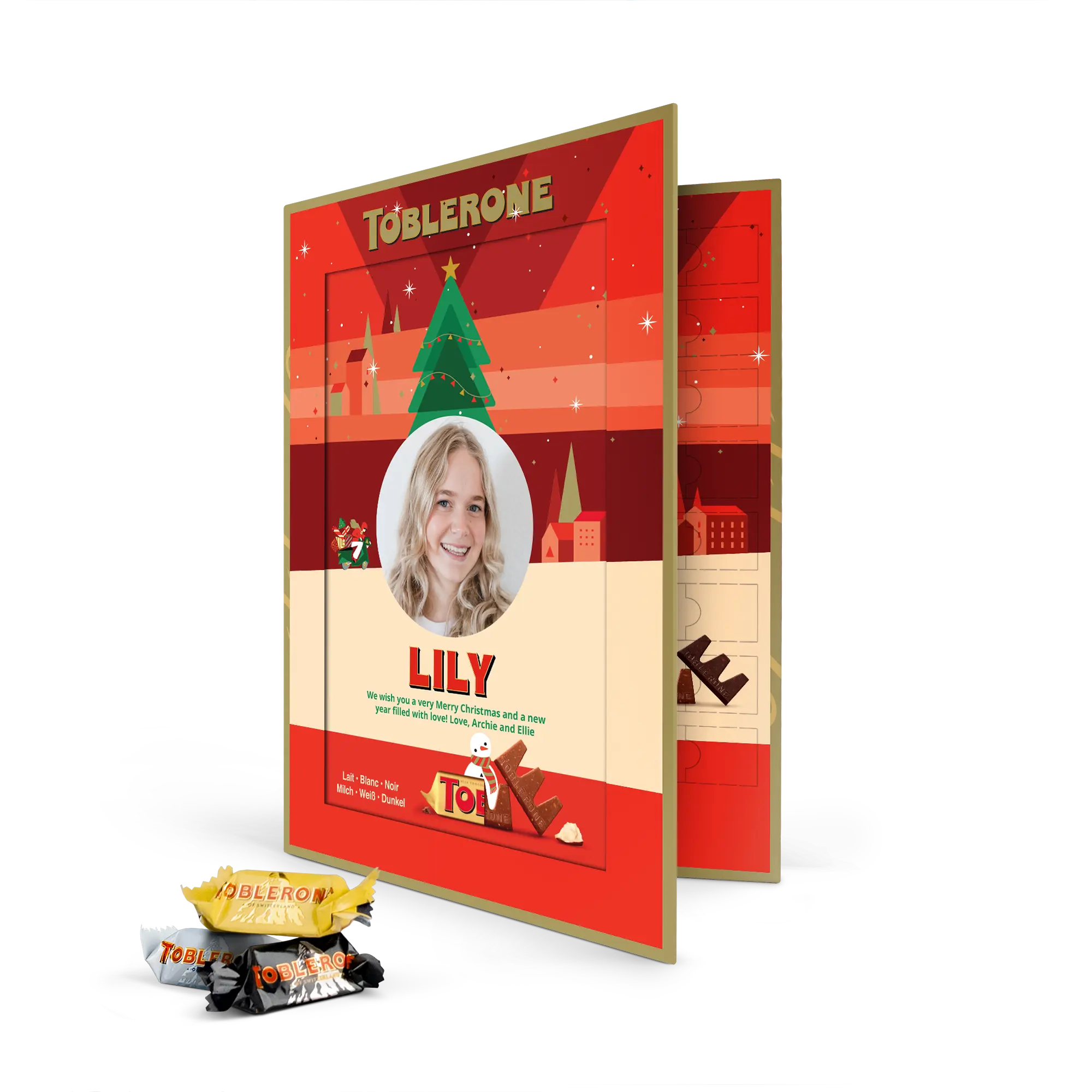 Calendario dell'Avvento Toblerone personalizzato per famiglie festive
