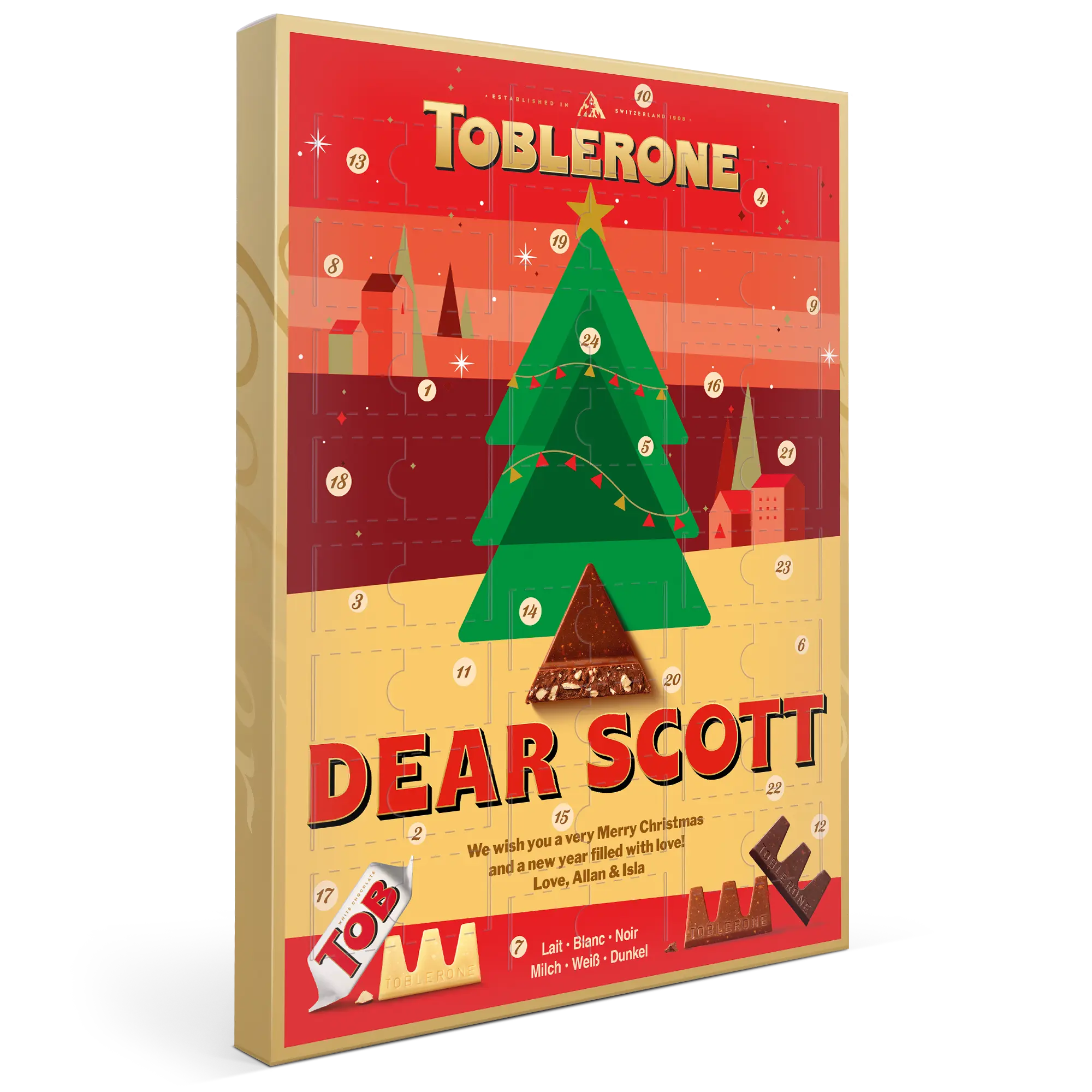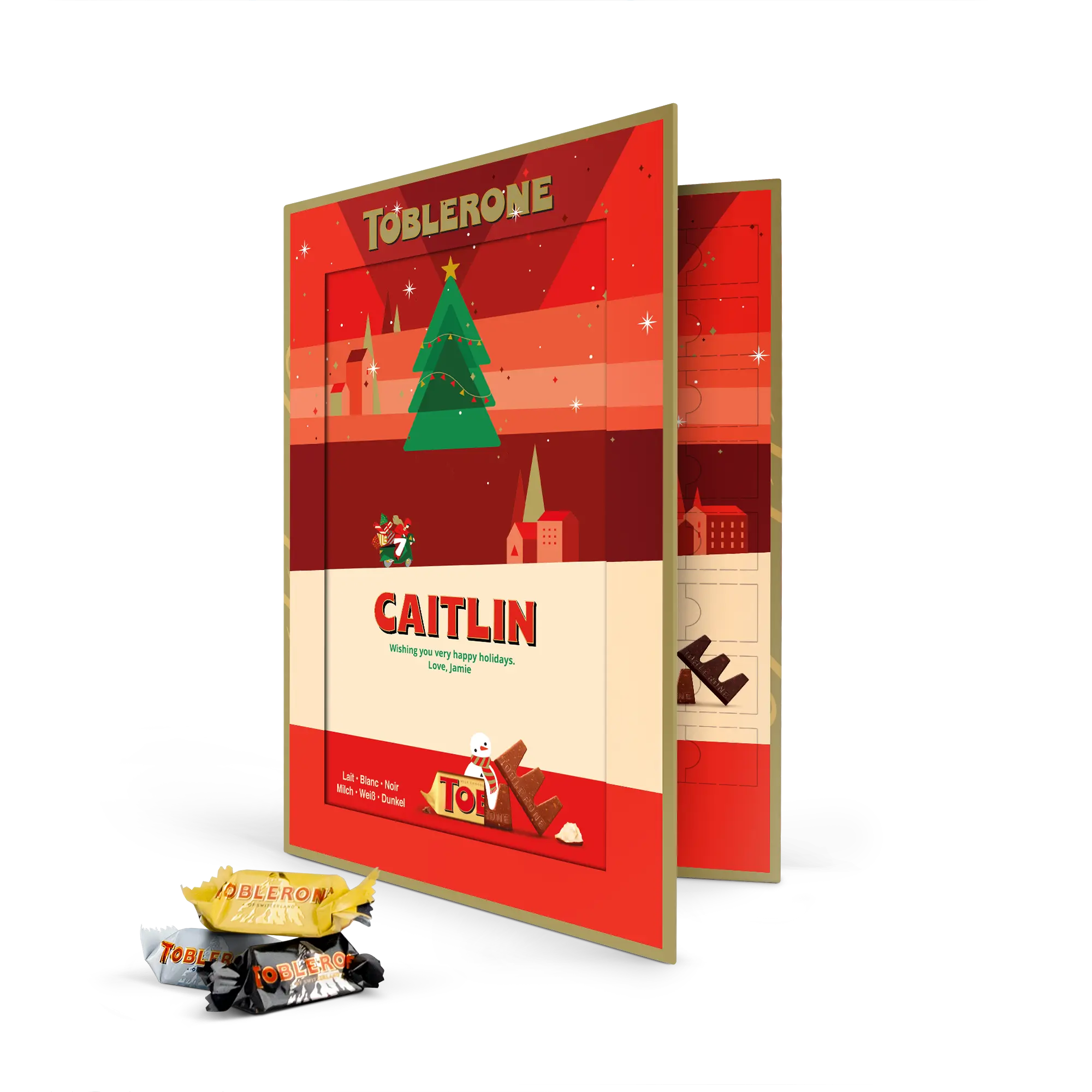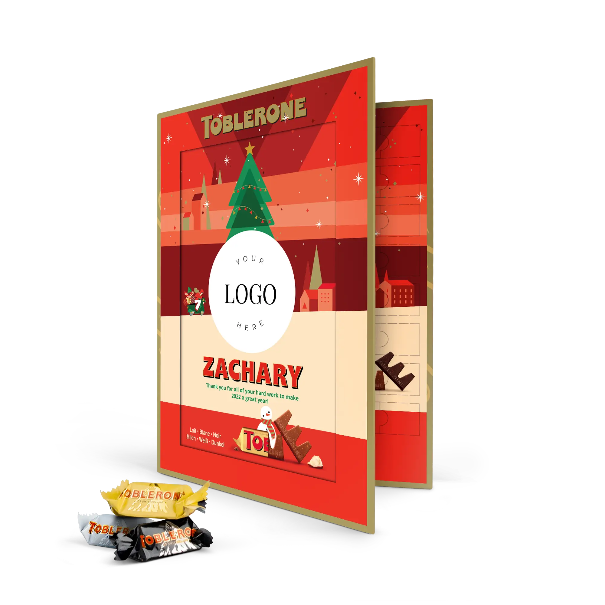 Calendario dell'Avvento Toblerone personalizzato per famiglie festive