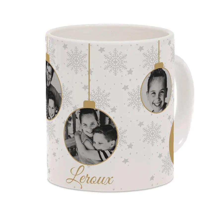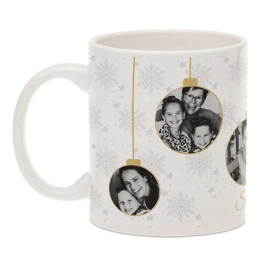 Maggiori informazioni sulla tazza di Natale personalizzata: Colore: bianco interno e manico Materiale: ceramica lucida di alta qualità Altezza: 9,5 cm / 3,7" Diametro: 7,5 cm / 3" Capacità: 325 ml  Personalizzazione: con foto e/o testo Stampa: alta qualità e a colori Extra: la tazza è lavabile in lavastoviglie e adatta al microonde
