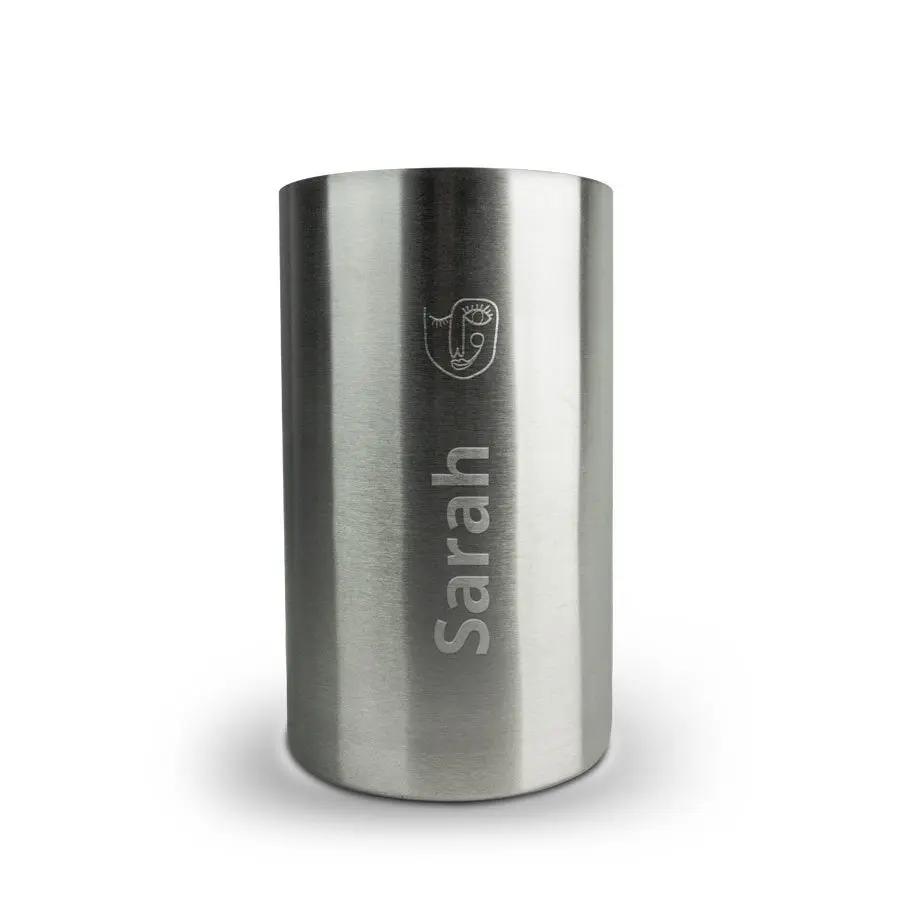 Maggiori informazioni sul refrigeratore per vino:Materiale: acciaio inossidabileColore: argentoDimensioni: 20 x 12 x 12 cm / 7,9" x 4,7" x 4,7"Personalizzazione: incisione testo