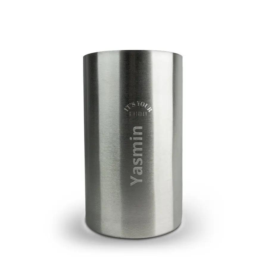 Se stai cercando un regalo personale lussuoso, scegli questo refrigeratore per vino inciso con il nome o il testo a tua scelta.