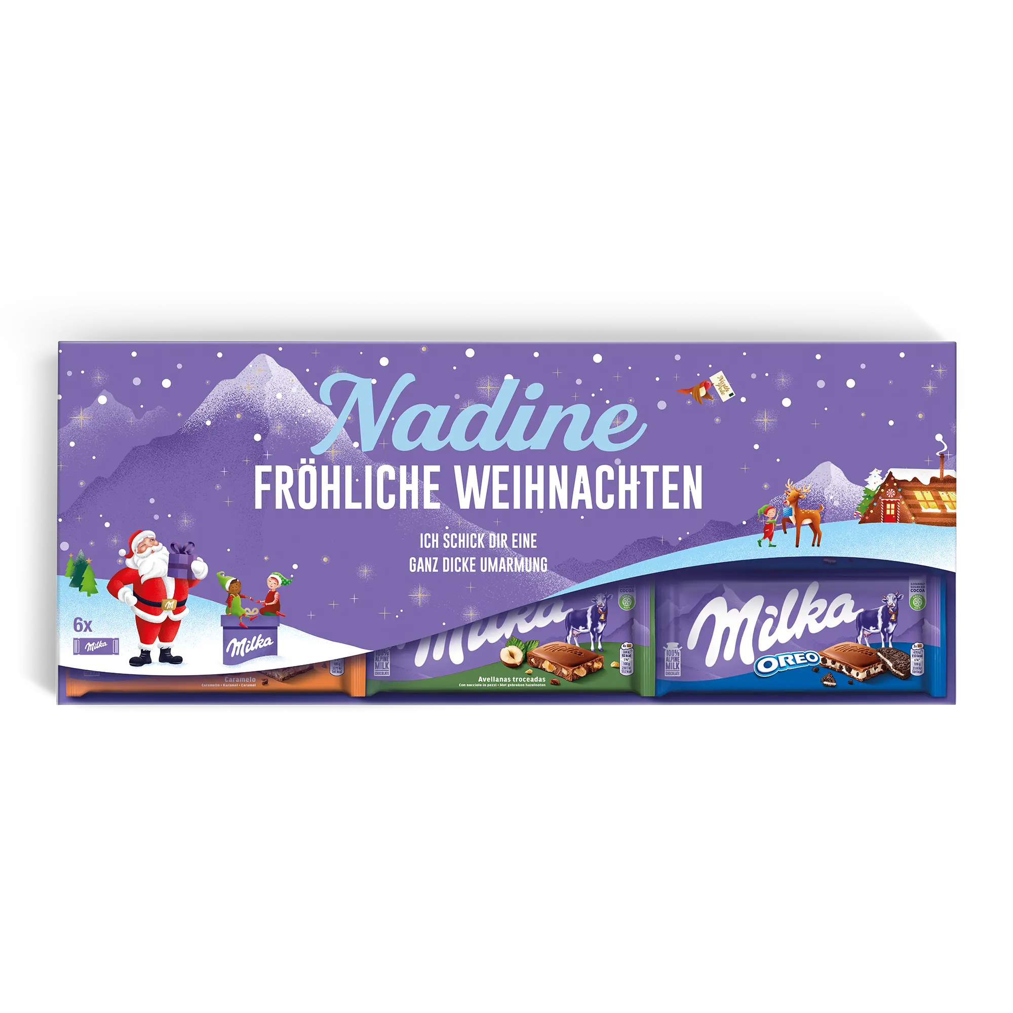 - Include: 3 barrette di Milka Oreo, 3 barrette di Milka Nocciola e 3 barrette di Milka Caramello (¡il contenuto può variare!)